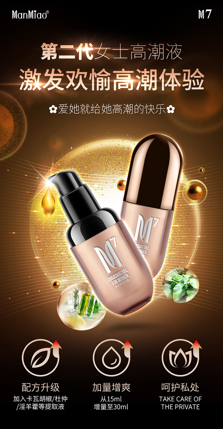 漫渺第二代女性高潮液30ml装上市,配方升级植物提取液,容量升级15ml增至30ml,呵护升级,增加护肤滋润,爱她就给她高潮的快乐!