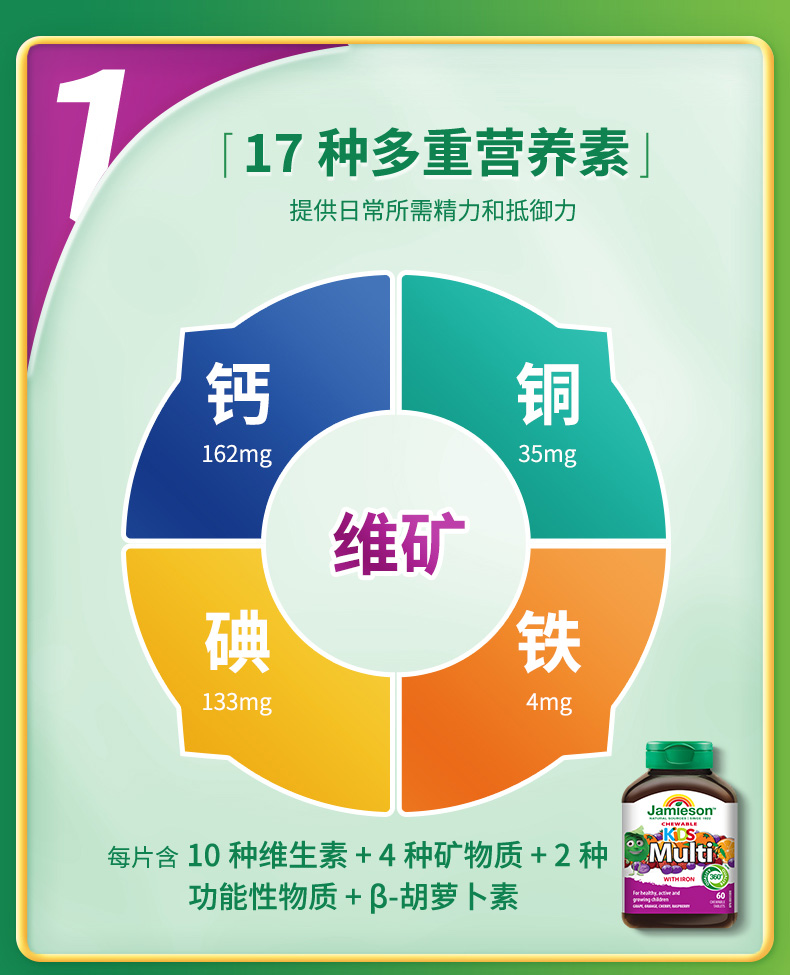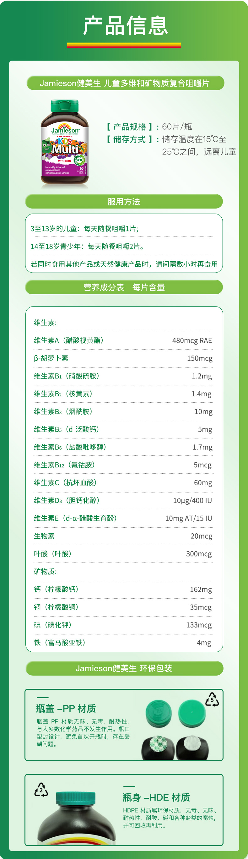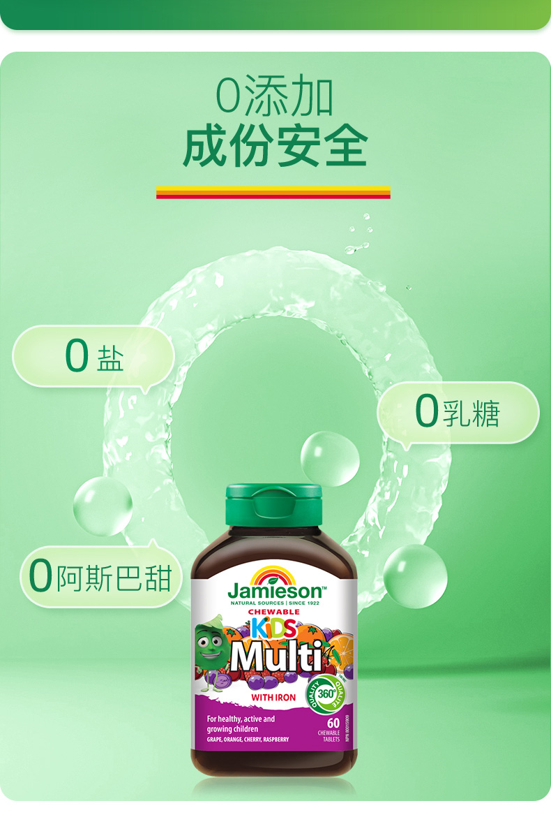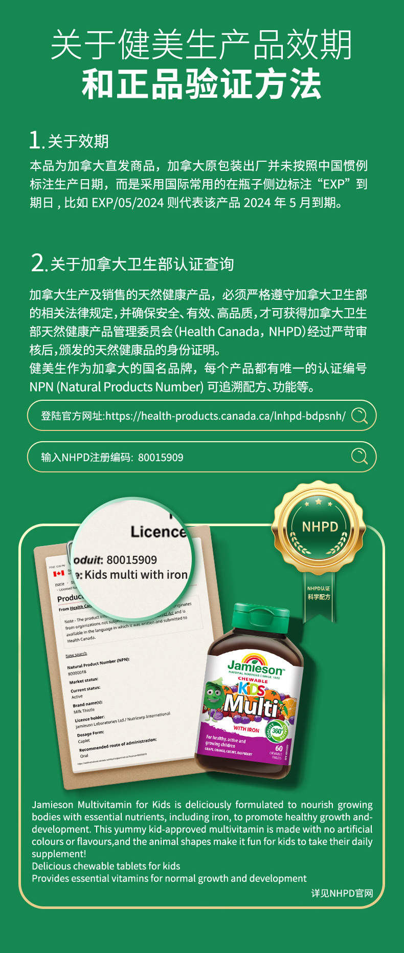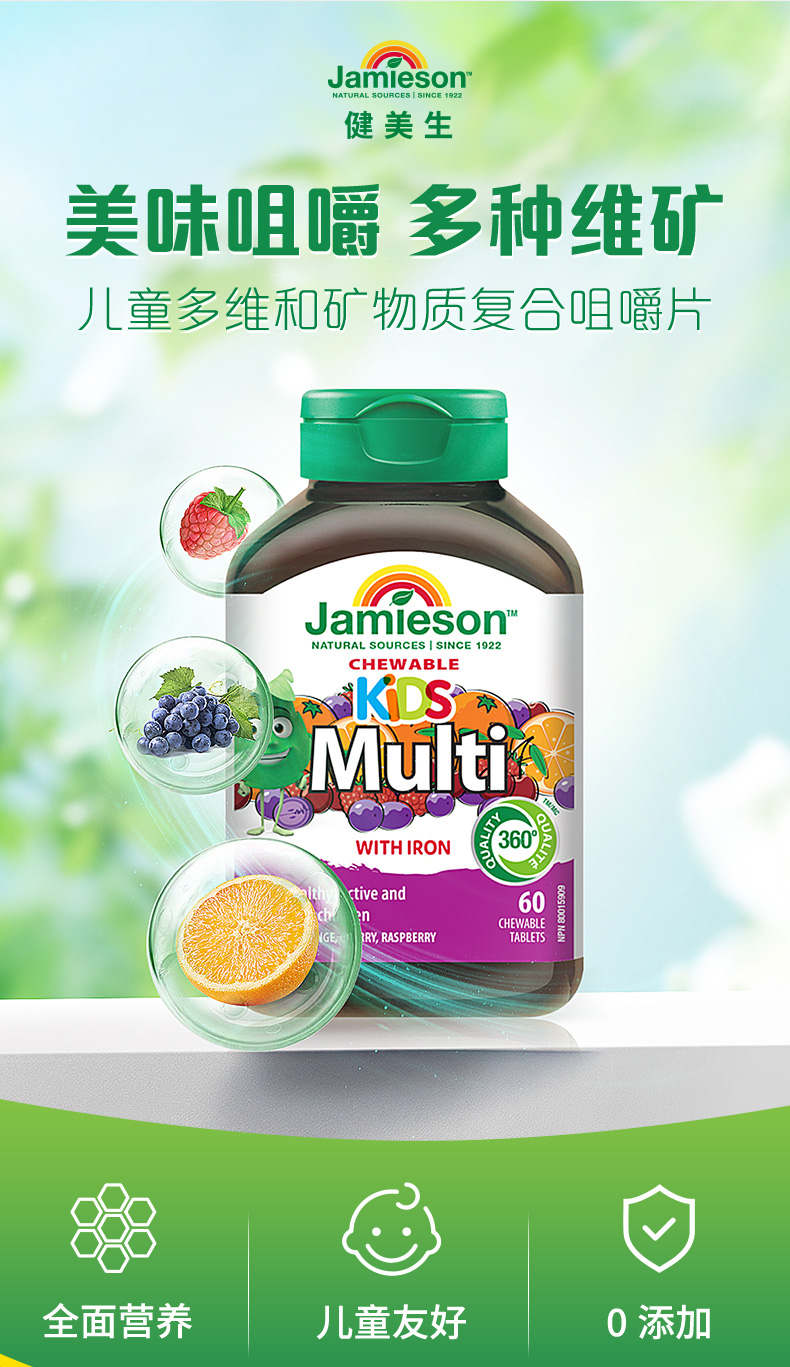 【分销】Jamieson健美生儿童多维生素矿物质咀嚼片60粒水果味