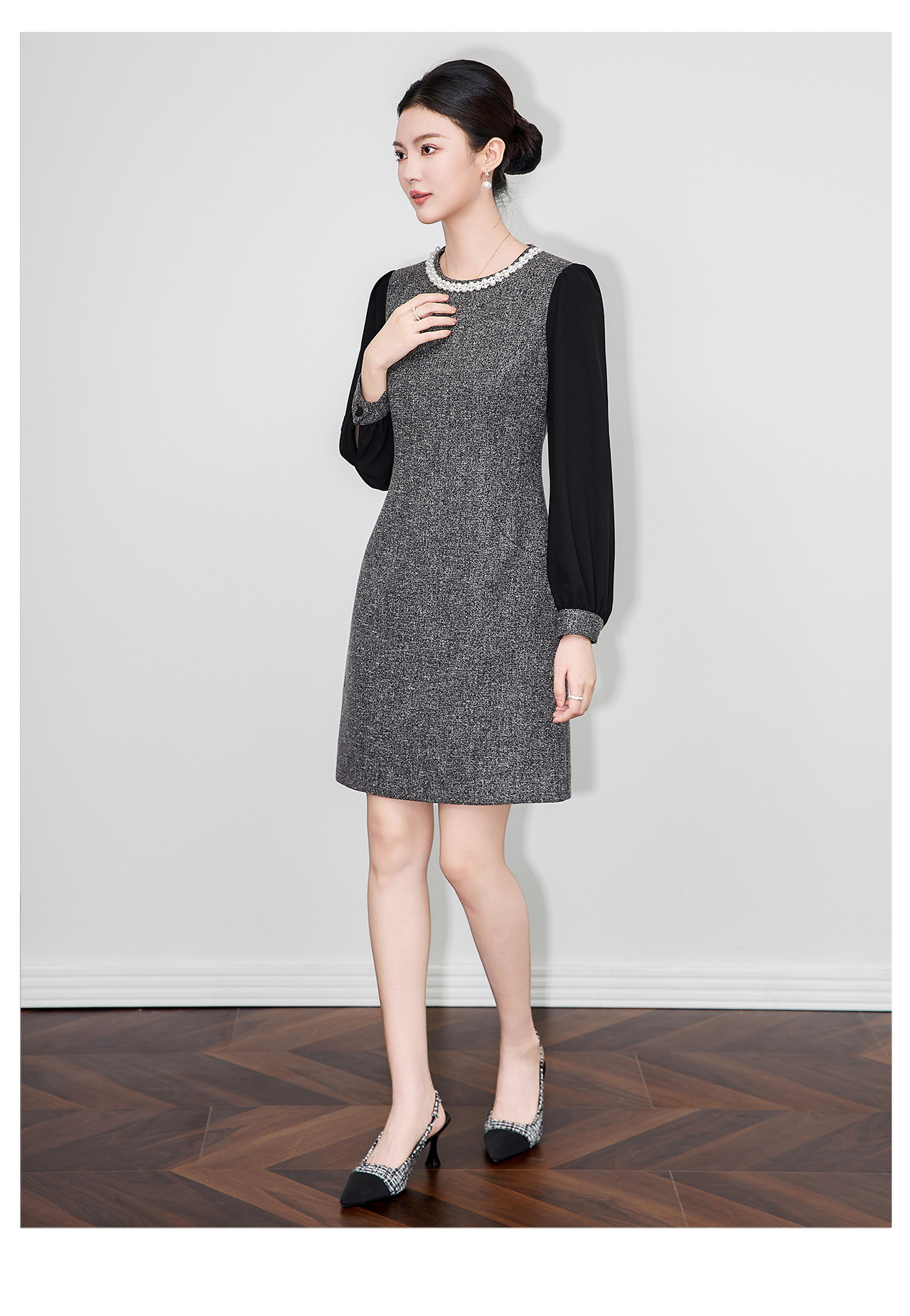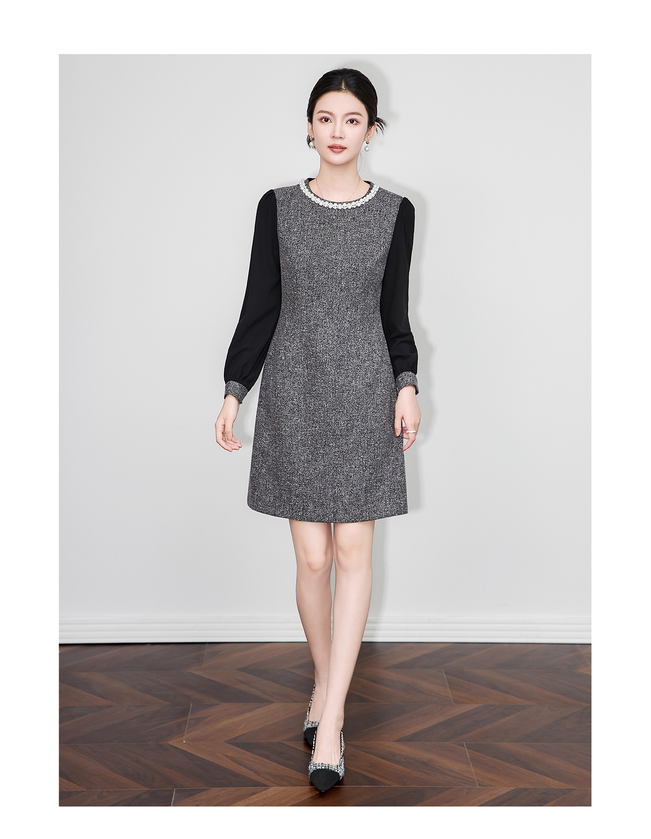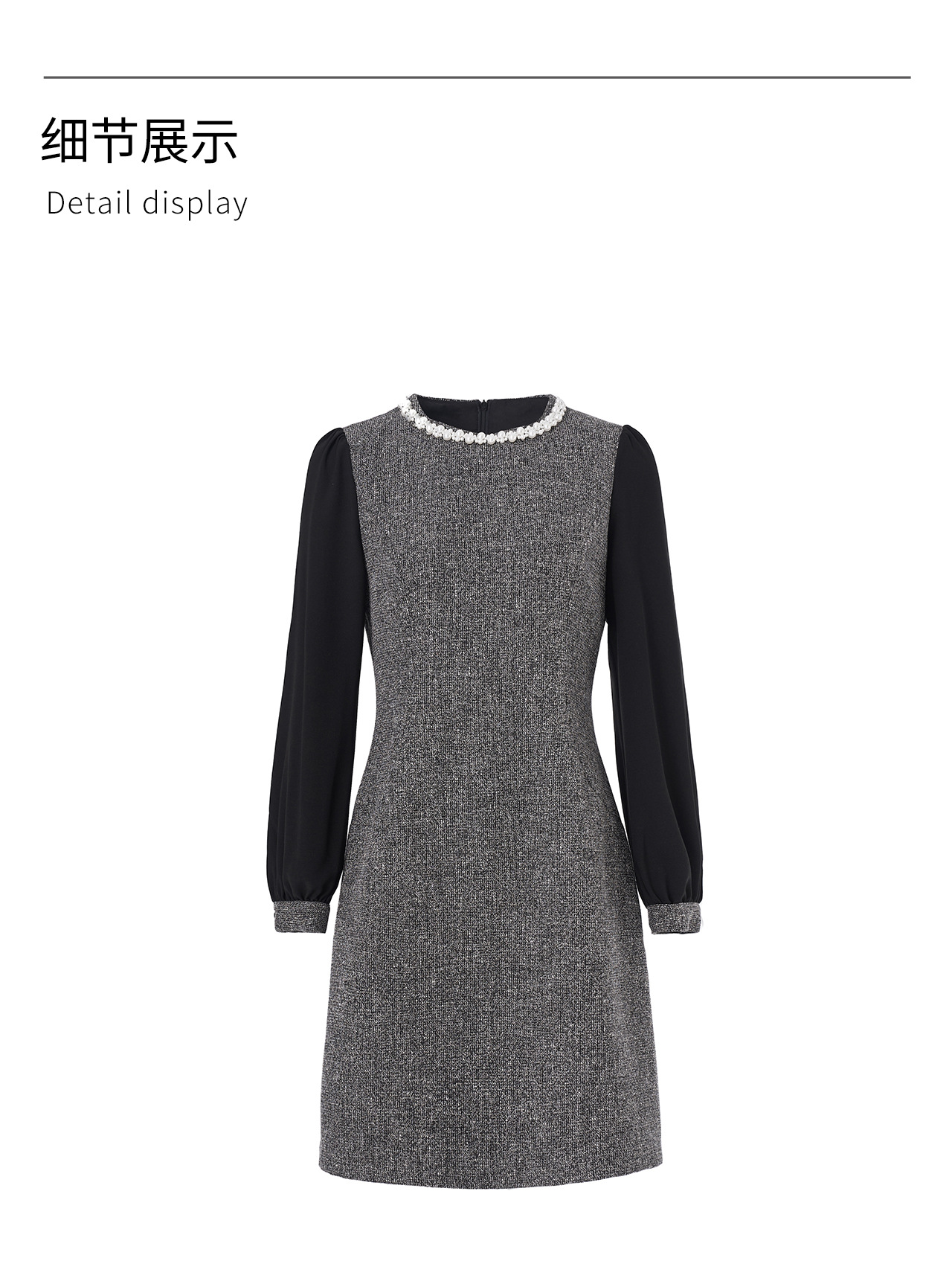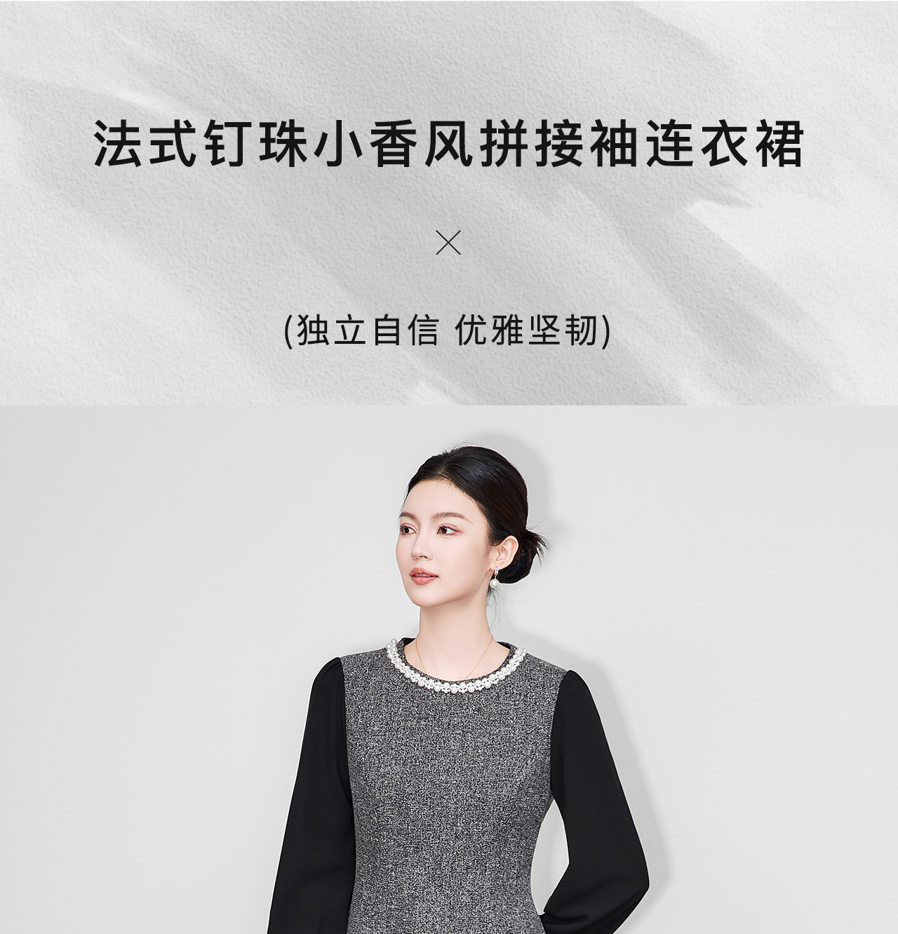「高货wl」全新升级【铂金会员330/天猫449/差价119】(50240)洛诗琳优雅拼接连衣裙2025秋冬轻奢重工珍珠领减龄收腰裙