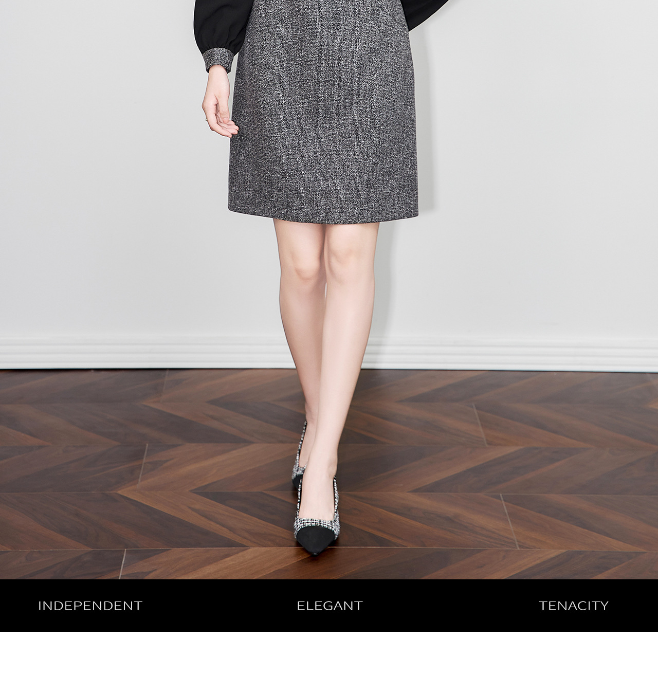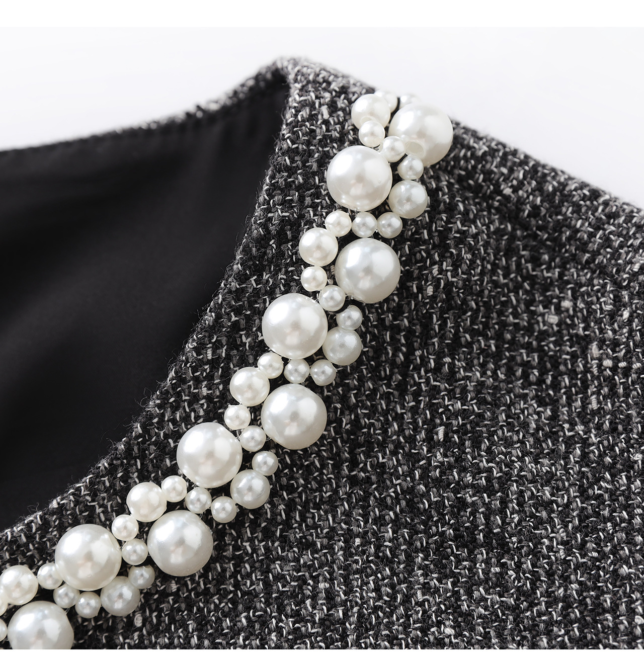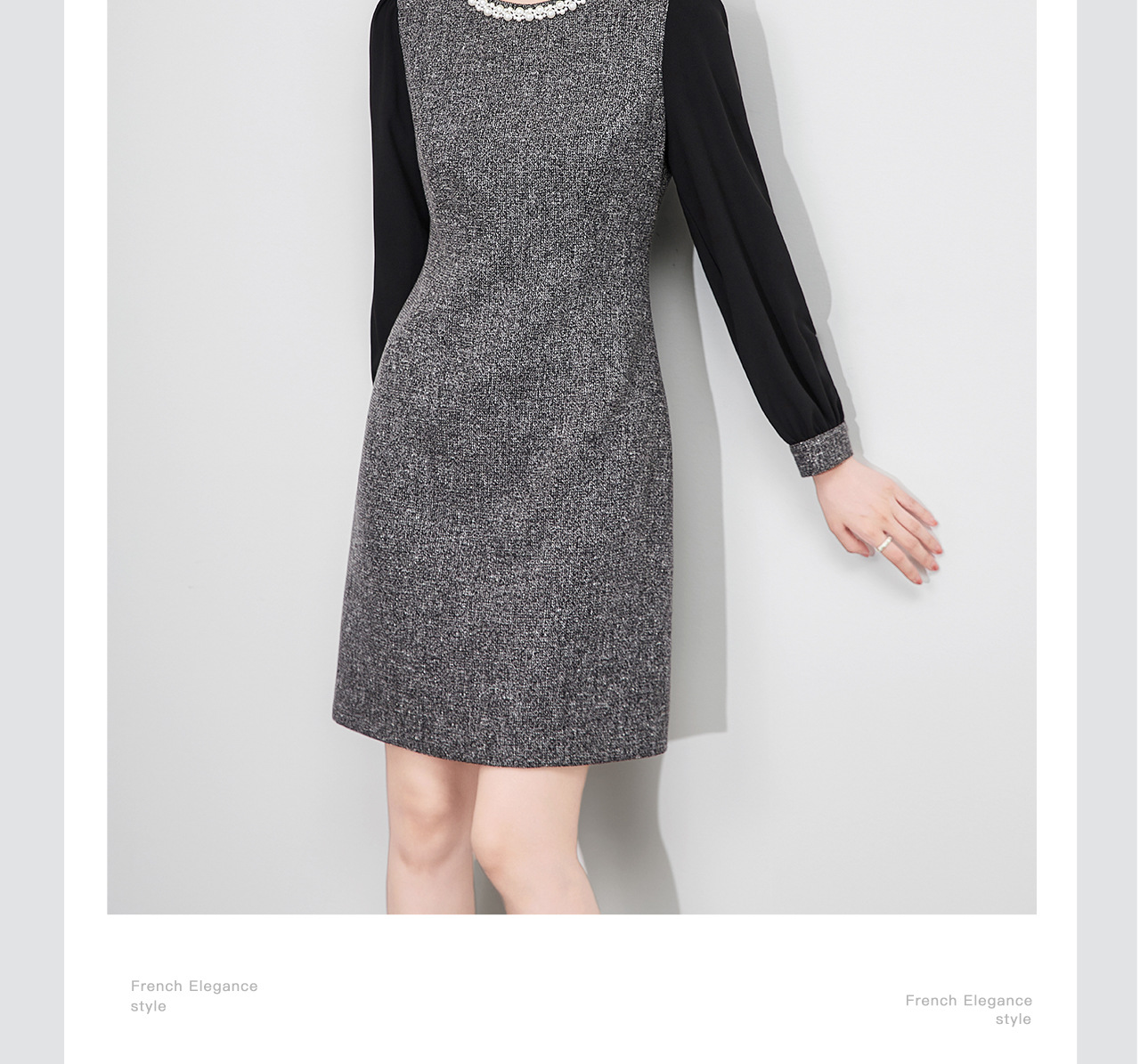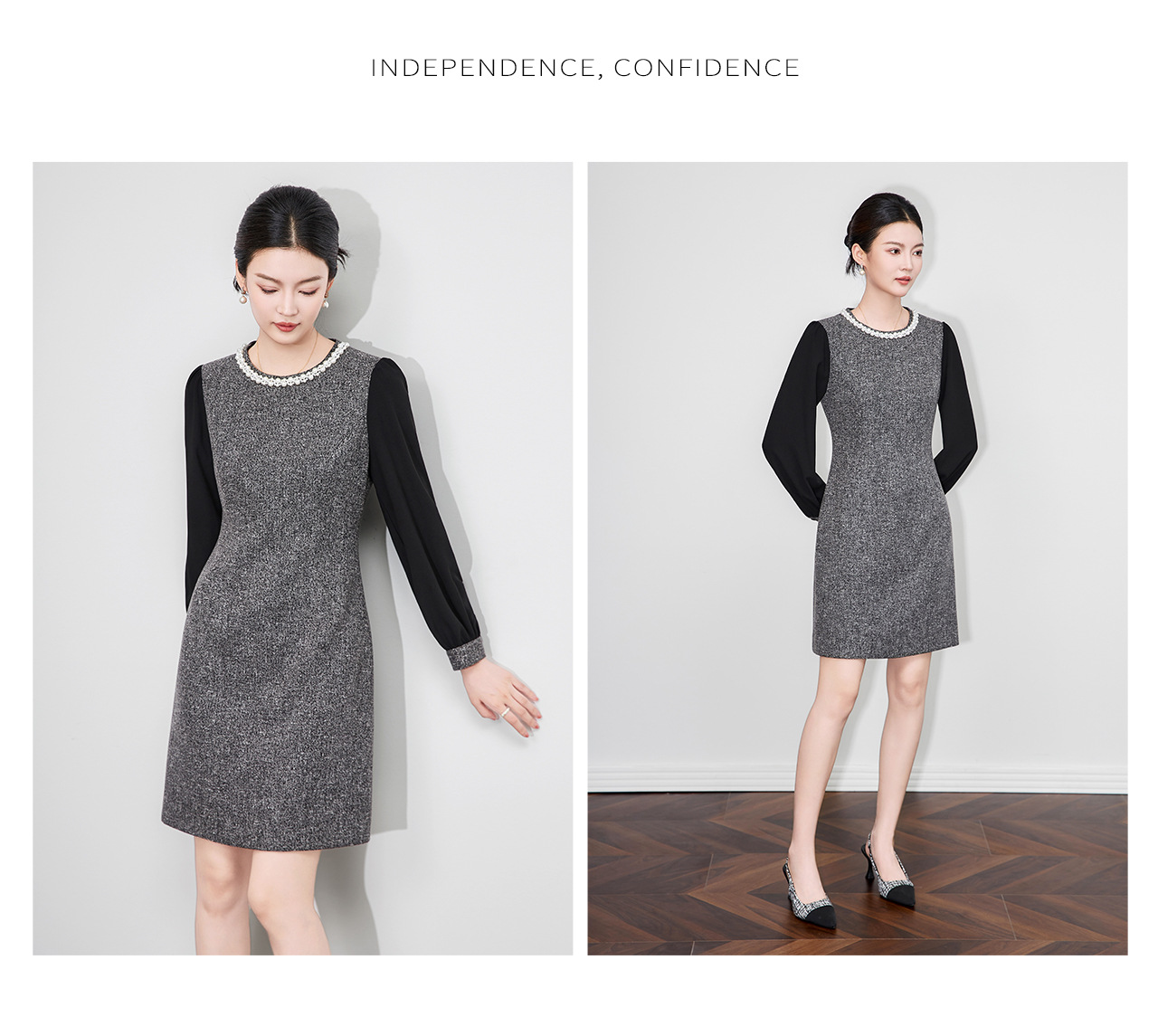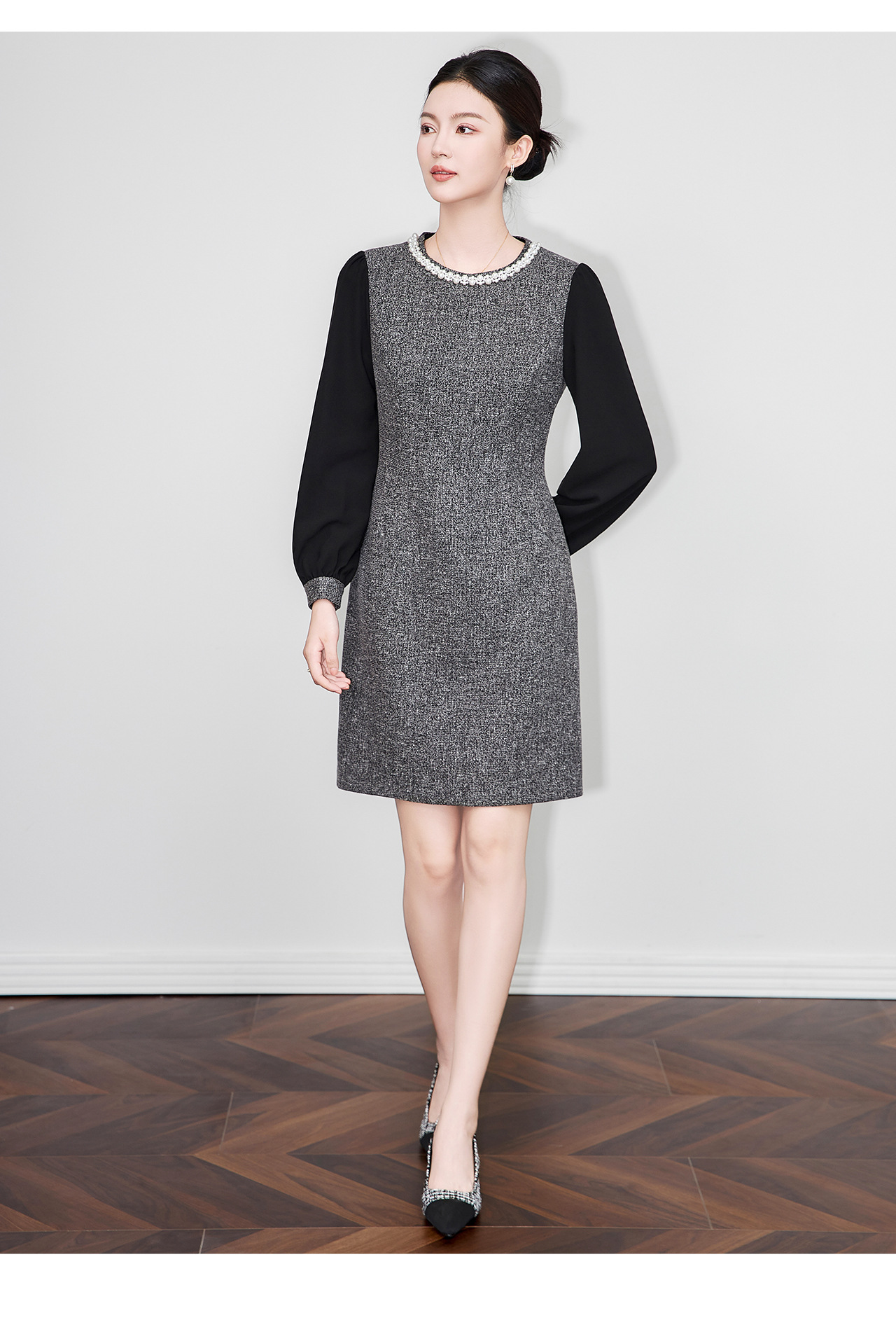 「高货wl」全新升级【铂金会员330/天猫449/差价119】(50240)洛诗琳优雅拼接连衣裙2025秋冬轻奢重工珍珠领减龄收腰裙