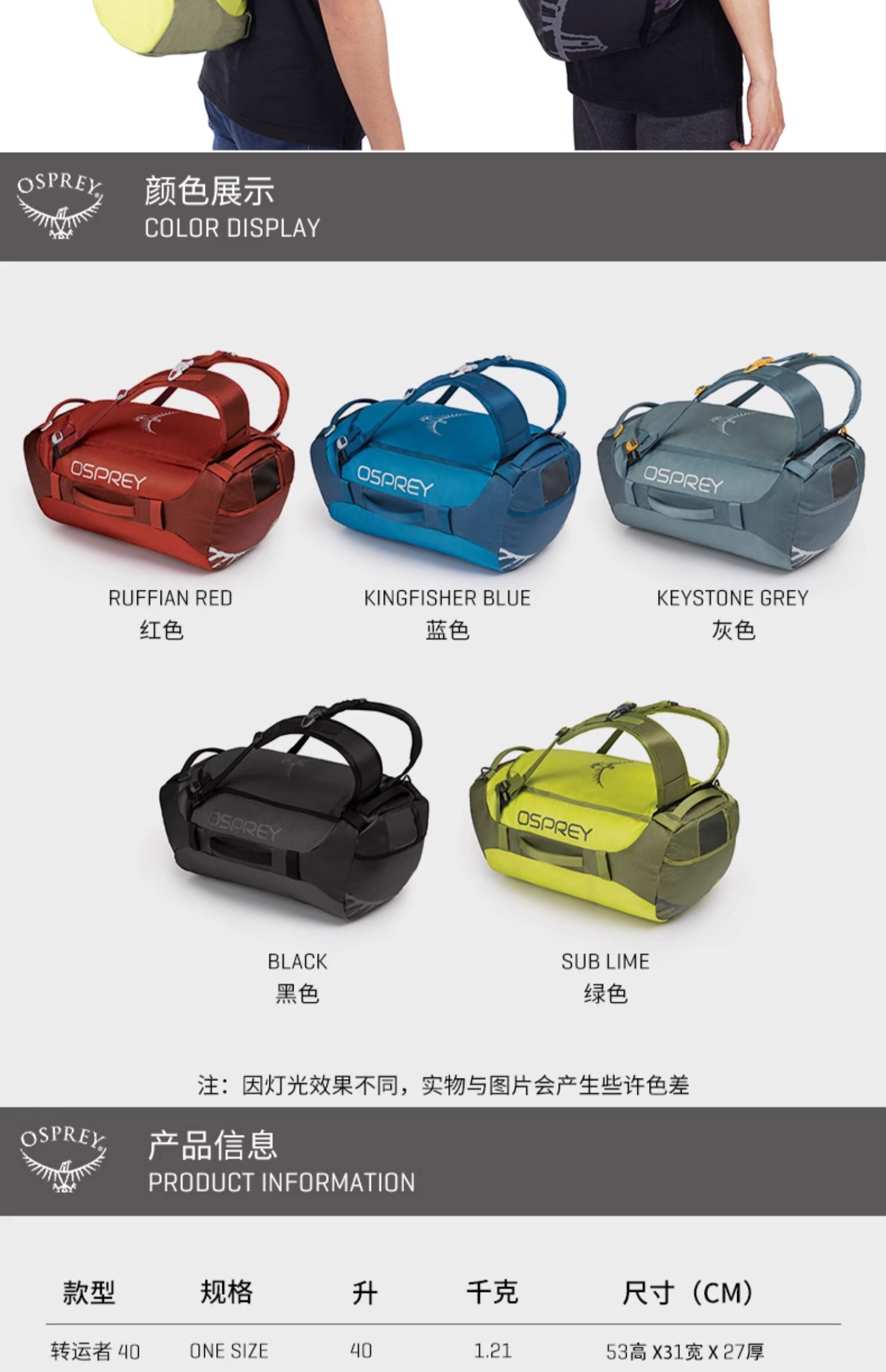 OSPREY TRANSPORTER 转运者大容量旅行双肩包防泼水防滑驮包背包