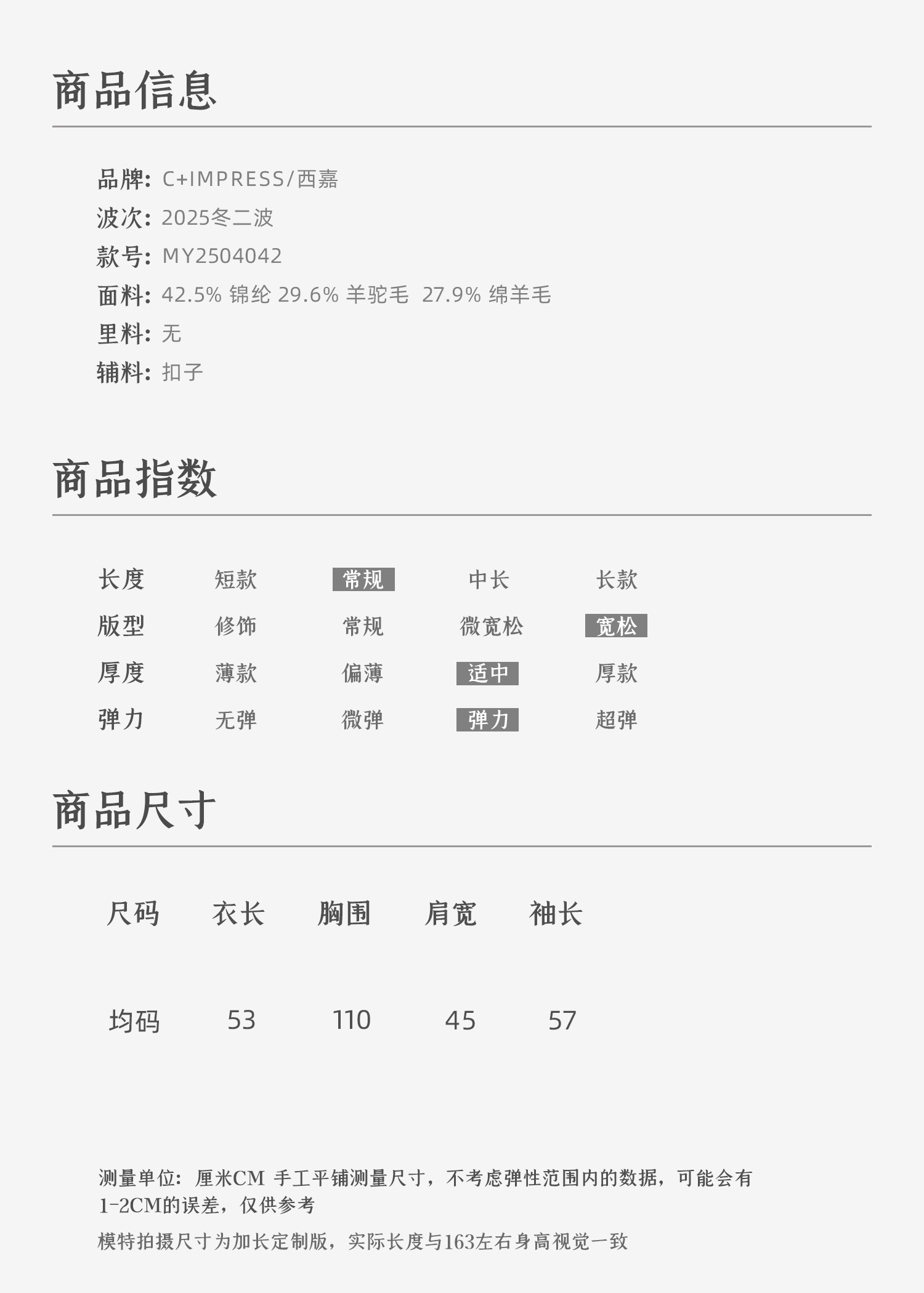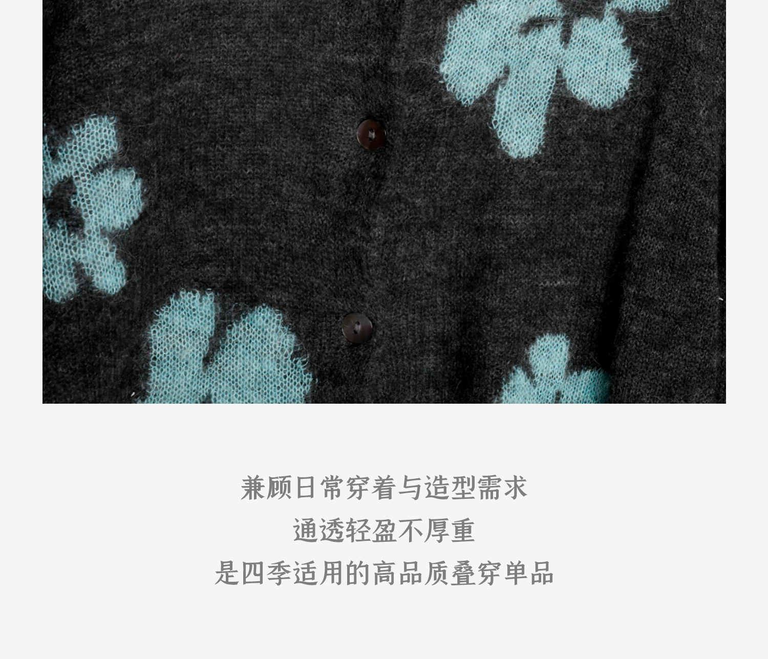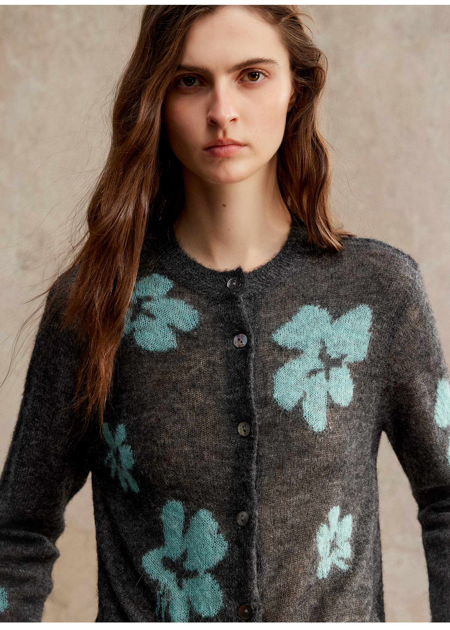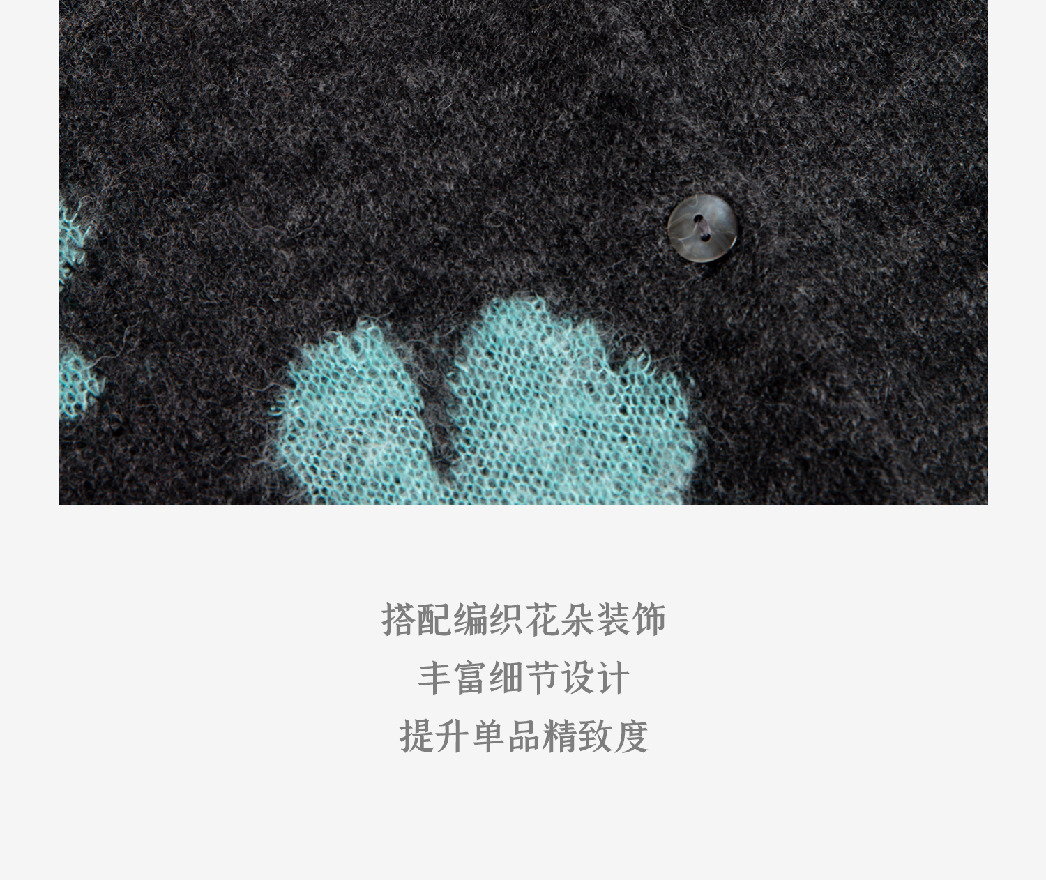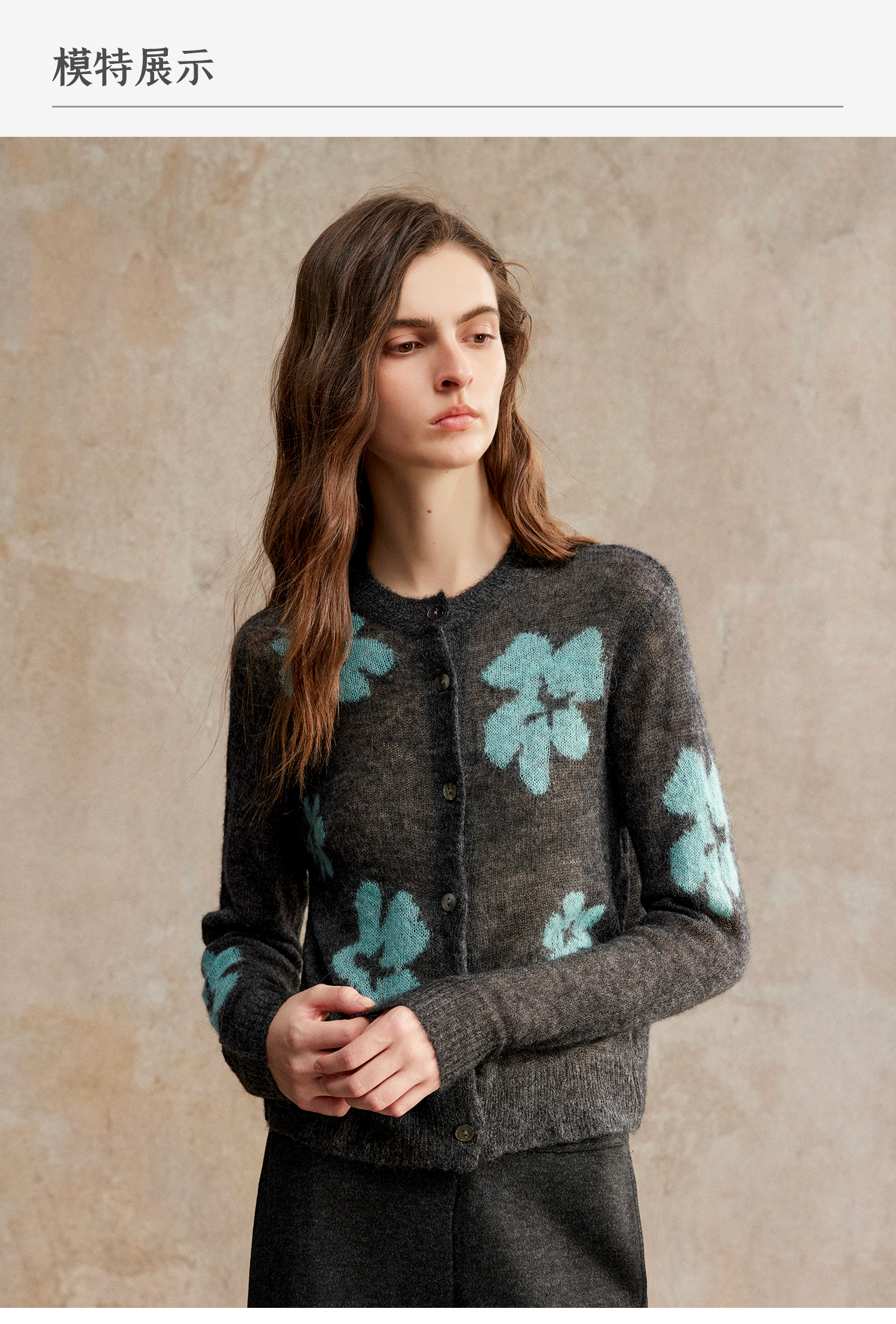 C+IMPRESS/西嘉羊驼毛撞色花朵设计感圆领针织开衫女冬季简约百搭