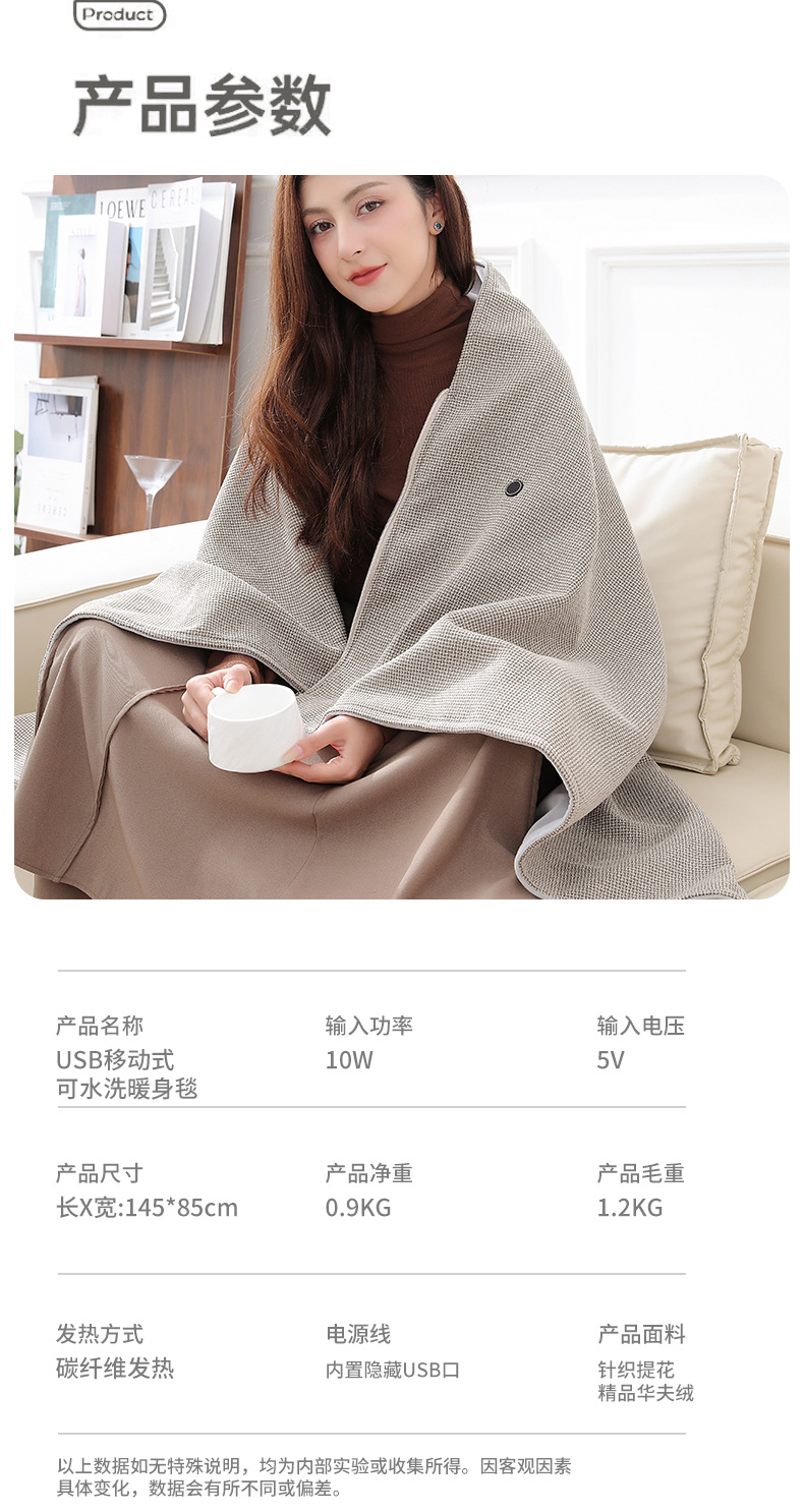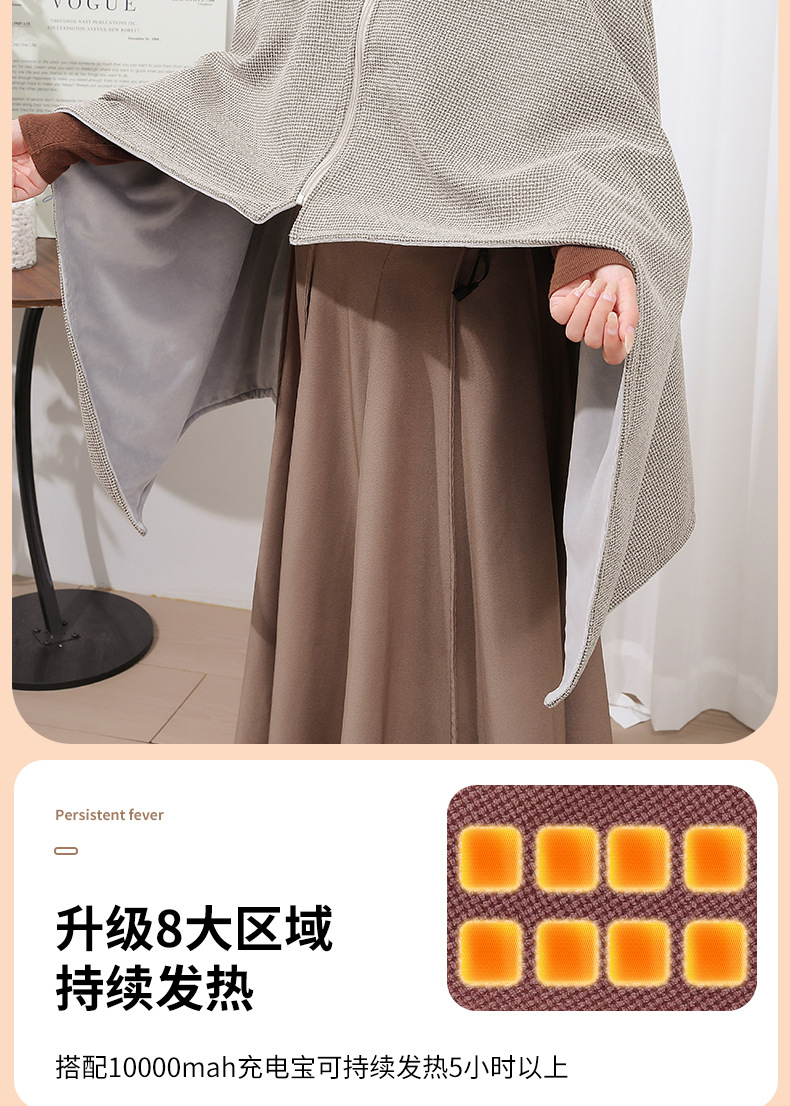 【可披可盖可水洗❗️8大区域持续保暖】电热暖披肩USB可水洗发热盖腿办公室户外加热褥子暖膝。hc