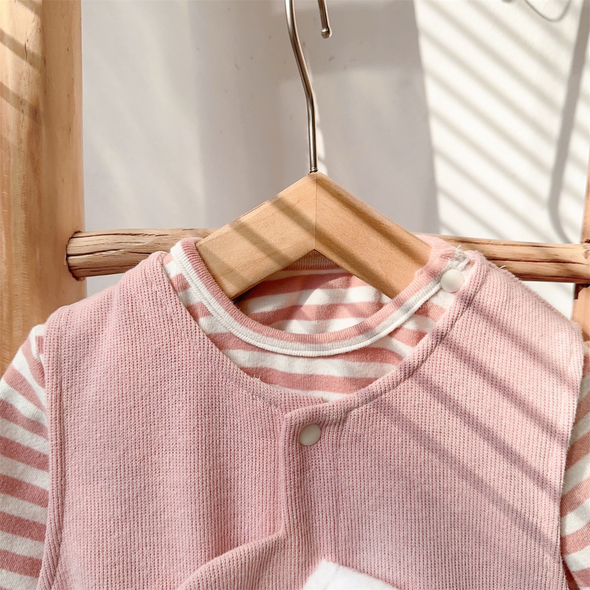 【萌趣背带外出服,打造时尚小公主】宝宝春秋衣服连体衣婴儿背带裤套装女童上衣小月龄周岁外出满月服。hb