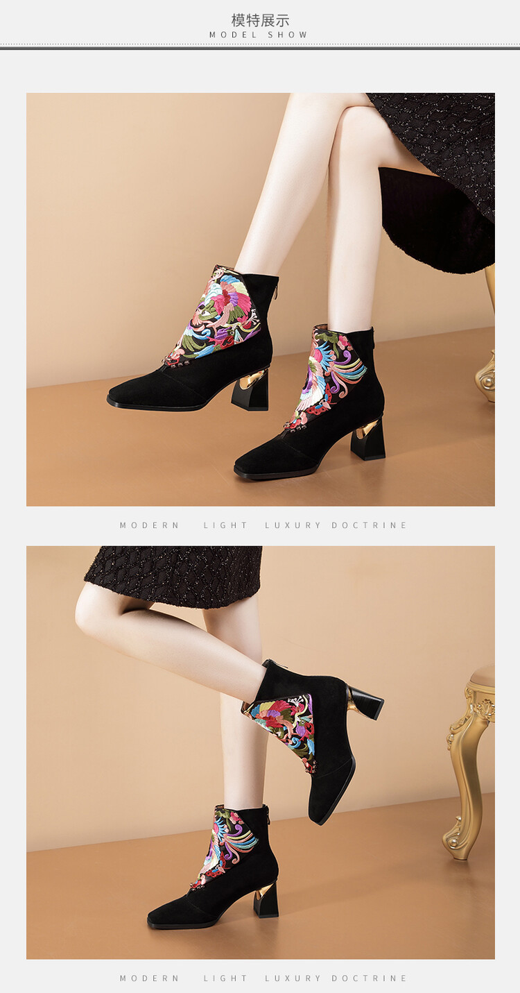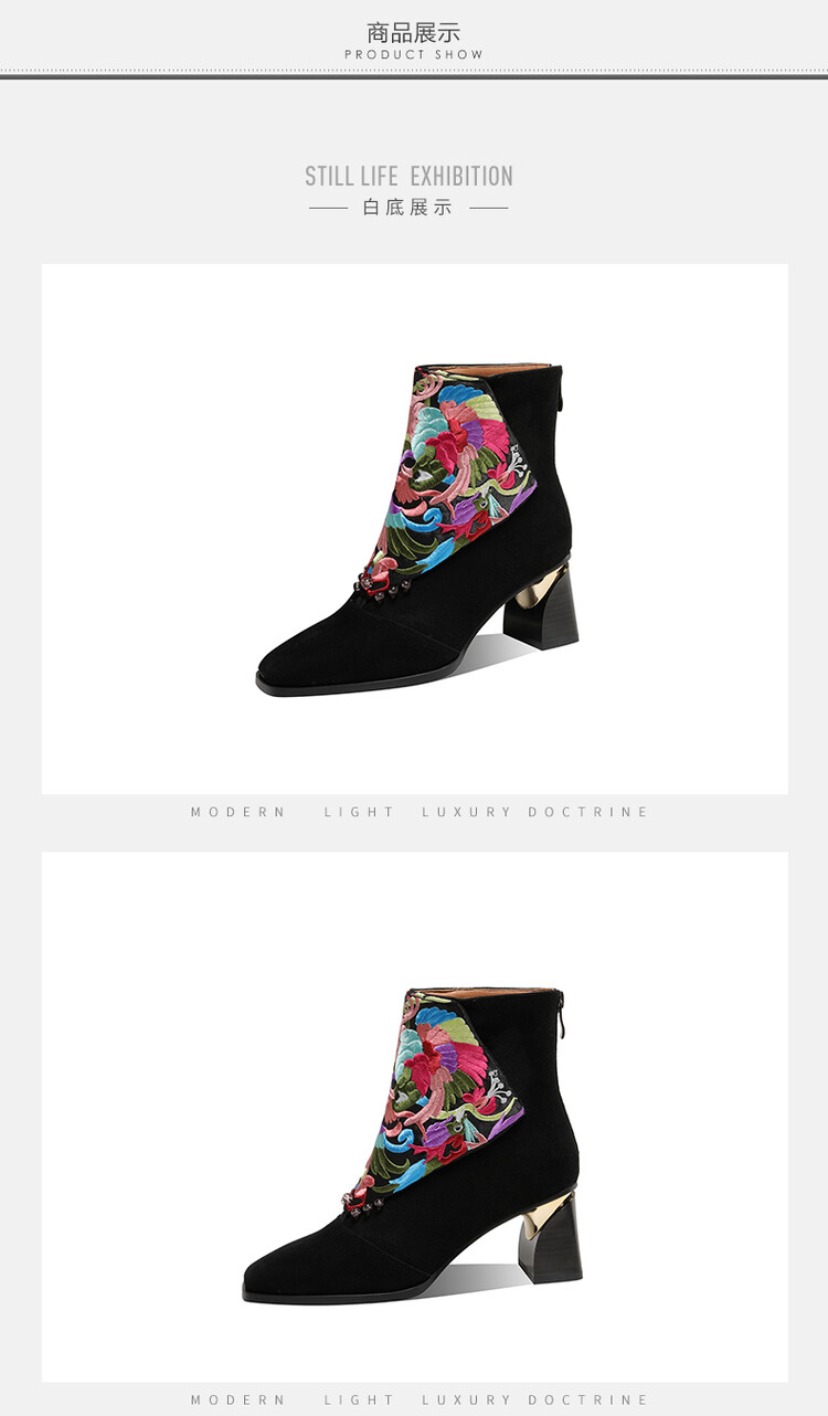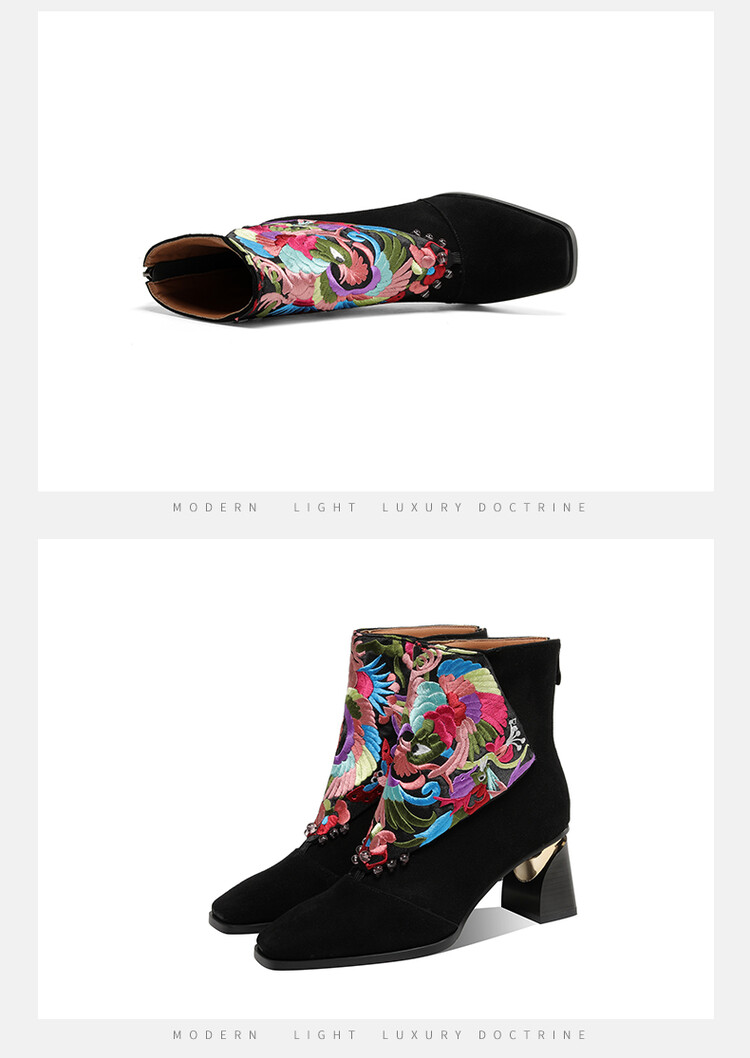 【鞋面材质】:羊反皮+民族风刺绣