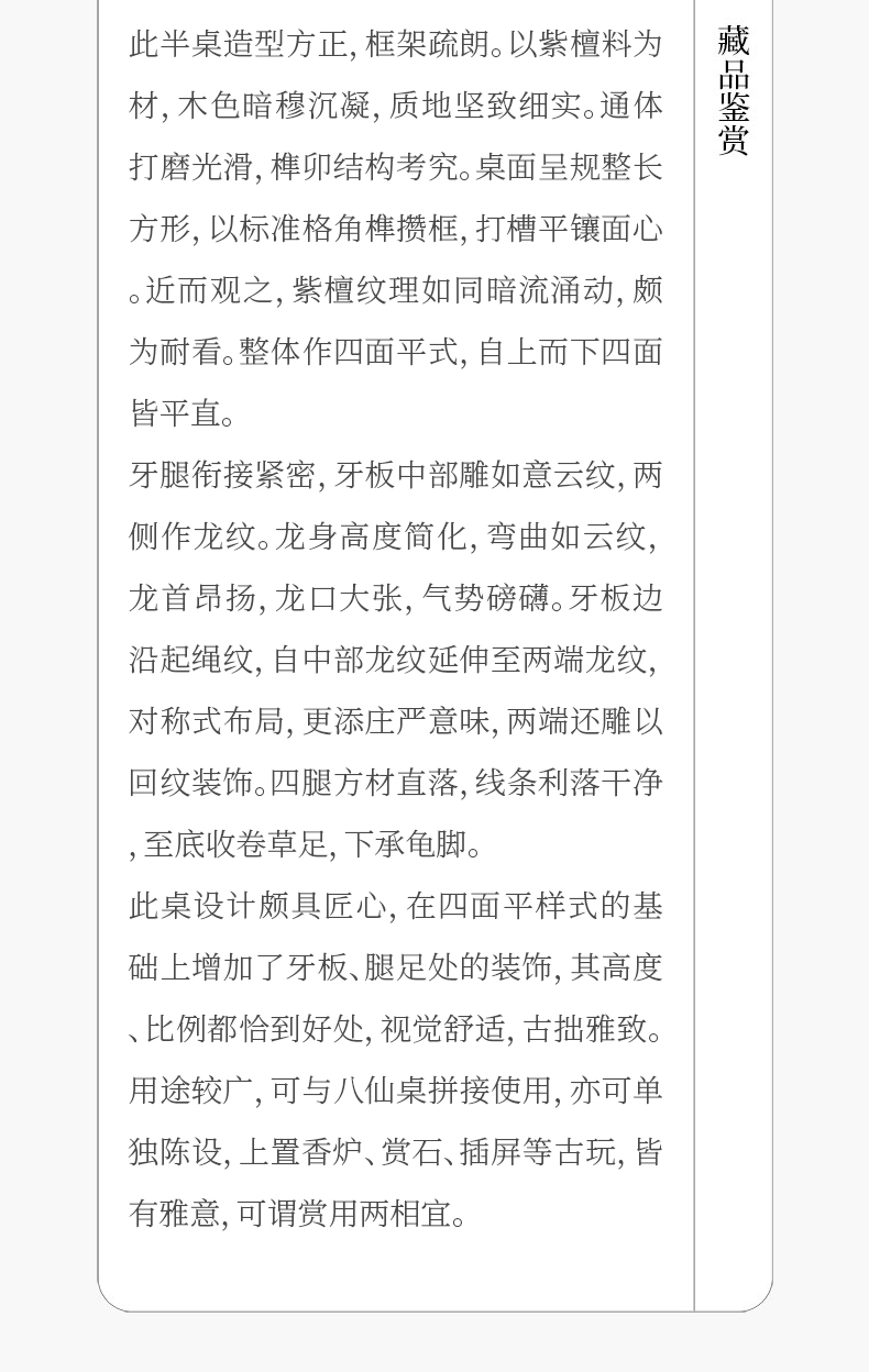 清 紫檀龙纹四面平半桌