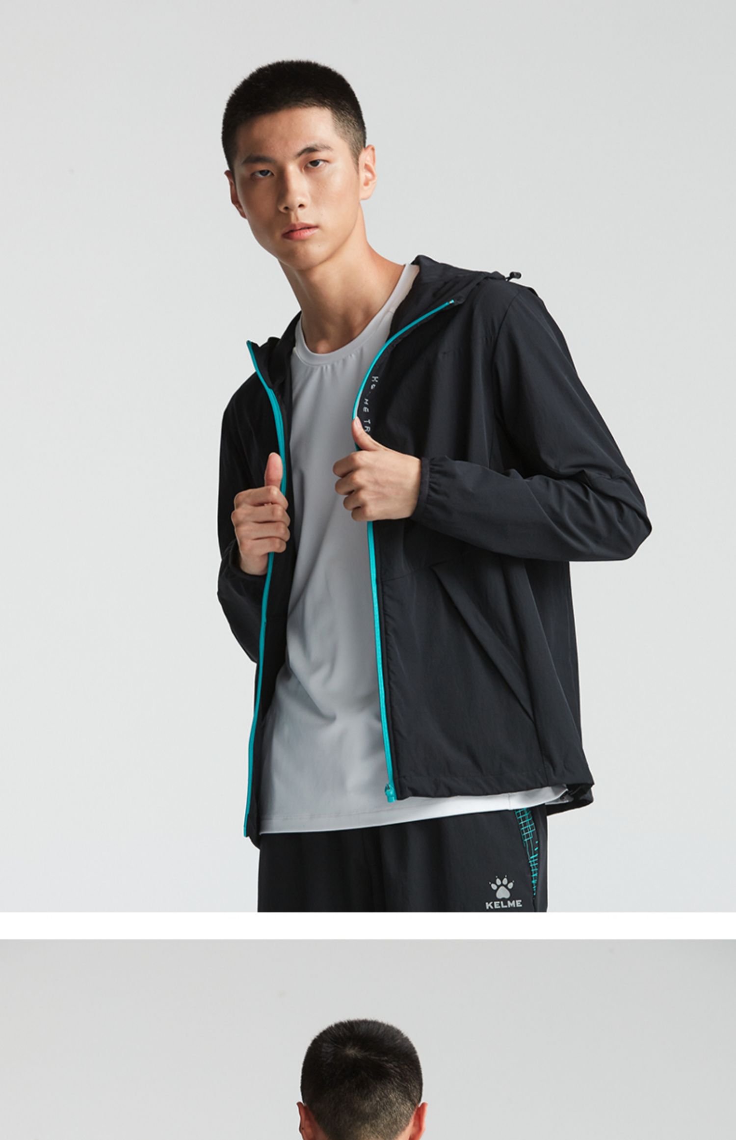 KELME卡尔美运动休闲外套新款春夏男士梭织连帽开衫拉链上衣