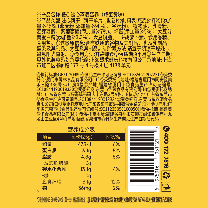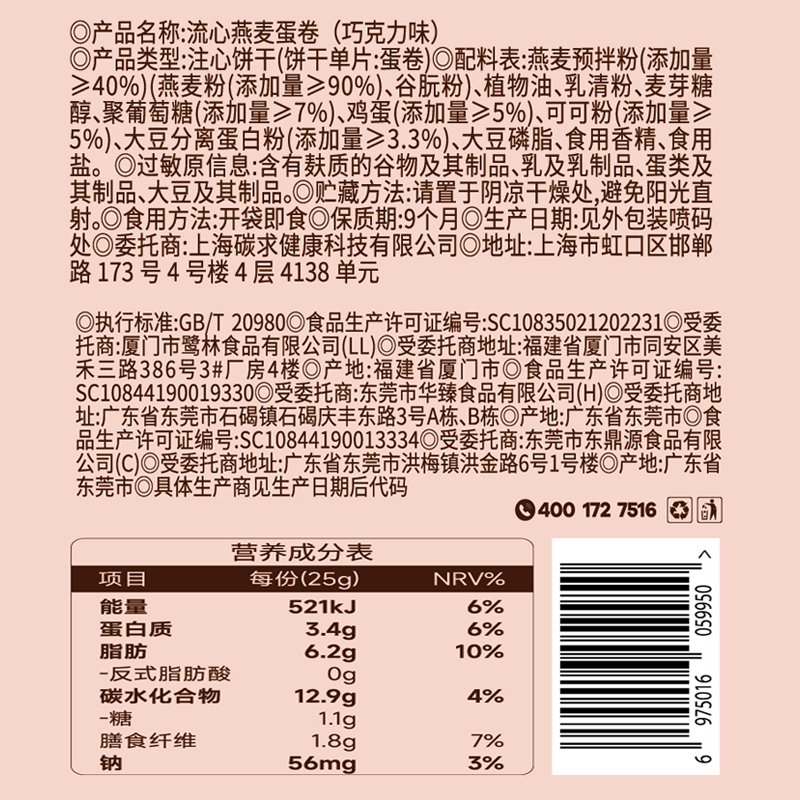 低糖流心燕麦蛋卷 特调巧克力流心酱 高蛋白+益生元 优质燕麦+新鲜鸡蛋制作