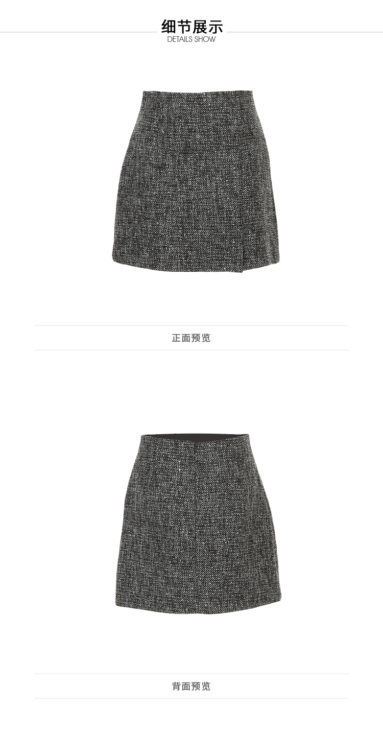VIMAGE纬漫纪小开叉a字显瘦气质灰色小香风半身裙冬季新款V2206816