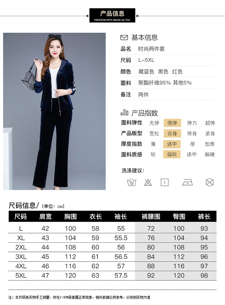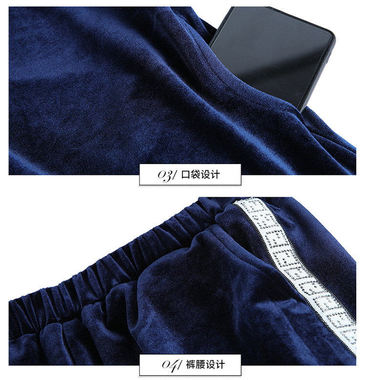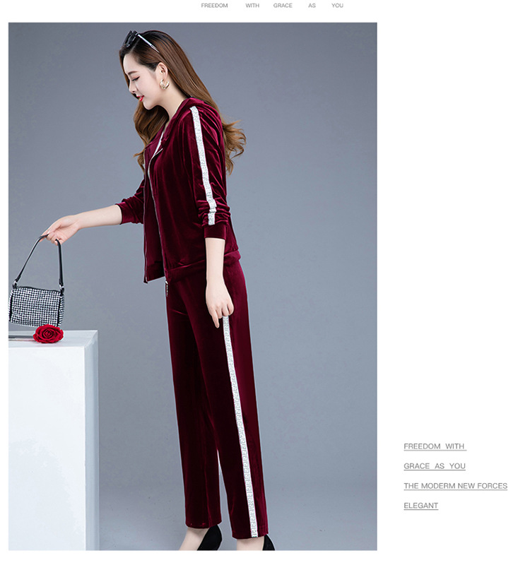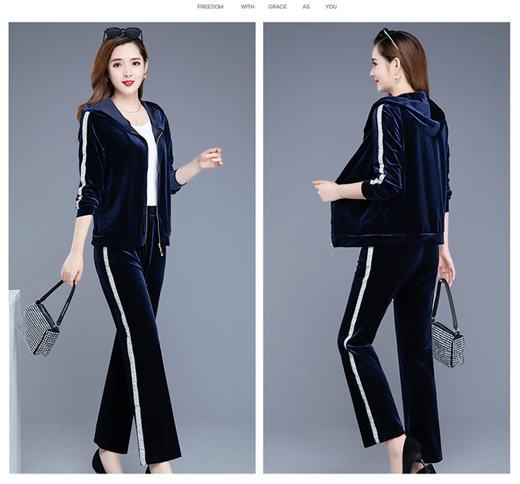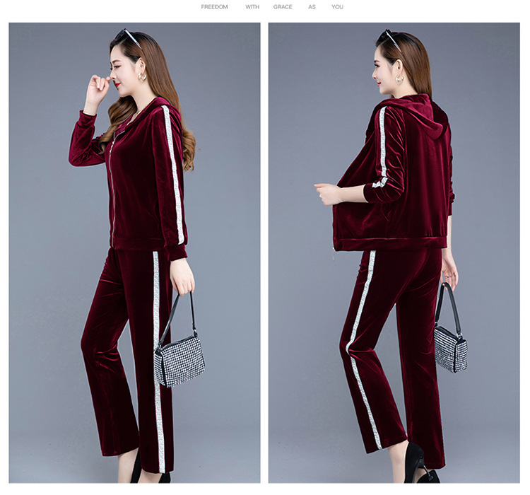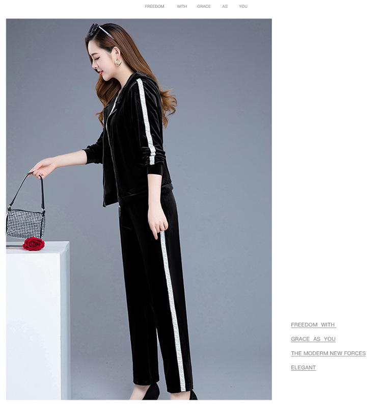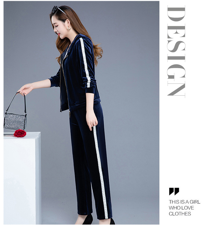 YWE-TC269新款时尚气质修身连帽长袖金丝绒外套长裤两件套