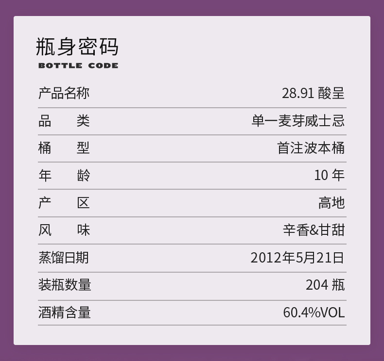 【SMWS】 28.91 酸呈 10年 单一麦芽 威士忌 进口 洋酒