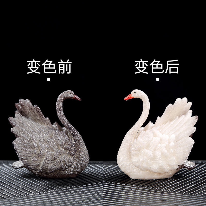 星罗唐丰一对茶宠变色天鹅家用可养创意个性茶玩茶台摆件-M仓