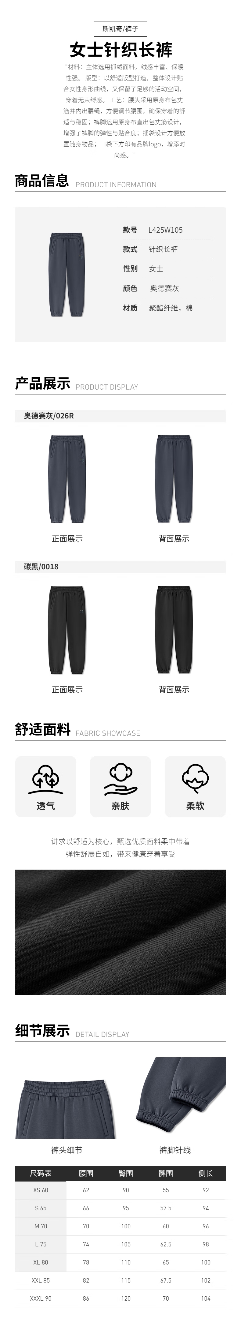 Skechers斯凯奇 女针织长裤 L425W105-0074
