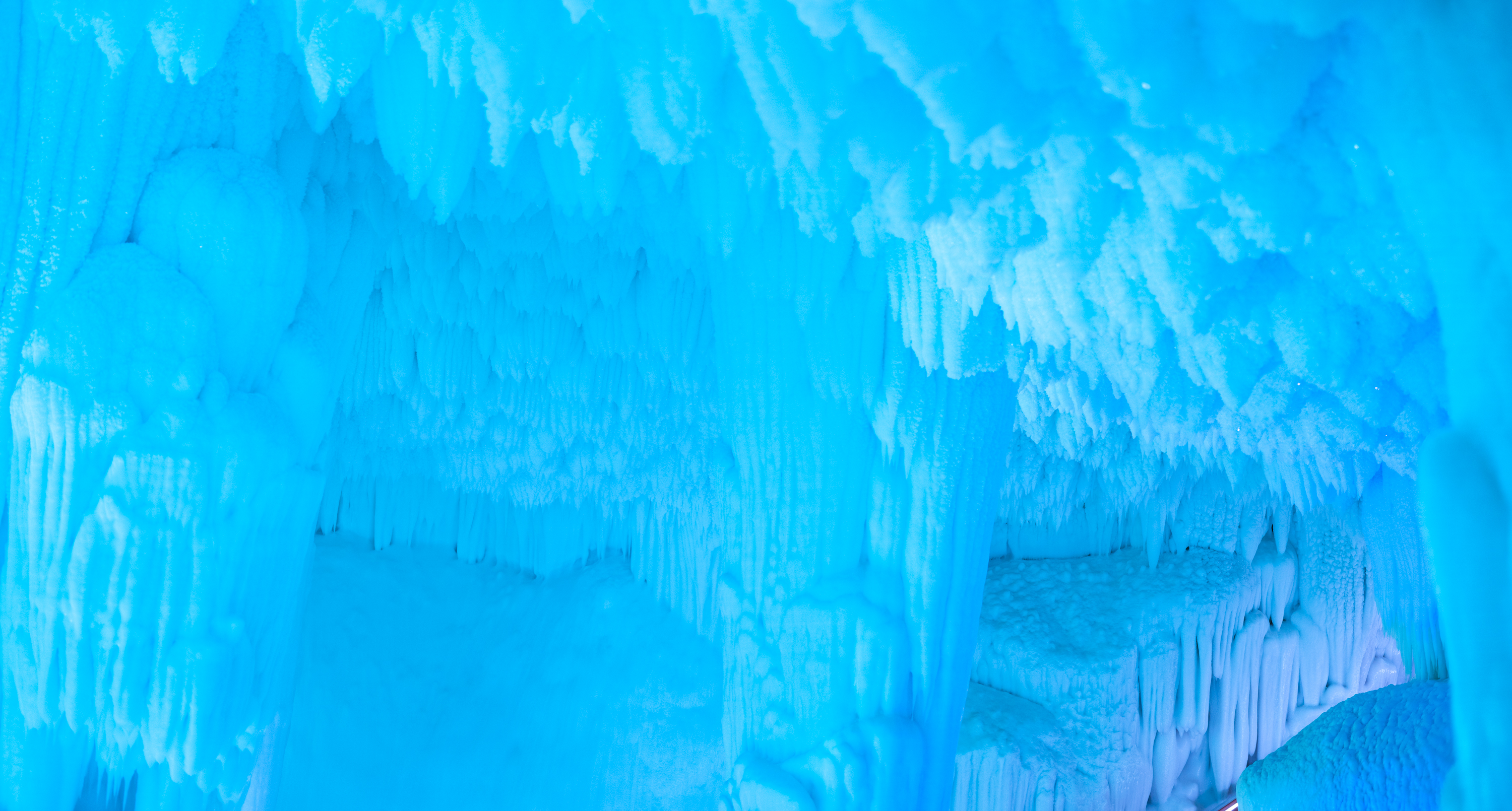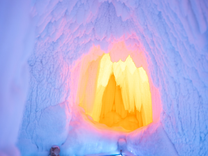 位于山西省忻州市宁武县城西50公里处的春景洼村境内的云丘山风景区内,形成于第四季冰川期,是距今已有300多万年历史的天然群体性冰洞。洞内四壁结冰,五步一景,冰柱、冰笋、冰钟乳、冰石花、冰锥、冰葡萄分布整个空间,大大小小的冰凌晶莹剔透,在五彩灯光的映照下显出梦幻般的景象,犹如龙宫御舍。即便是在炎热的夏季,云丘山的冰洞中依然寒气逼人。