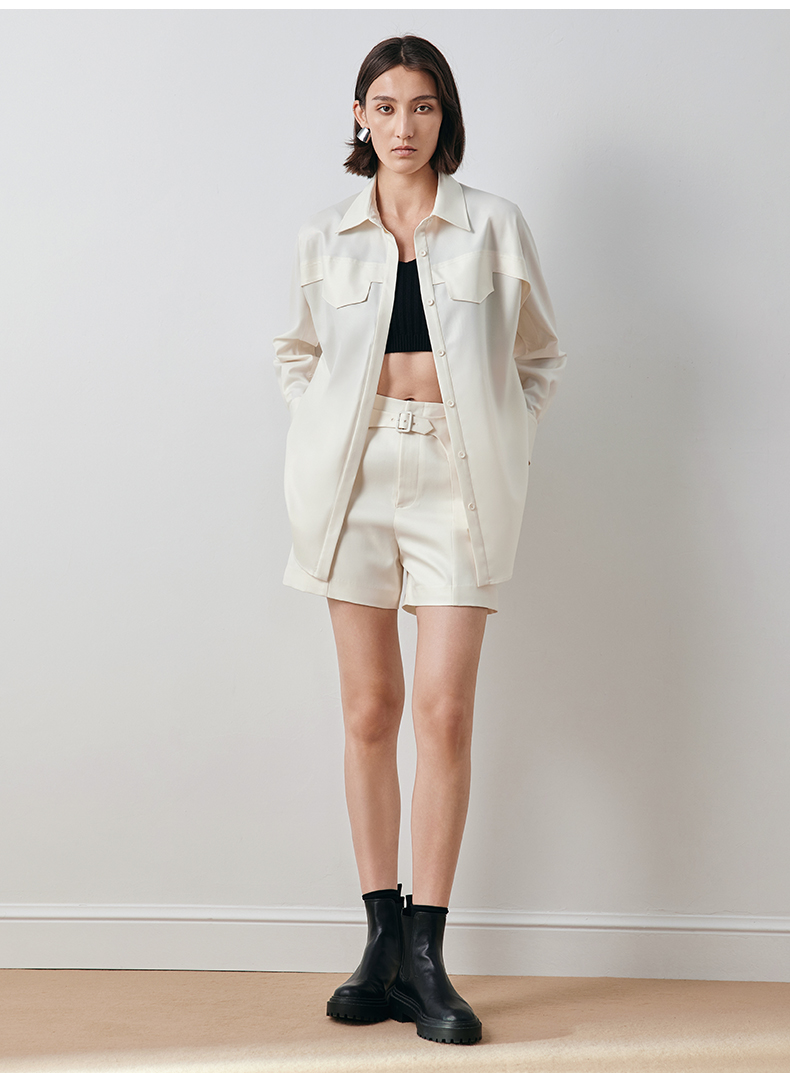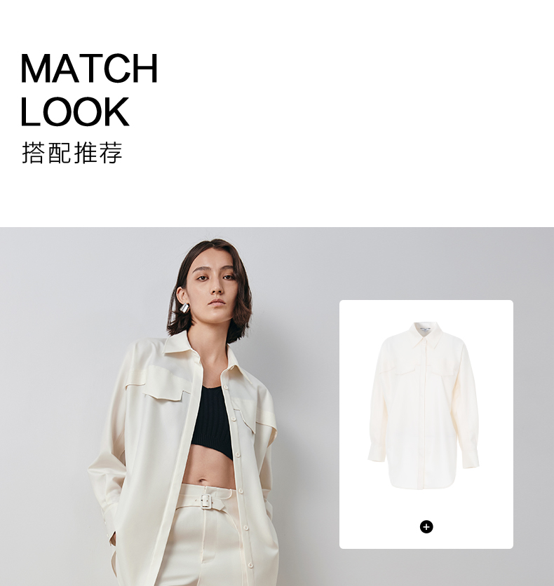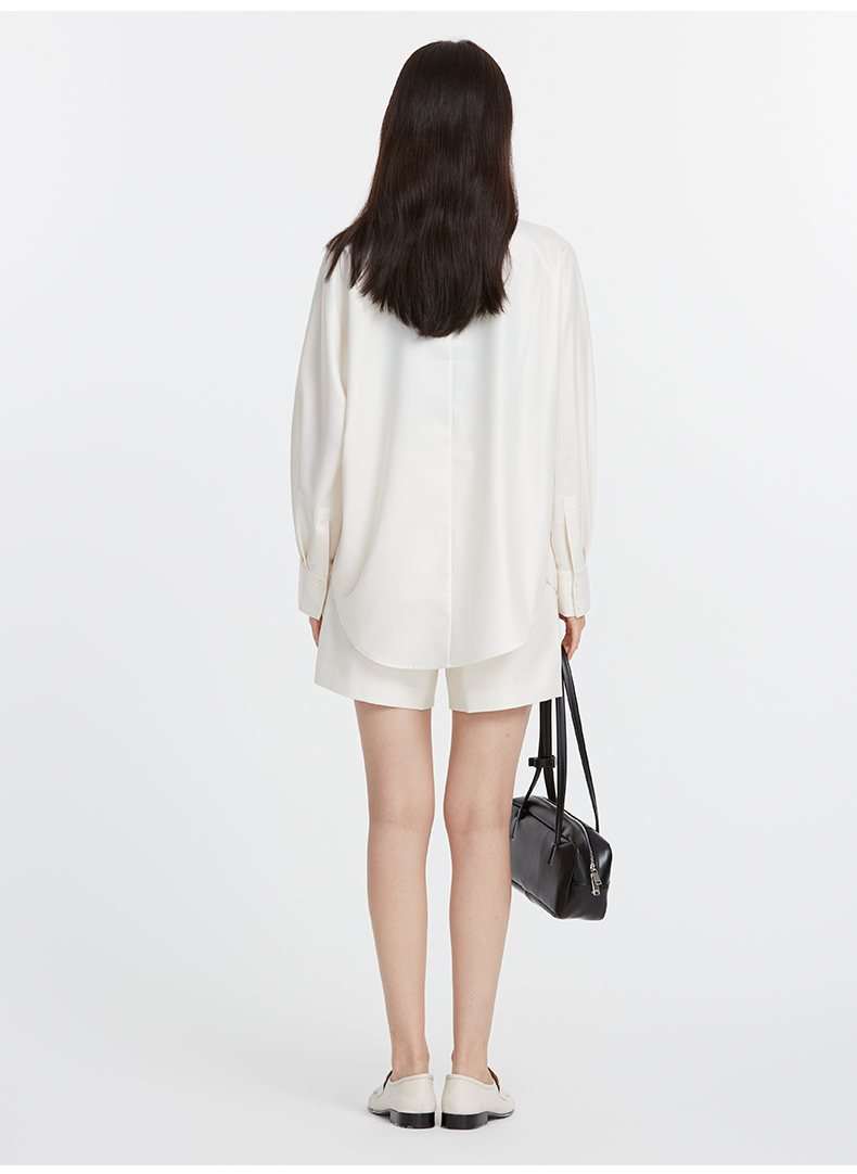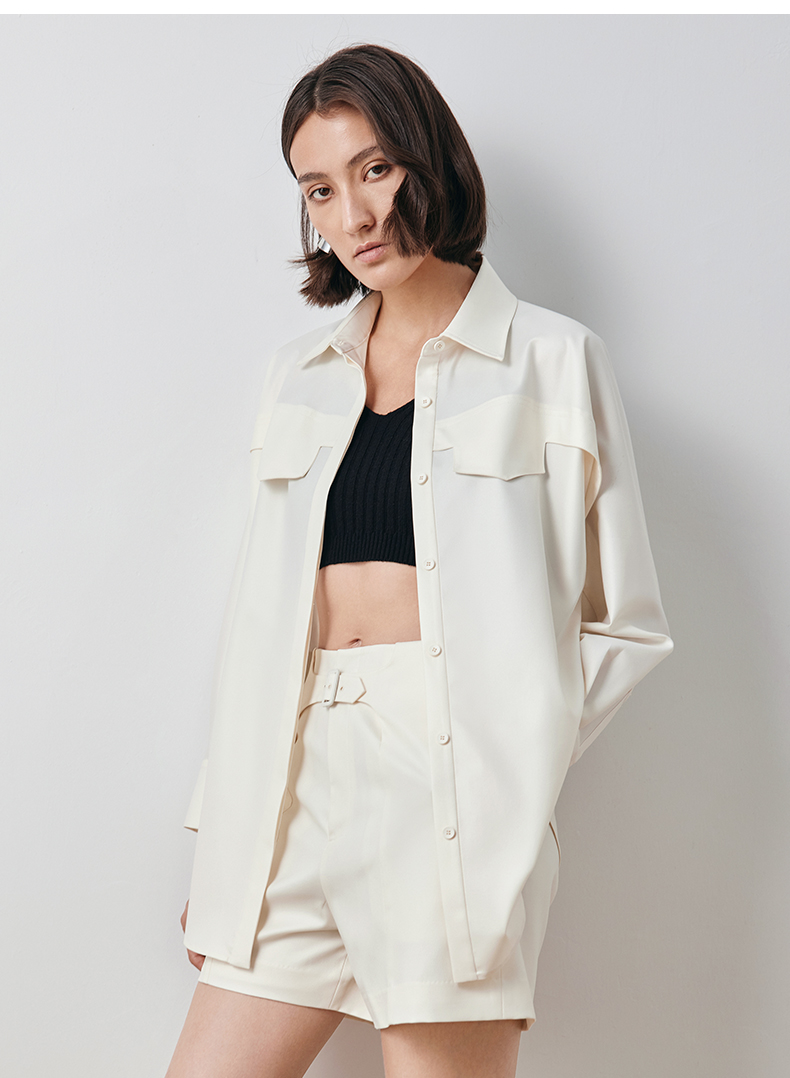 EITIE爱特爱女装春秋季新款长袖线条拼接白色简约气质衬衫薄C1909306