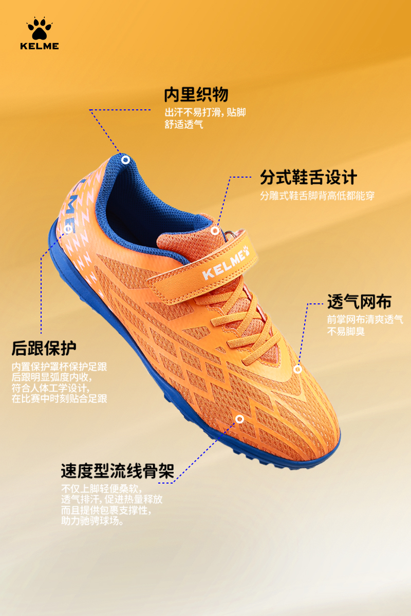 卡尔美2023年新款儿童tf碎钉足球鞋