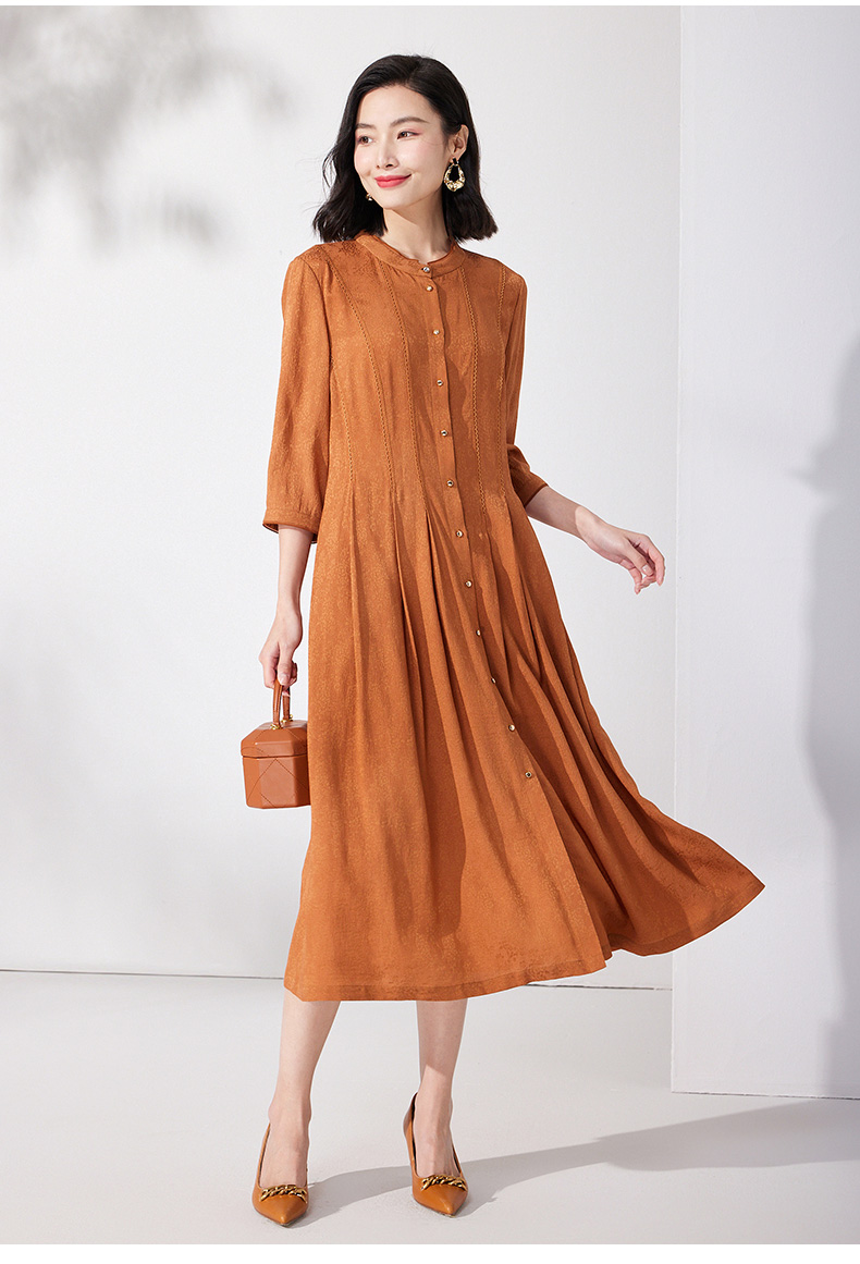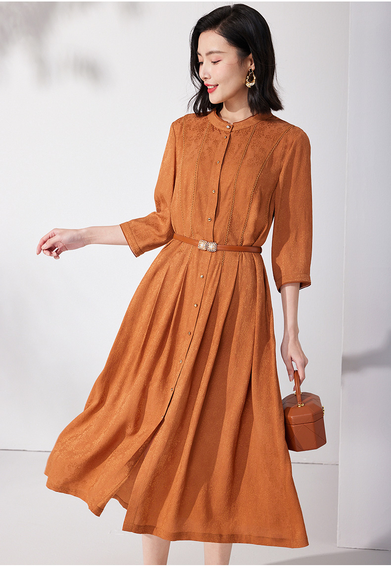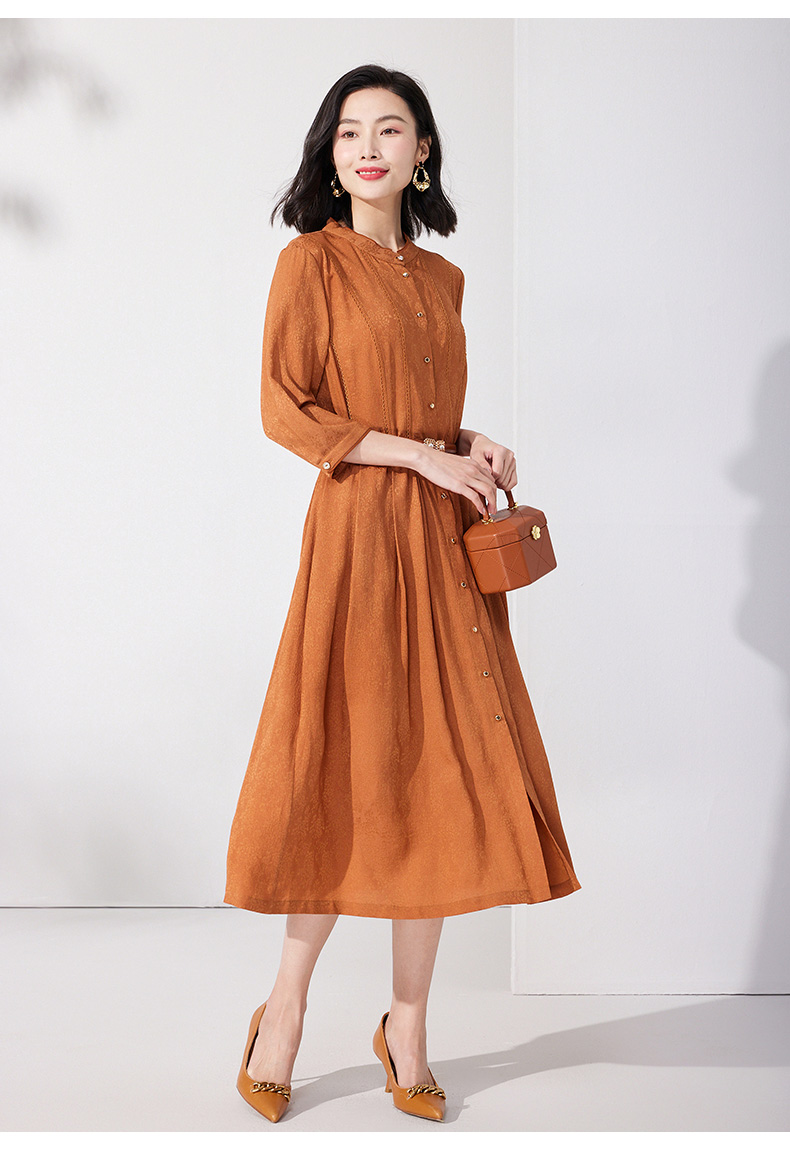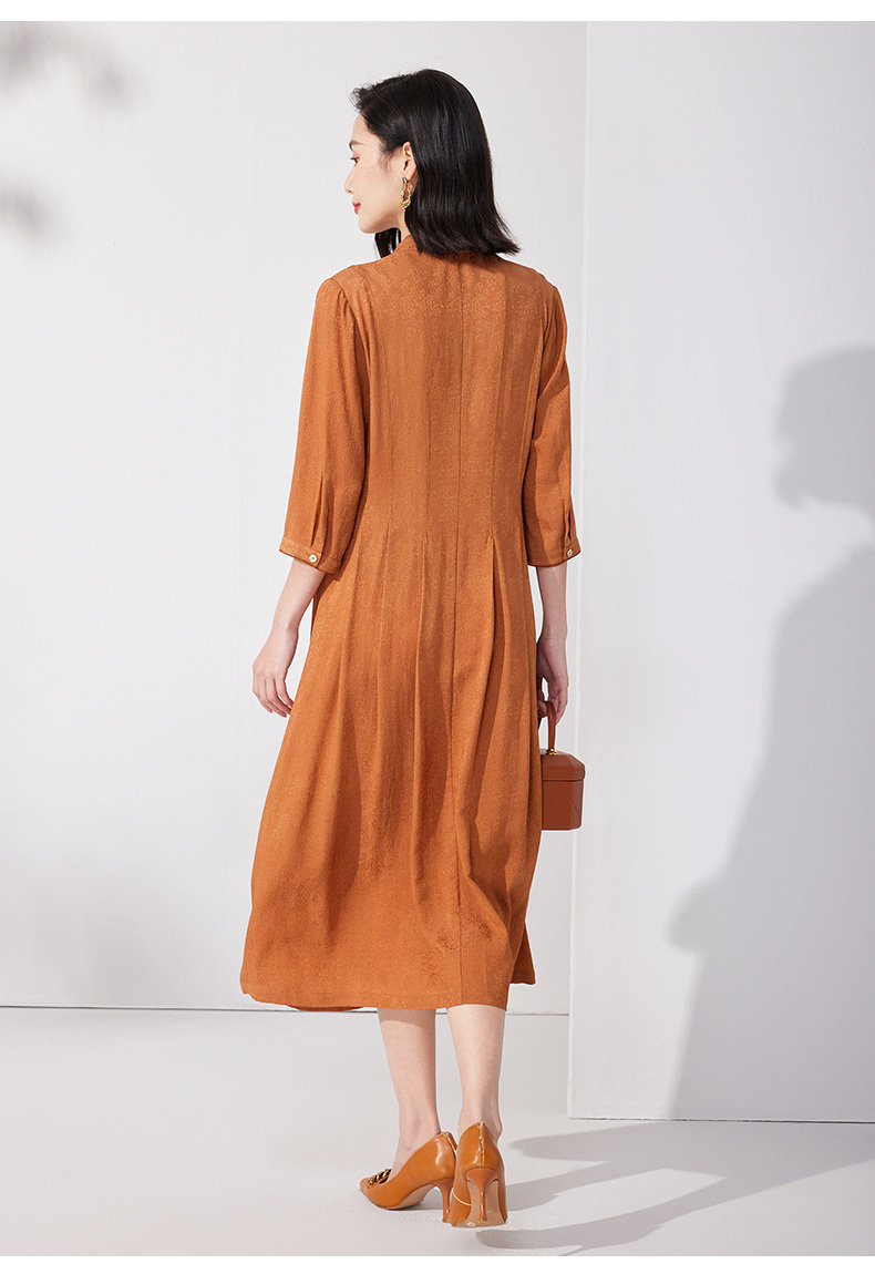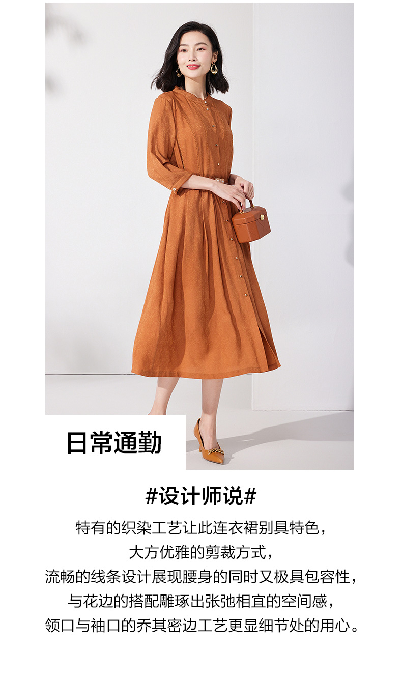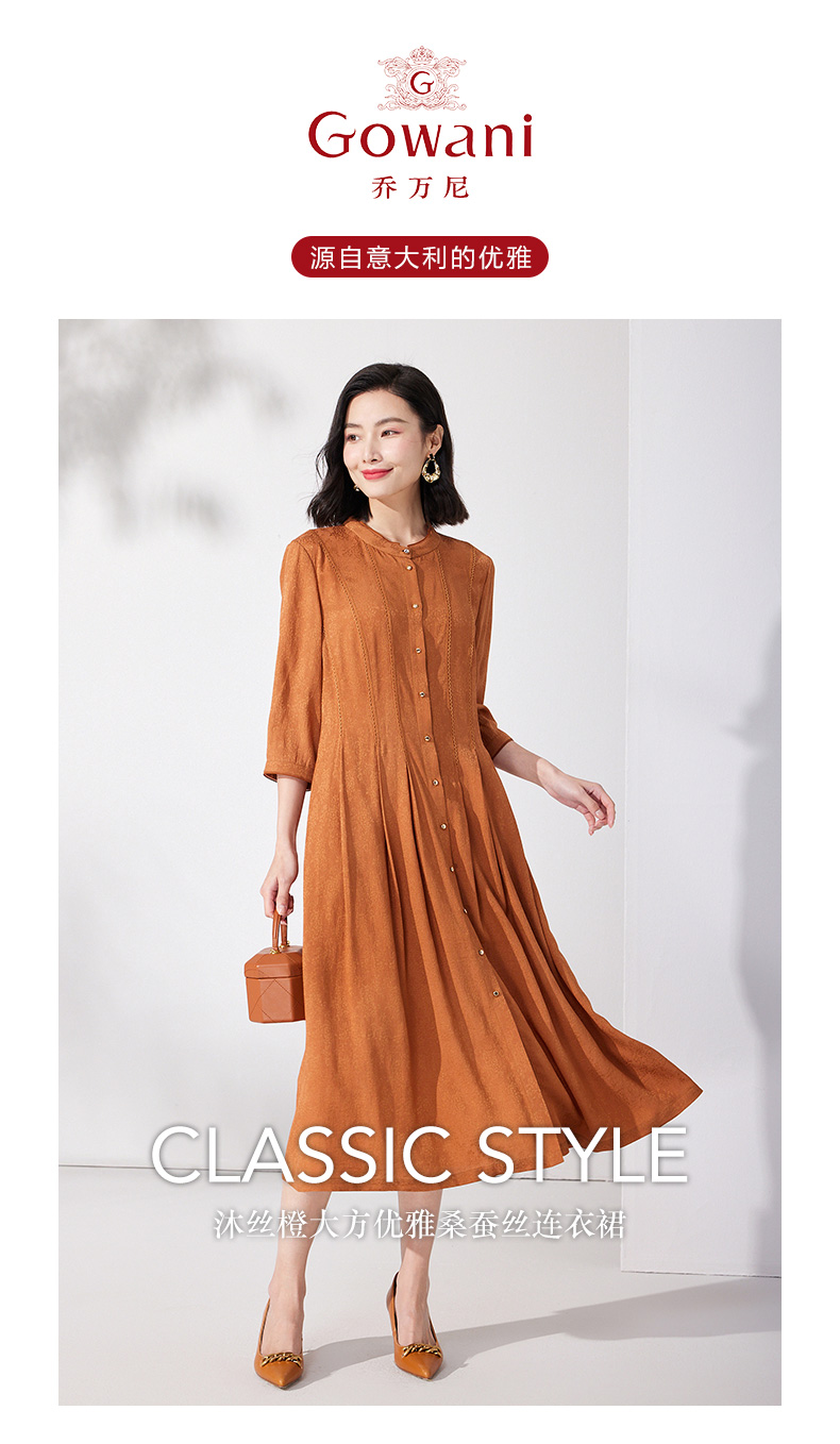 乔万尼真丝蚕桑丝连衣裙夏季新款修身中袖长裙ET2E236