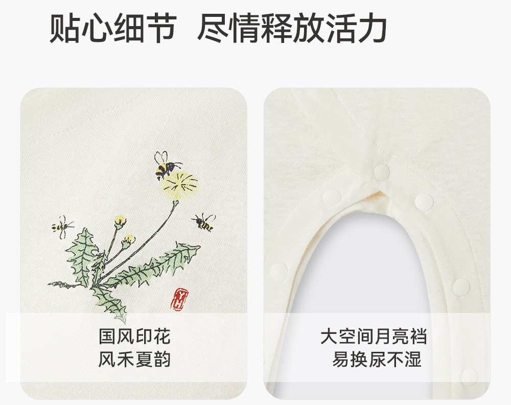 【商场同款】英氏新国风童装婴幼儿抑菌连体衣春夏透气防螨爬服Z