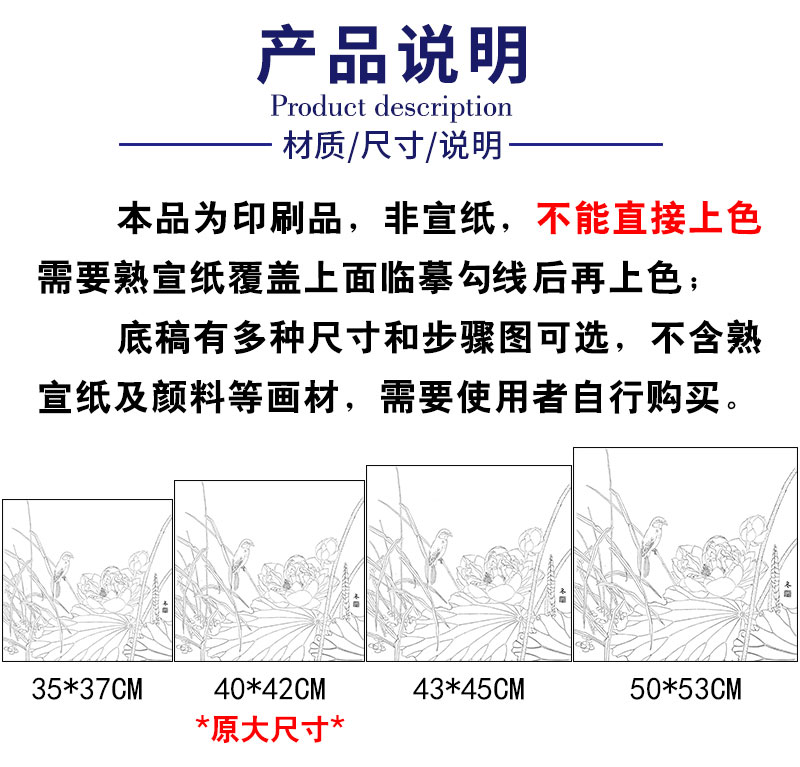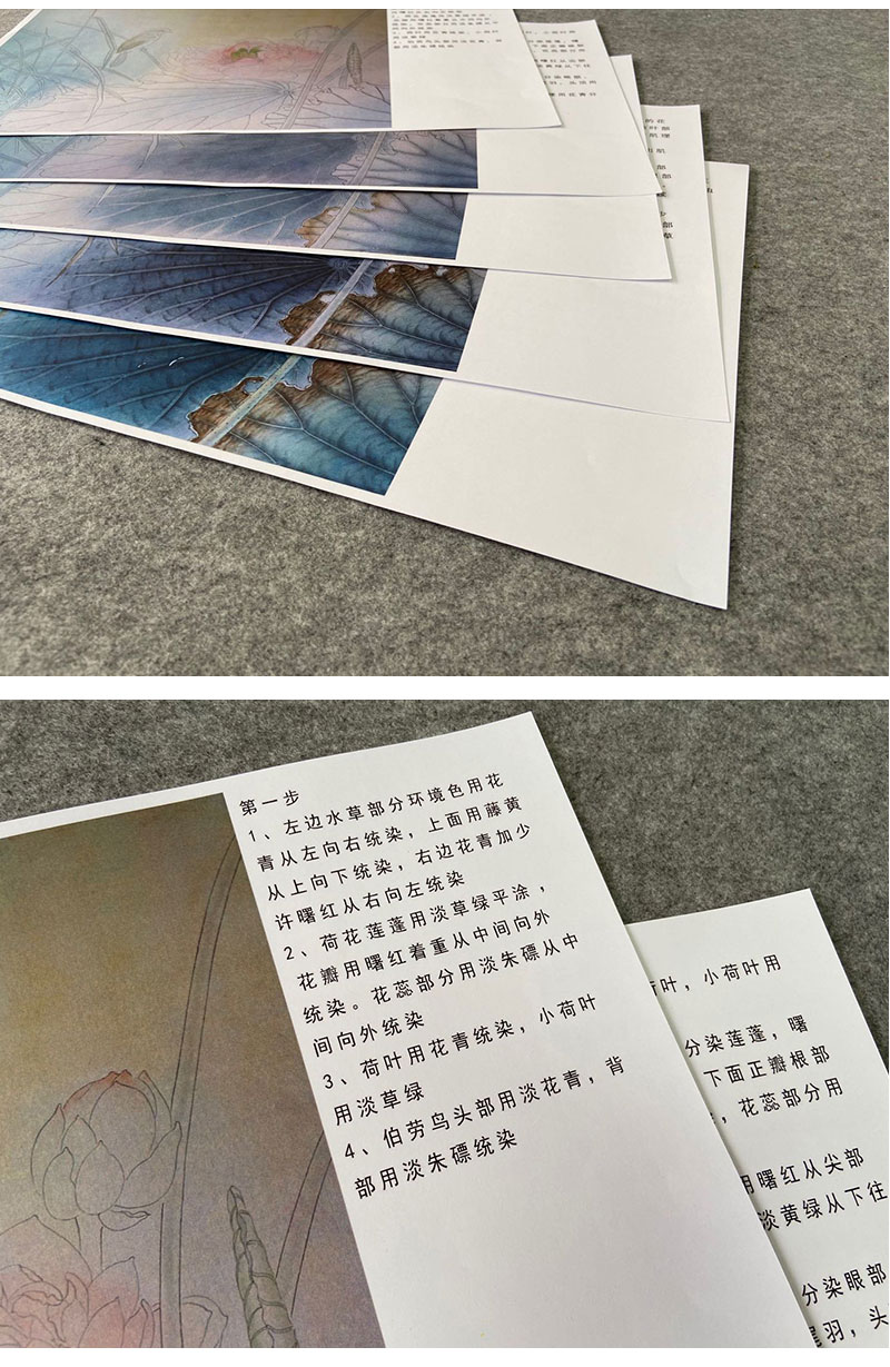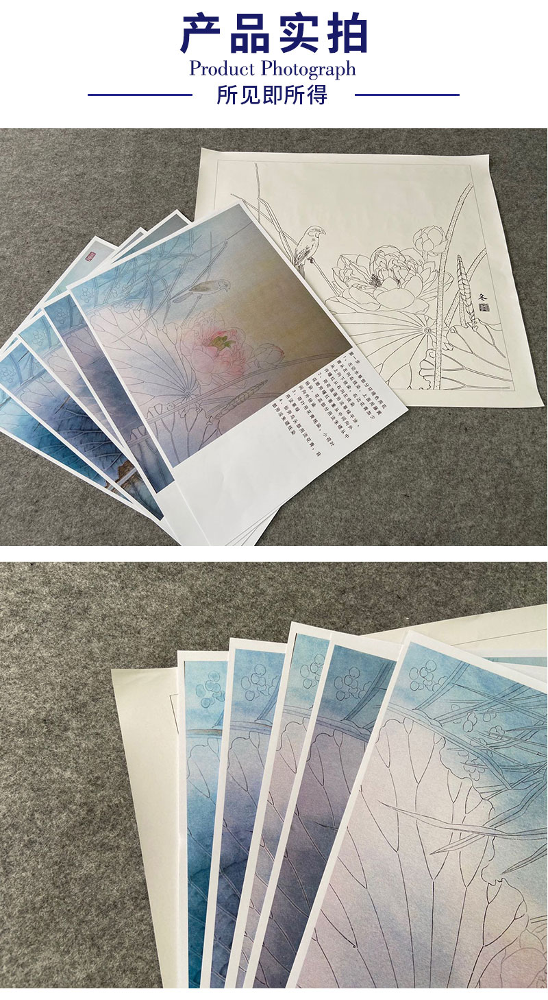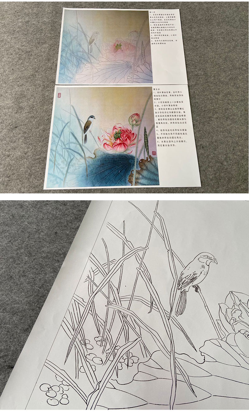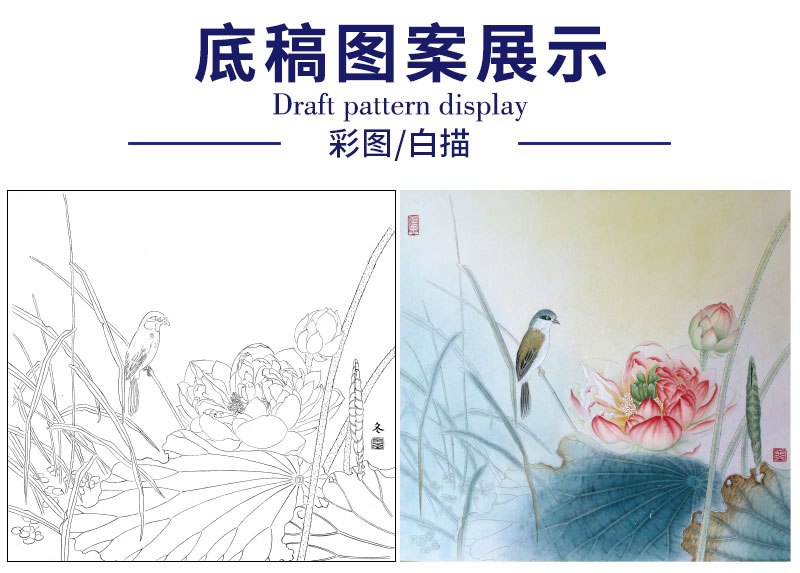 【有步骤、大彩图】杨冬冬工笔画白描底稿斗方小品《寒香映水》荷花伯劳鸟初学者临摹花鸟线稿HD47