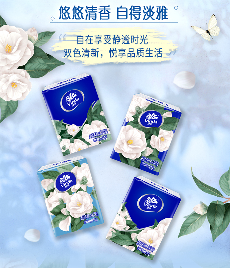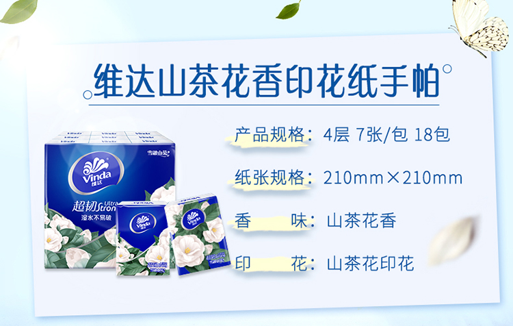 【官方包邮】维达超韧迷你纸手帕4层18包装(山茶花香印花)