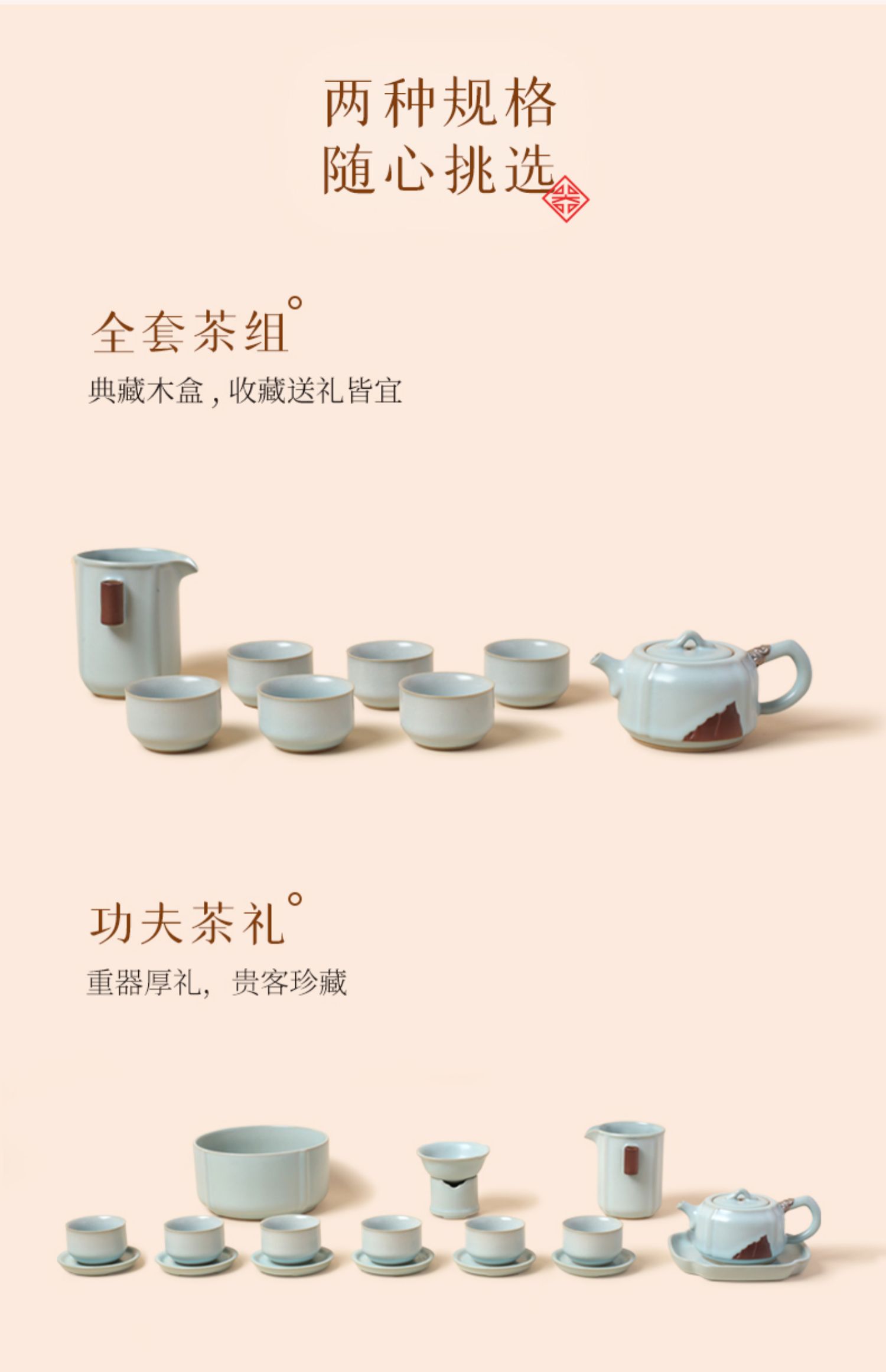 【彼达思】陆宝 雨果天青 汝窑茶礼礼盒套装 仿古汝瓷家用功夫茶具