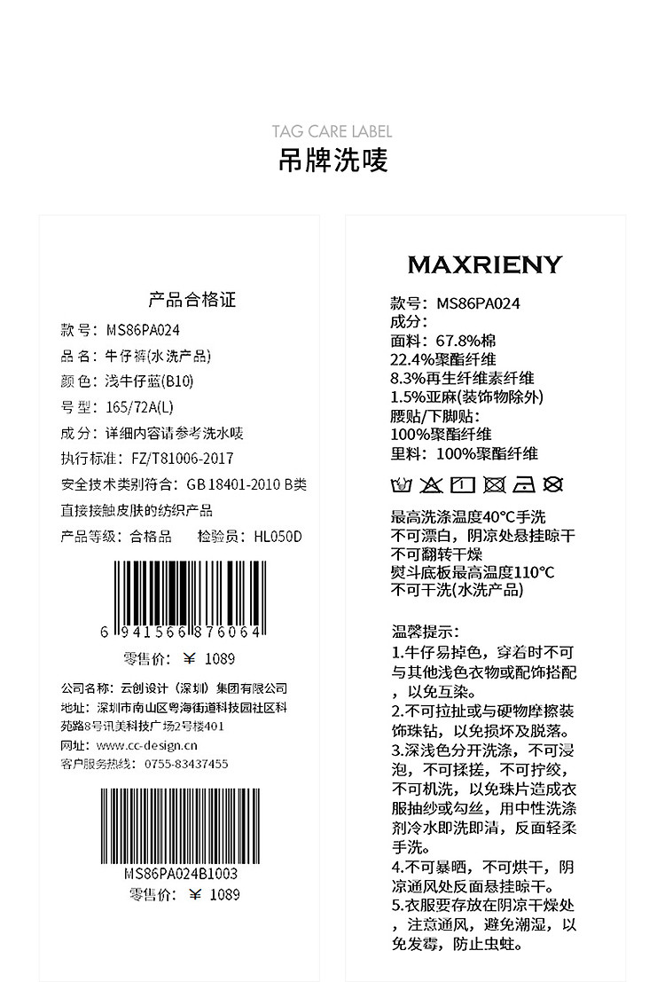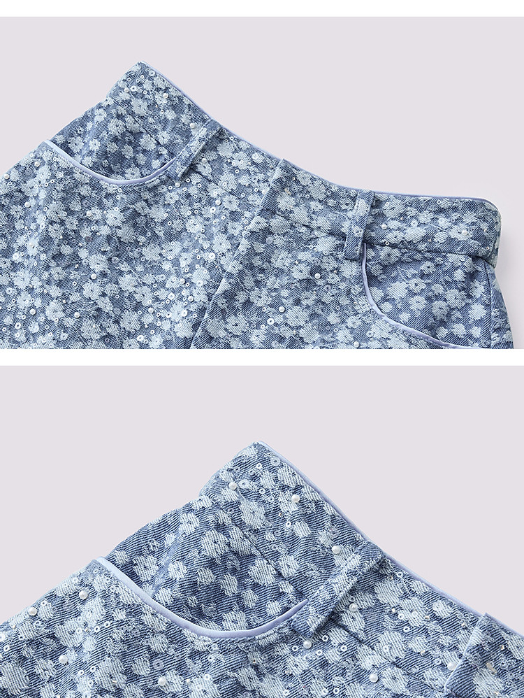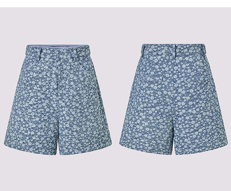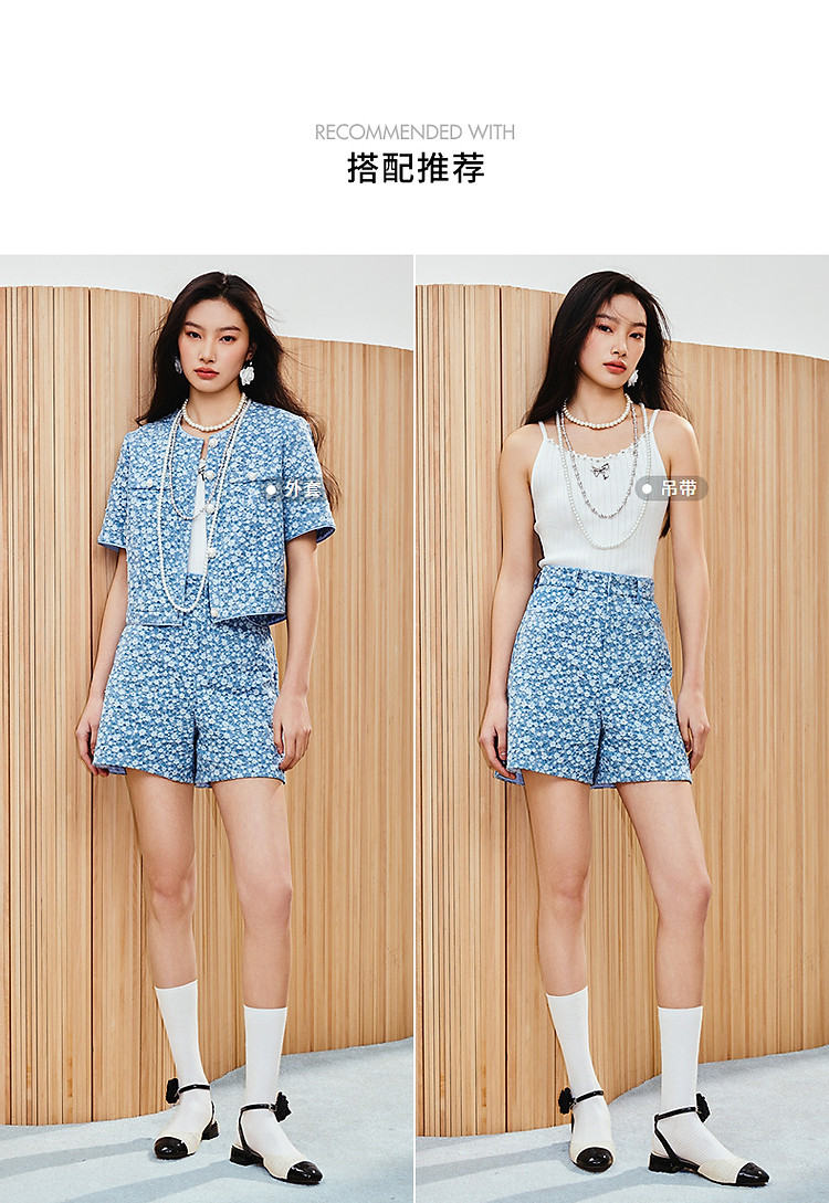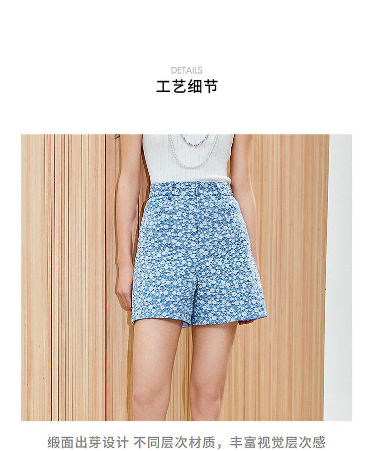 水洗浅牛仔蓝高腰短裤女高级气质感裤子25夏季(货号:MS86PA024B1002)