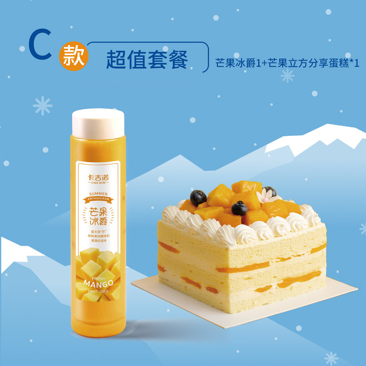 套餐产品:芒果冰爵1杯+芒果立方4吋分享蛋糕1个