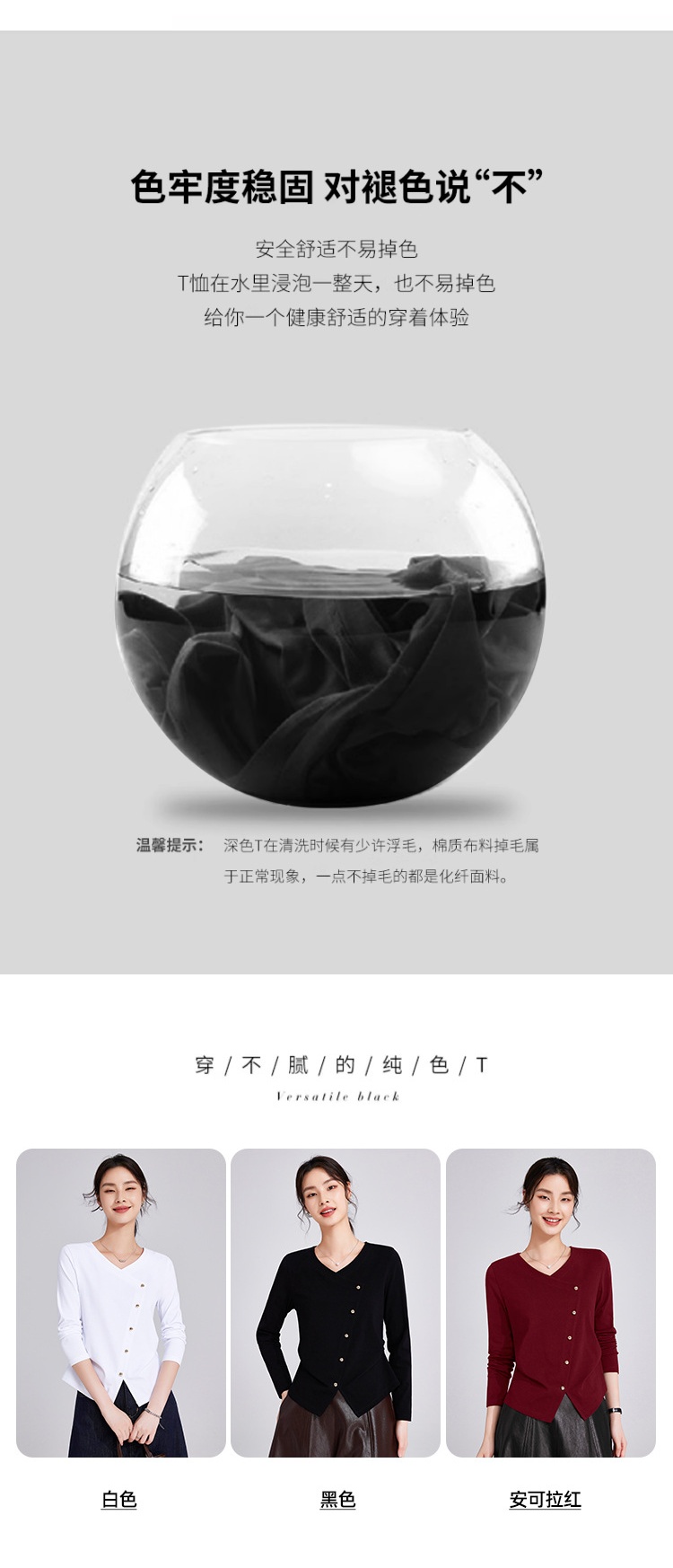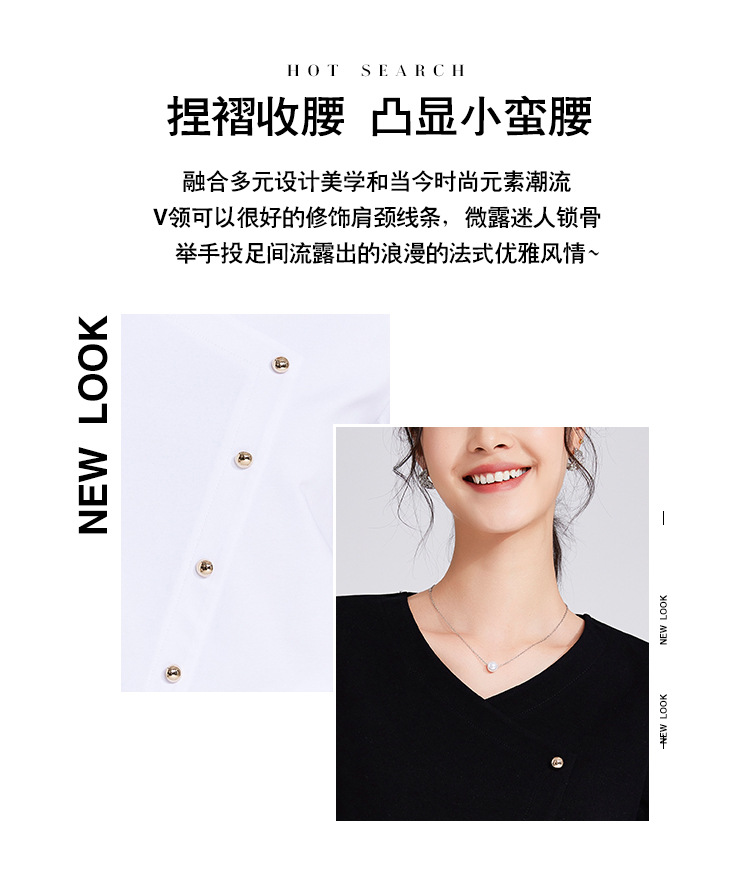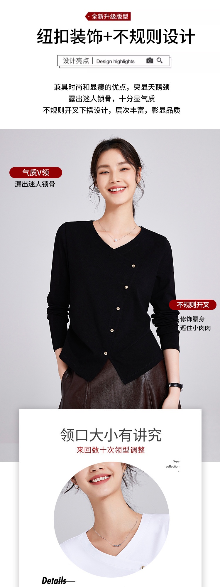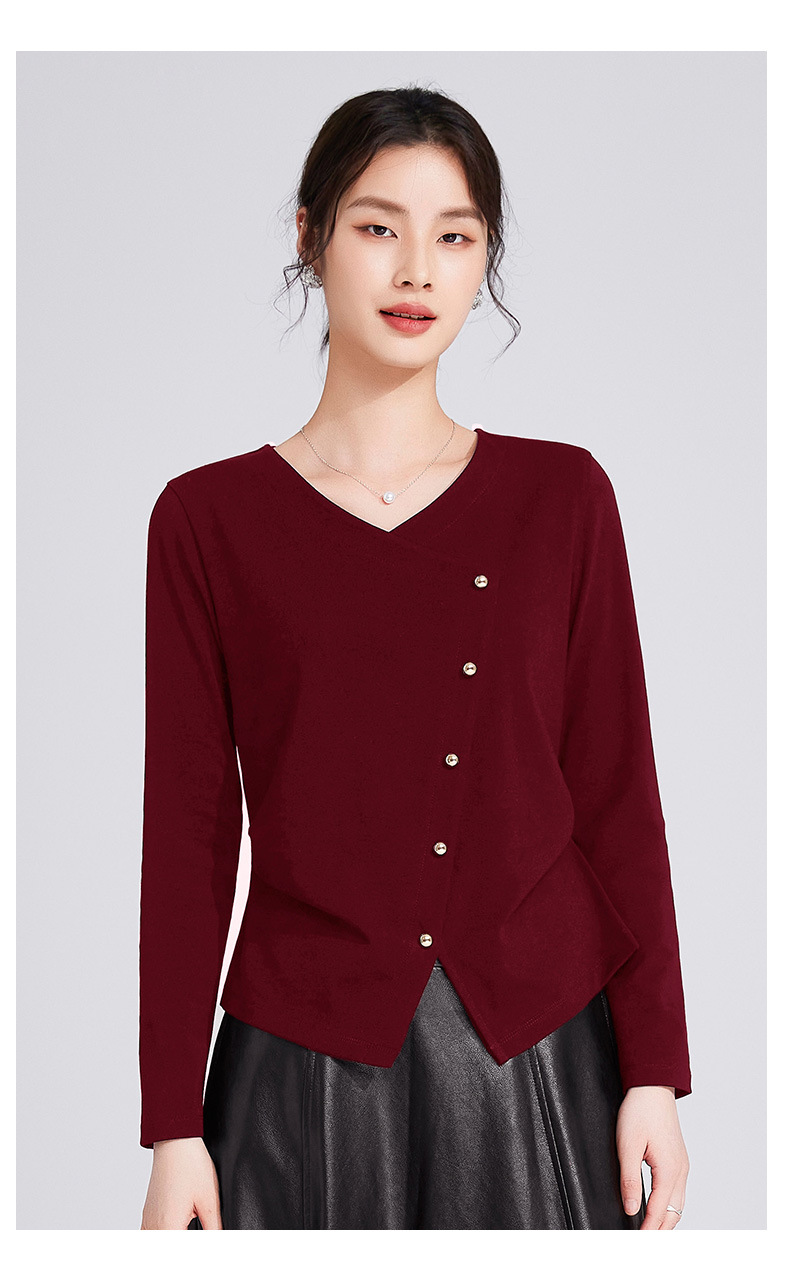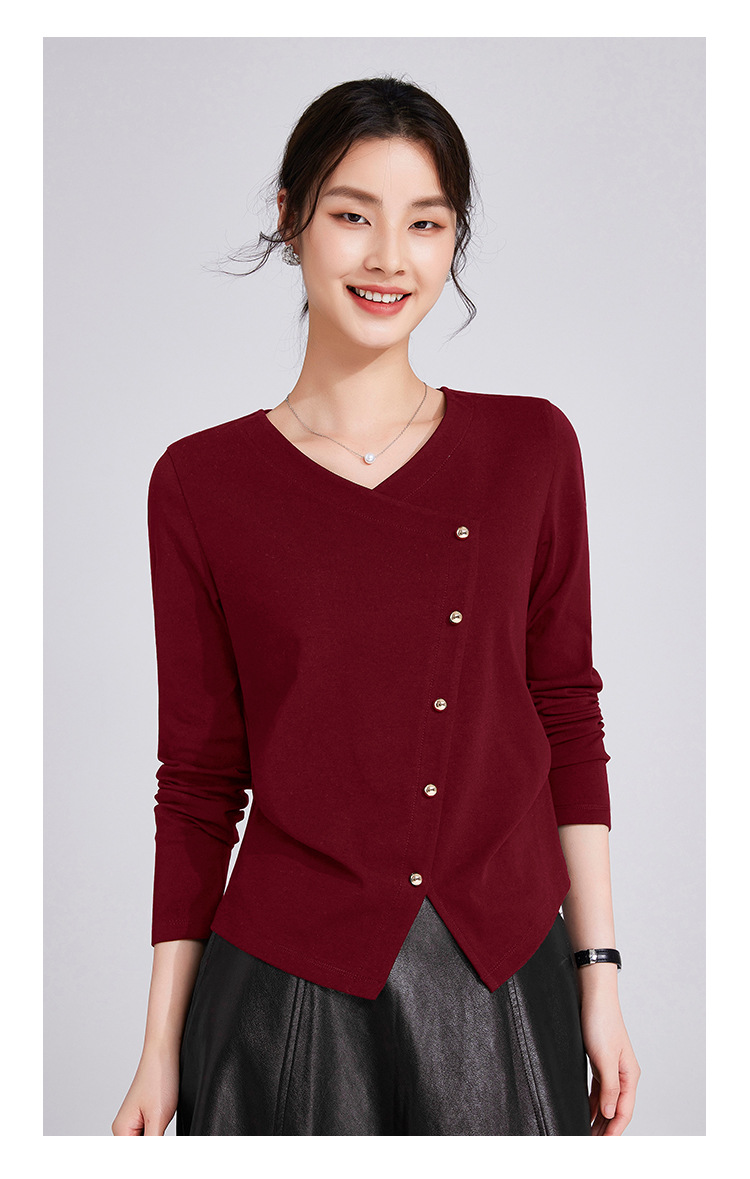 「自j」全新升级【铂金会员119/天猫159/差价40】(11136)洛诗琳新款设计感不规则纽扣上衣2025秋季V领正肩长袖T恤