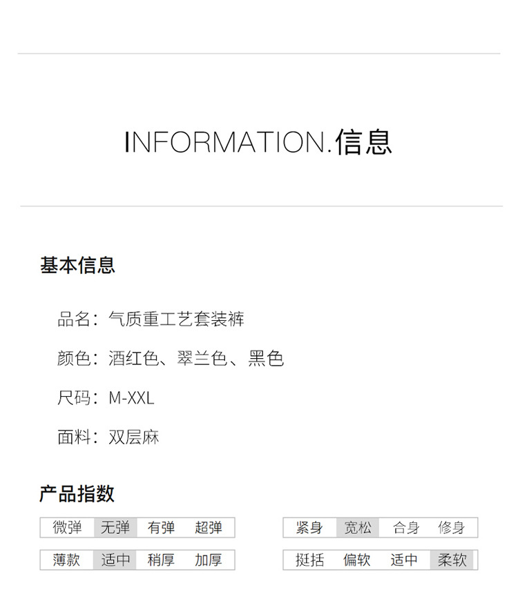 春装收腰显瘦时尚大方气质简约显瘦两件套裤HR-WH25699