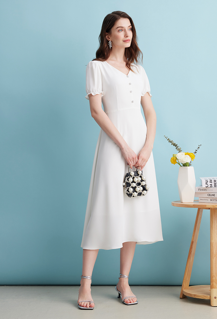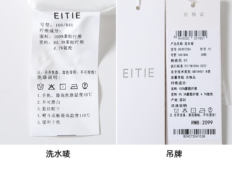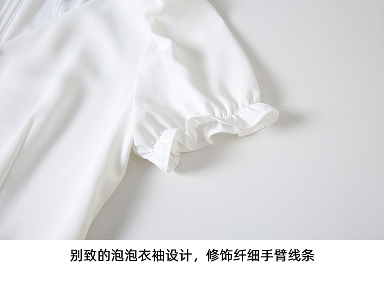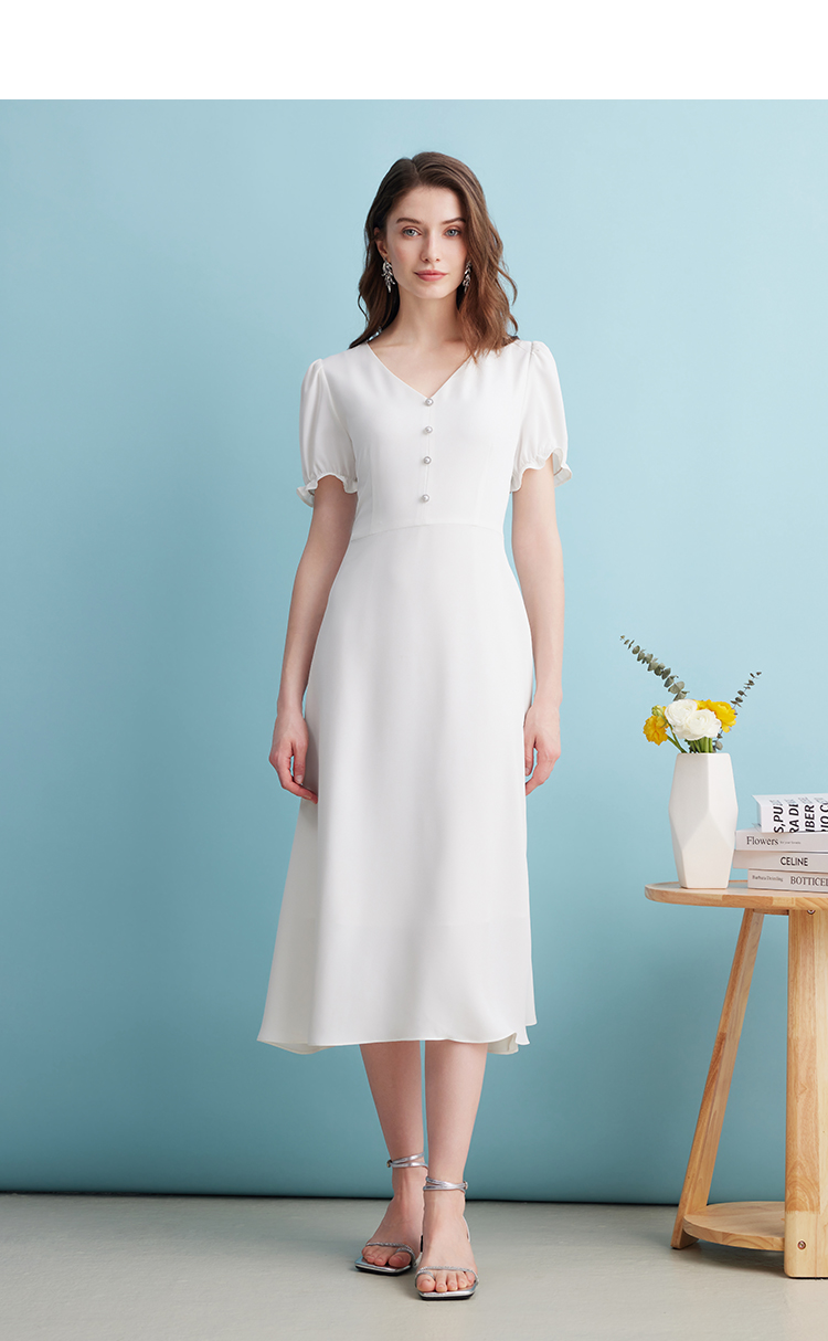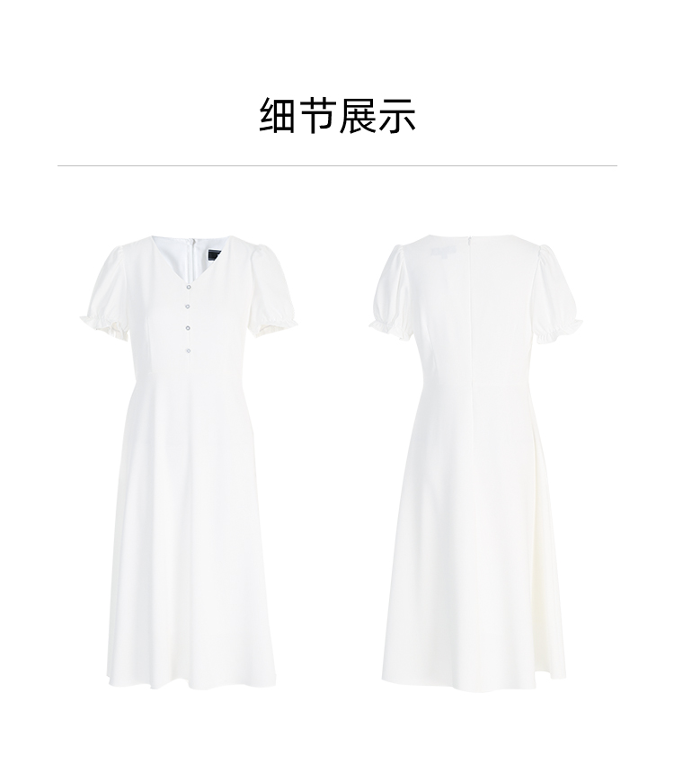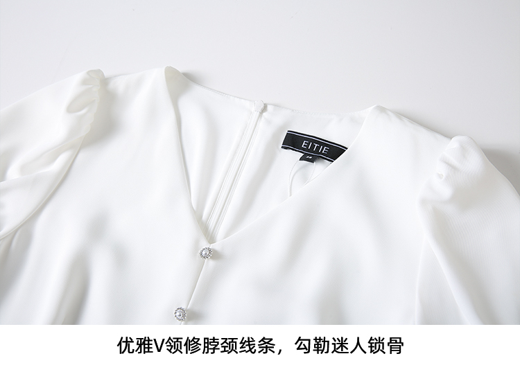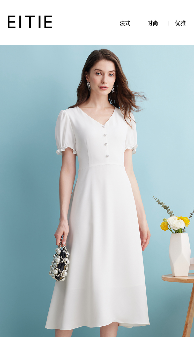 EITIE爱特爱夏季新款文艺风V领收腰白色气质优雅长裙连衣裙B2407354