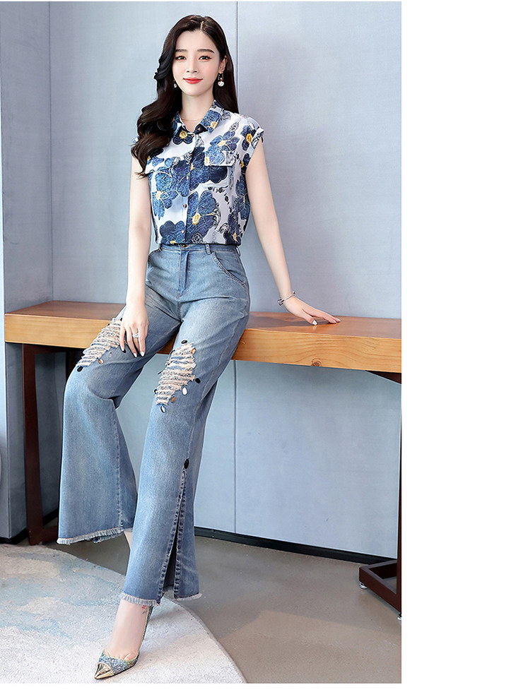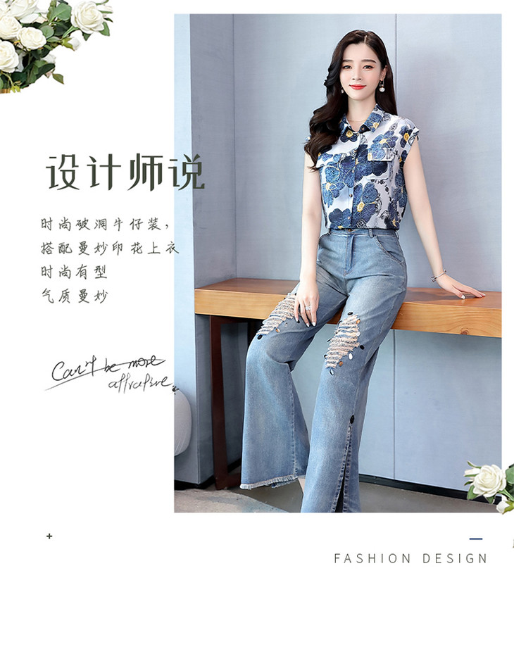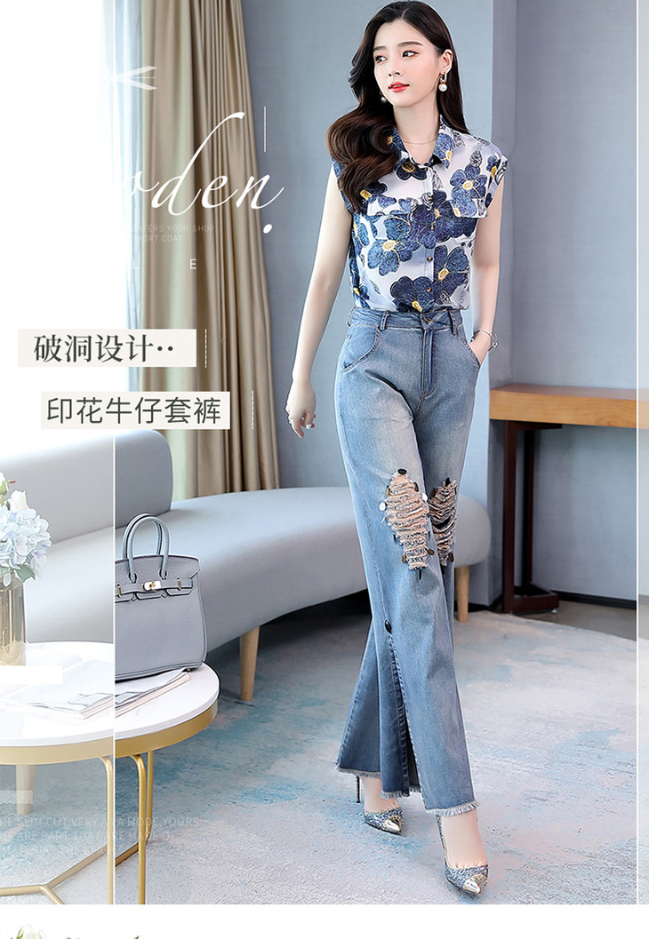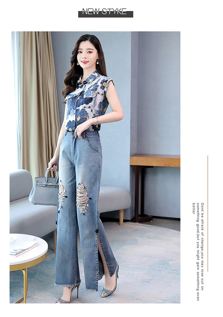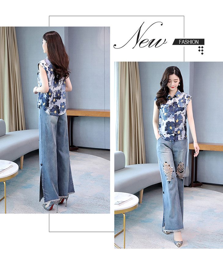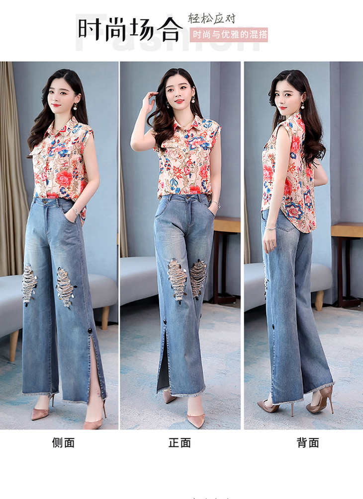 KY-GJC2073时尚洋气显瘦牛仔阔腿裤两件套套装