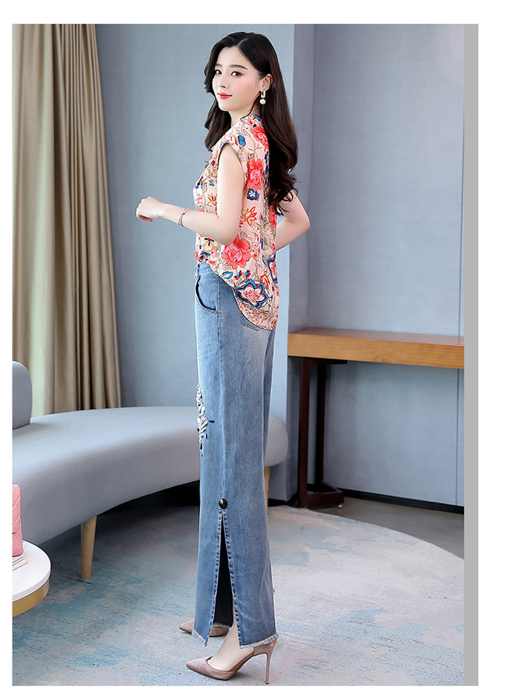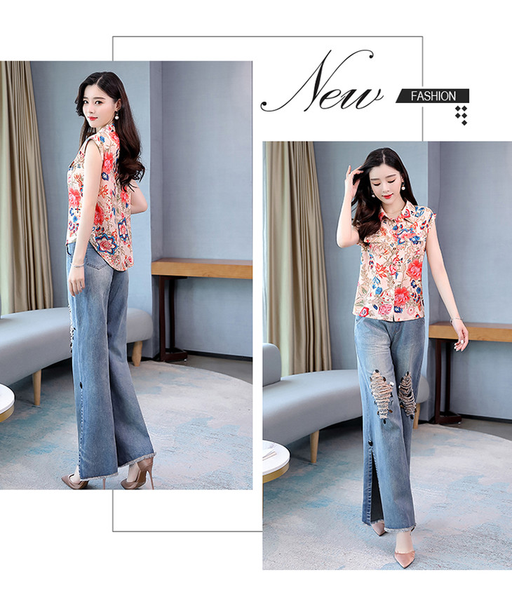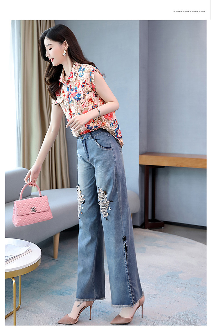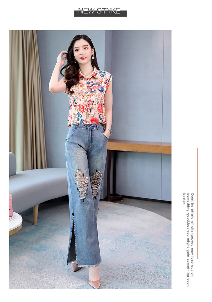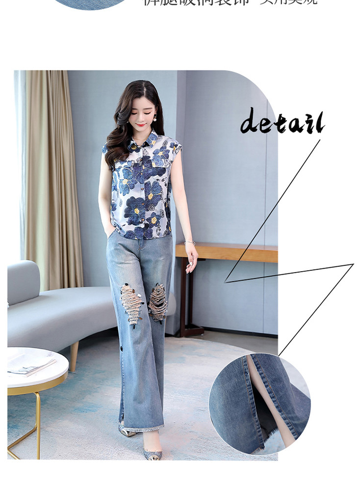 KY-GJC2073时尚洋气显瘦牛仔阔腿裤两件套套装