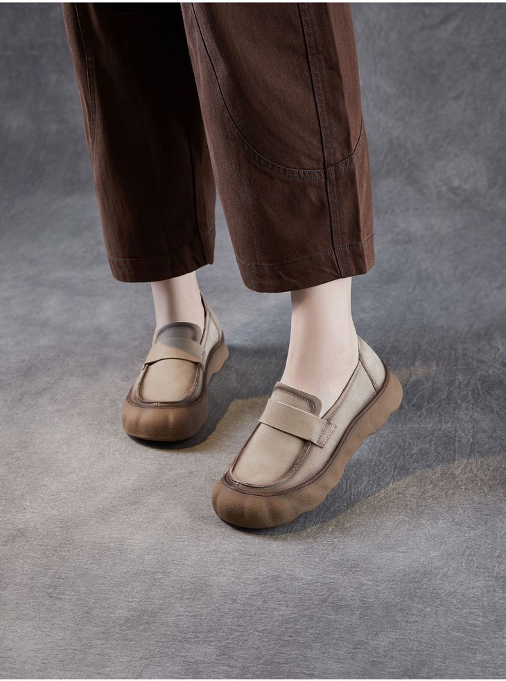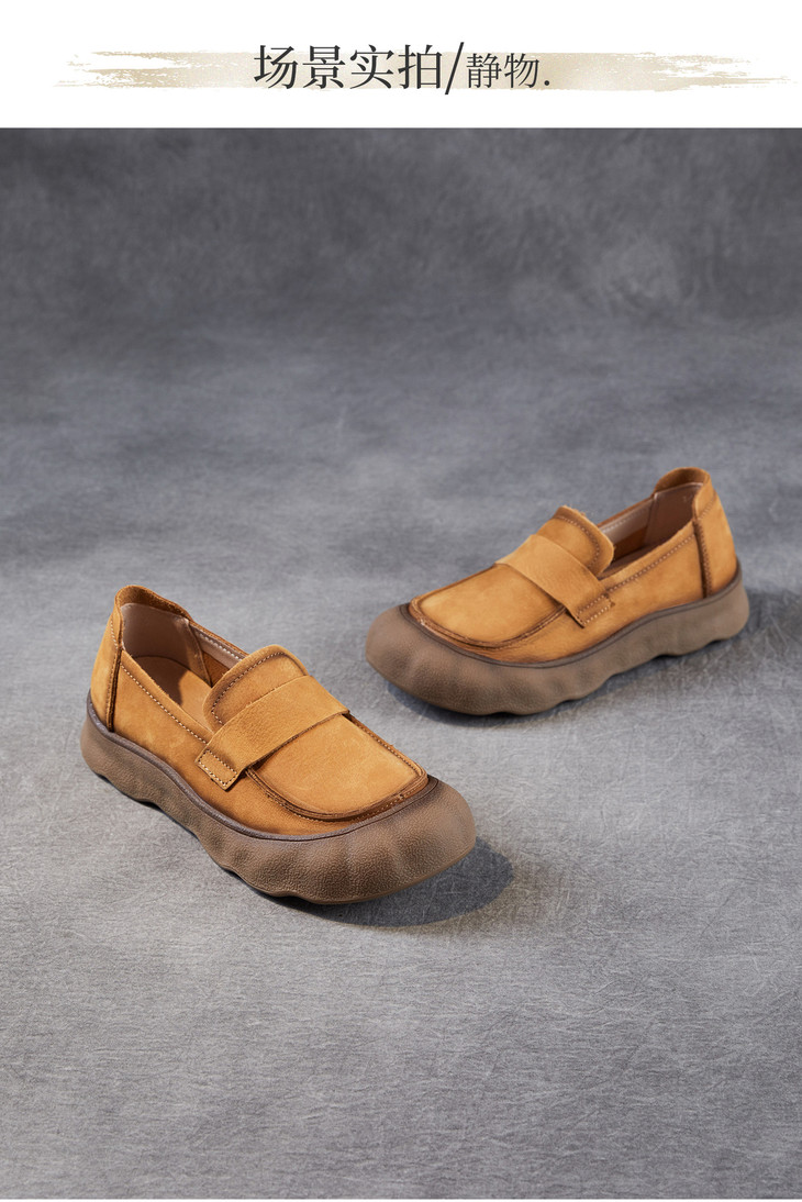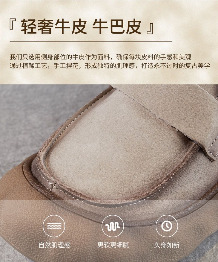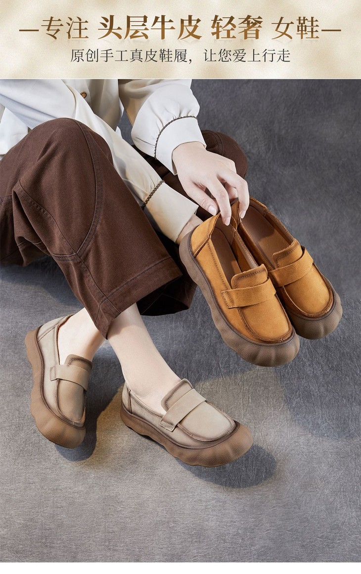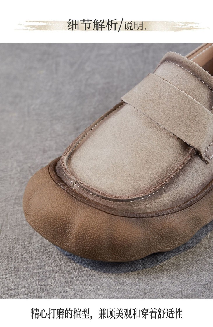 复古休闲百搭头层牛皮,真皮软底手工单鞋一脚蹬乐福鞋ZM258566