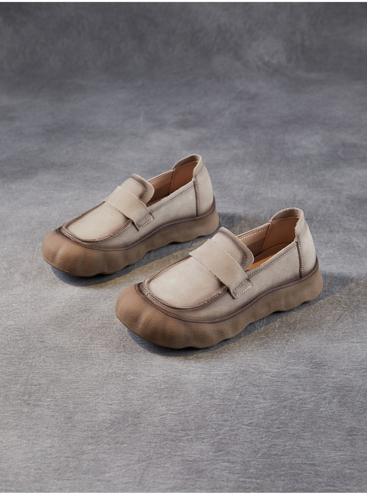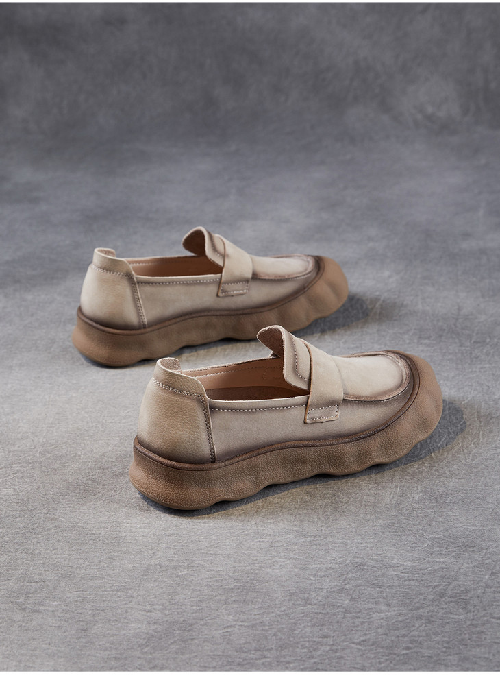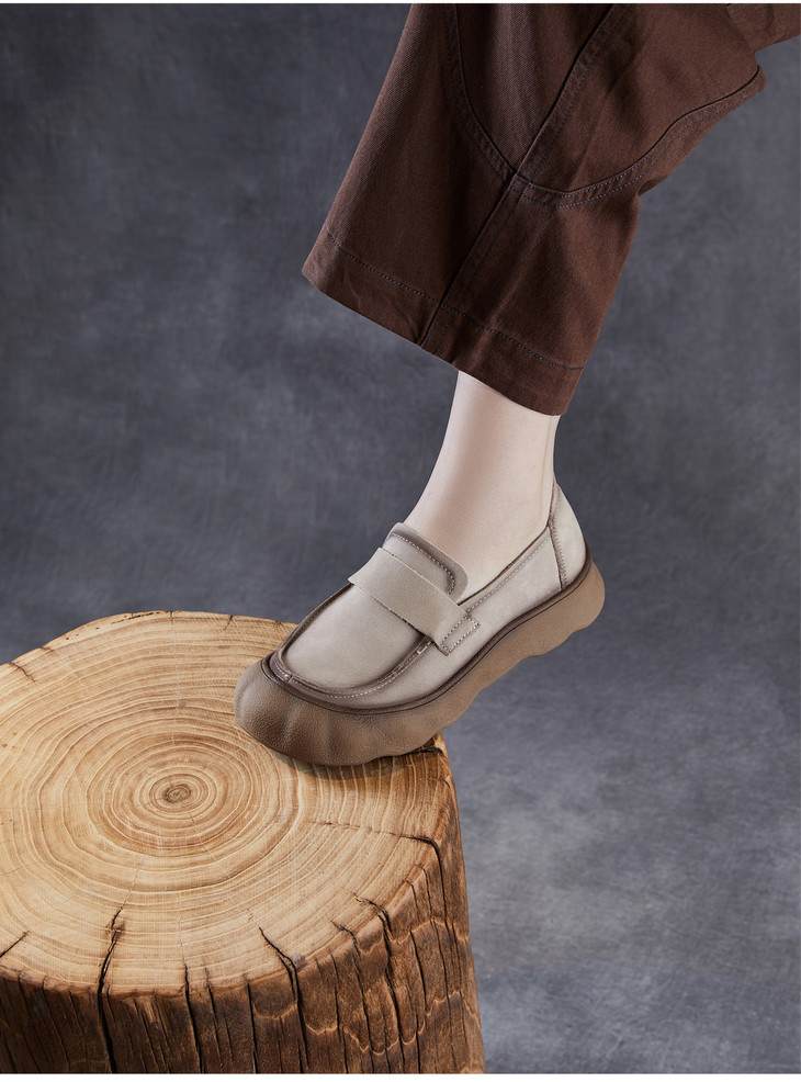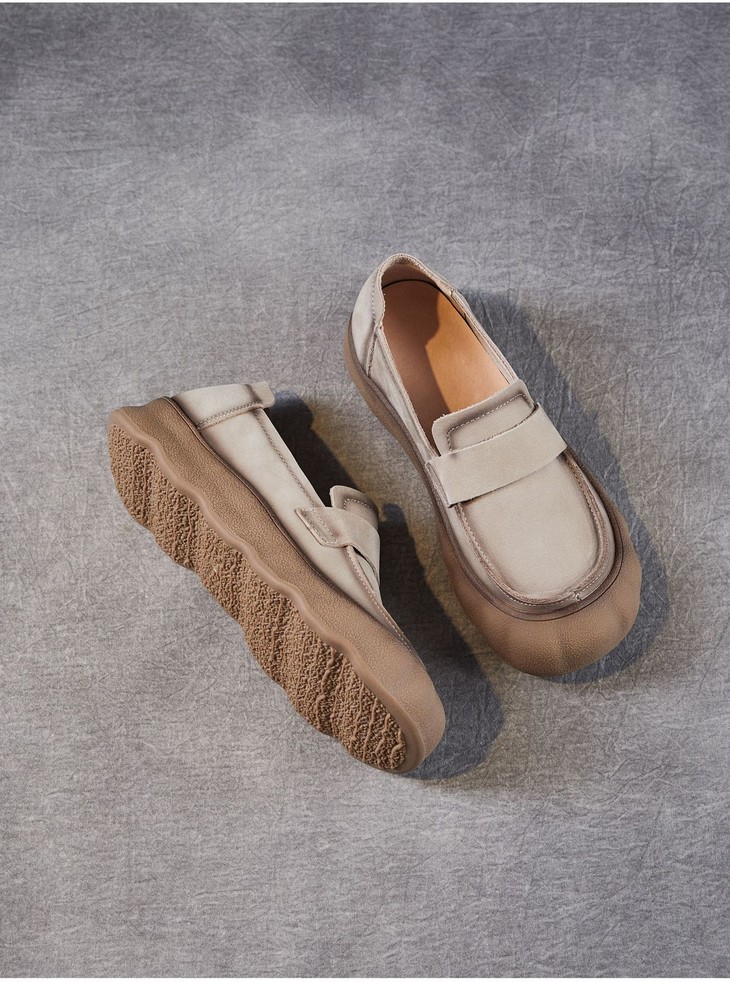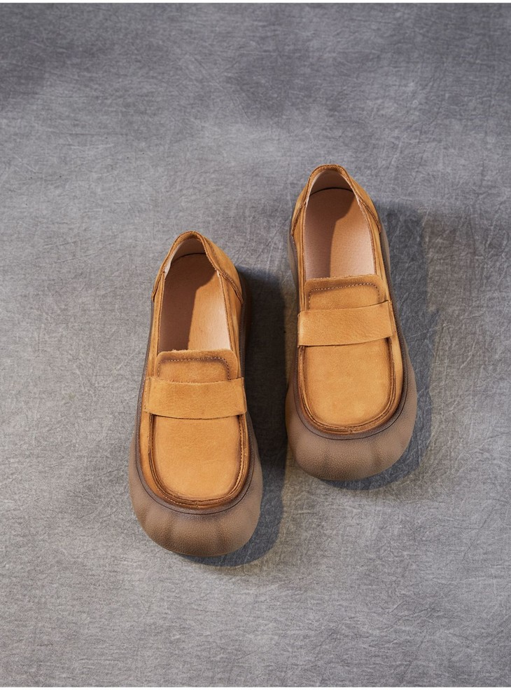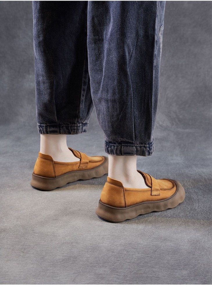 复古休闲百搭头层牛皮,真皮软底手工单鞋一脚蹬乐福鞋ZM258566