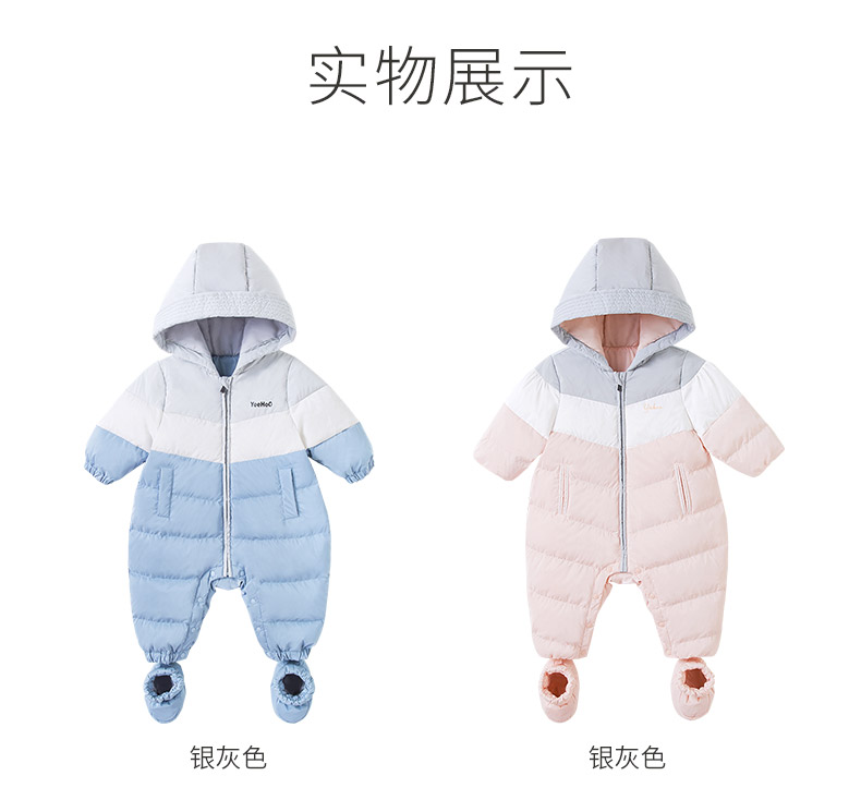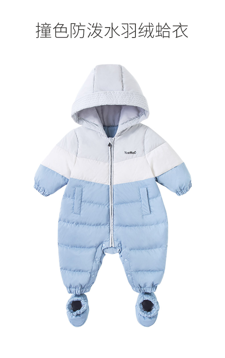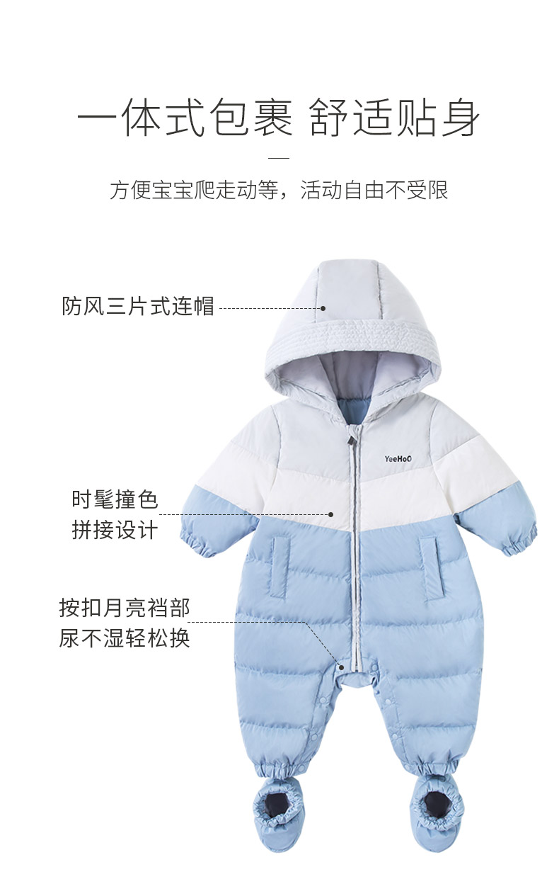 英氏婴儿衣服宝宝哈衣冬季款羽绒哈衣加厚保暖连帽爬服超韧绒