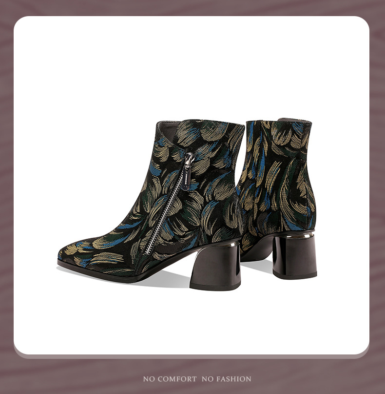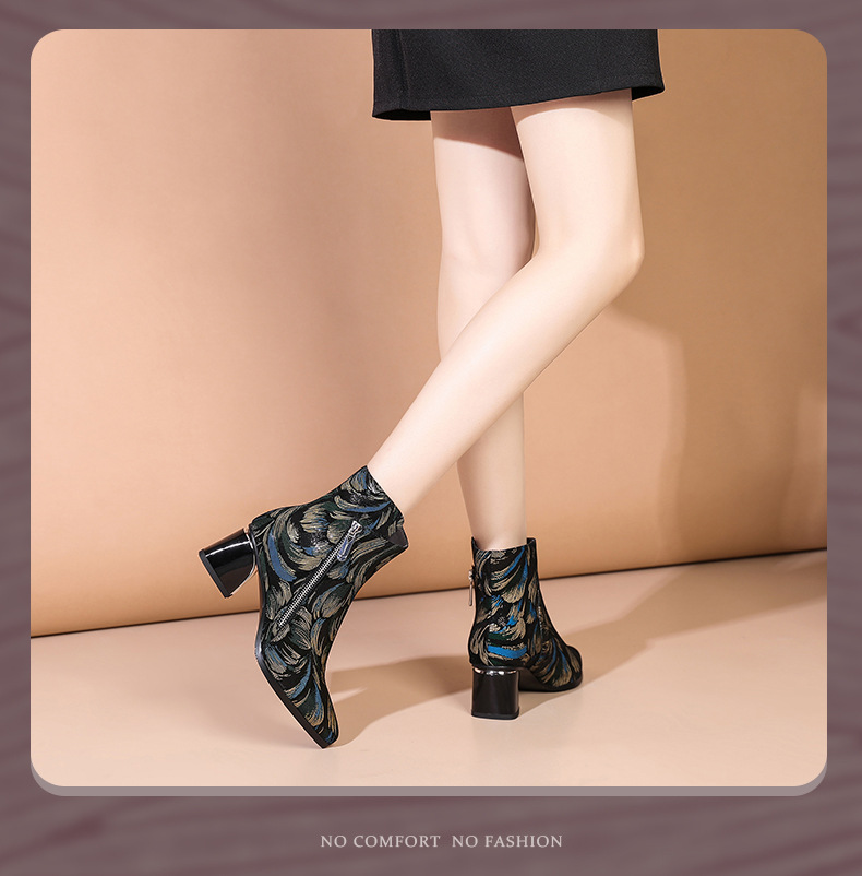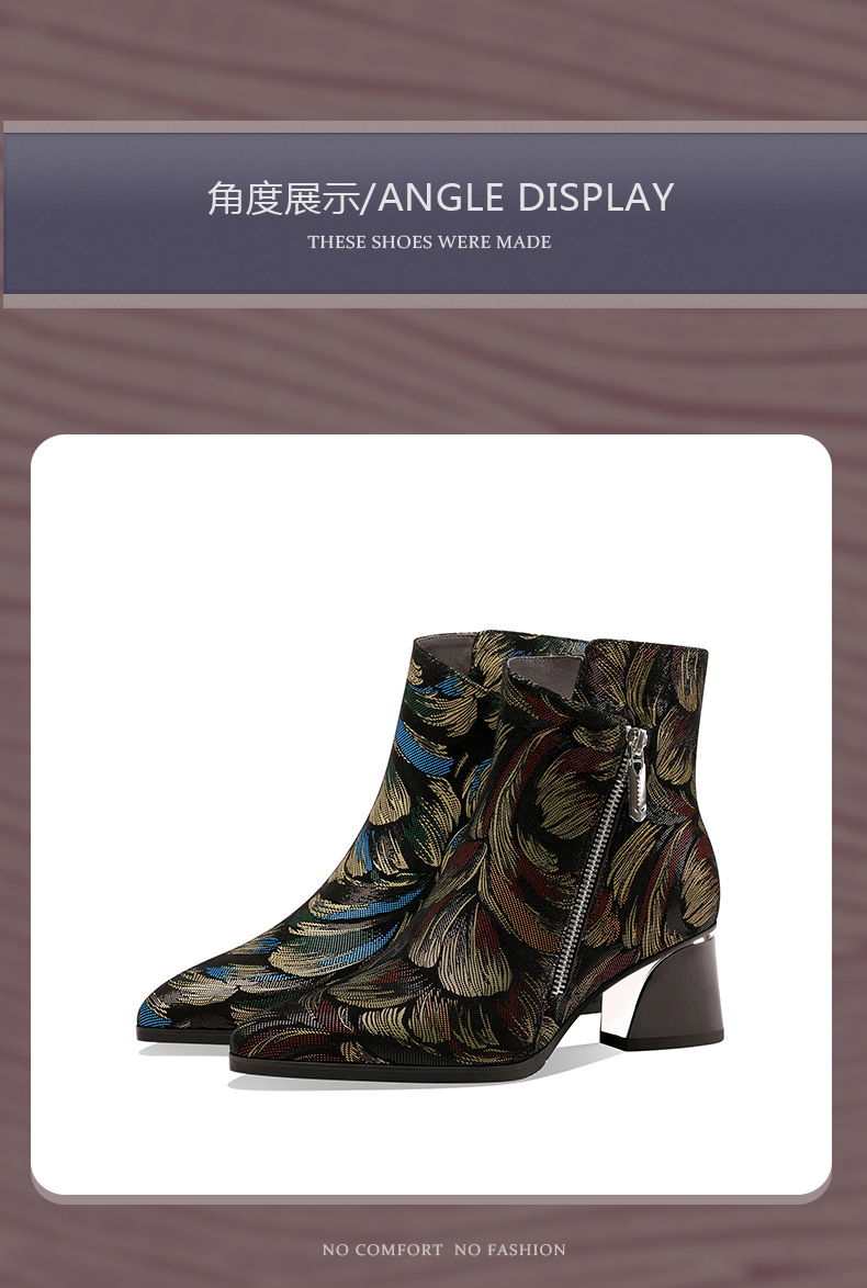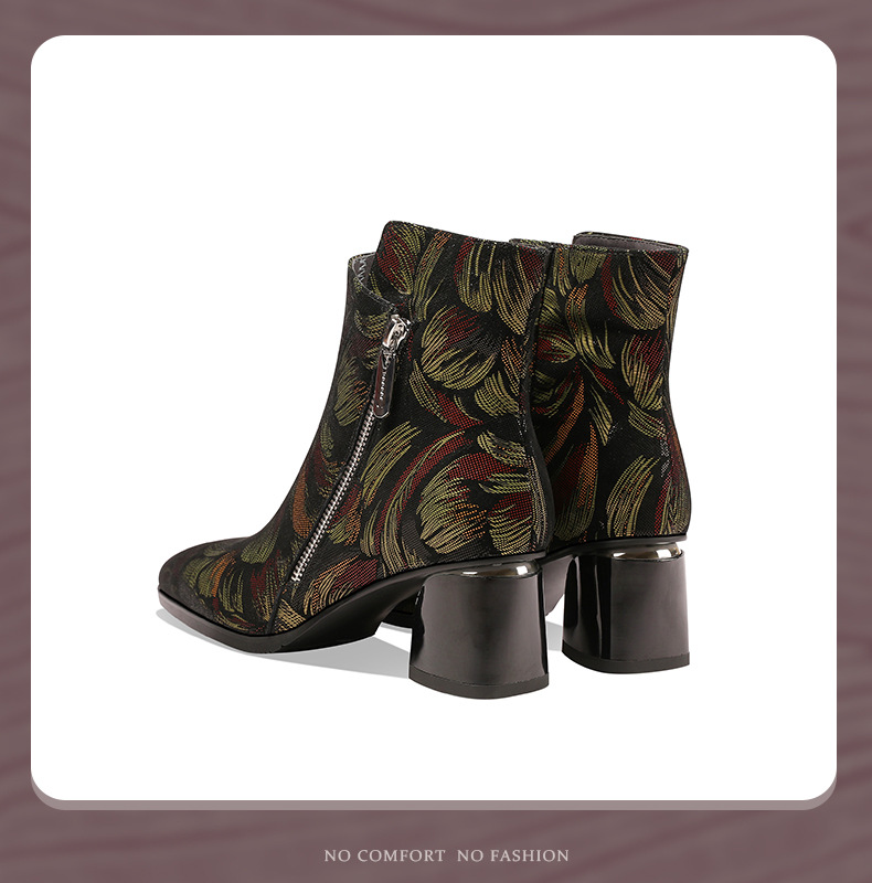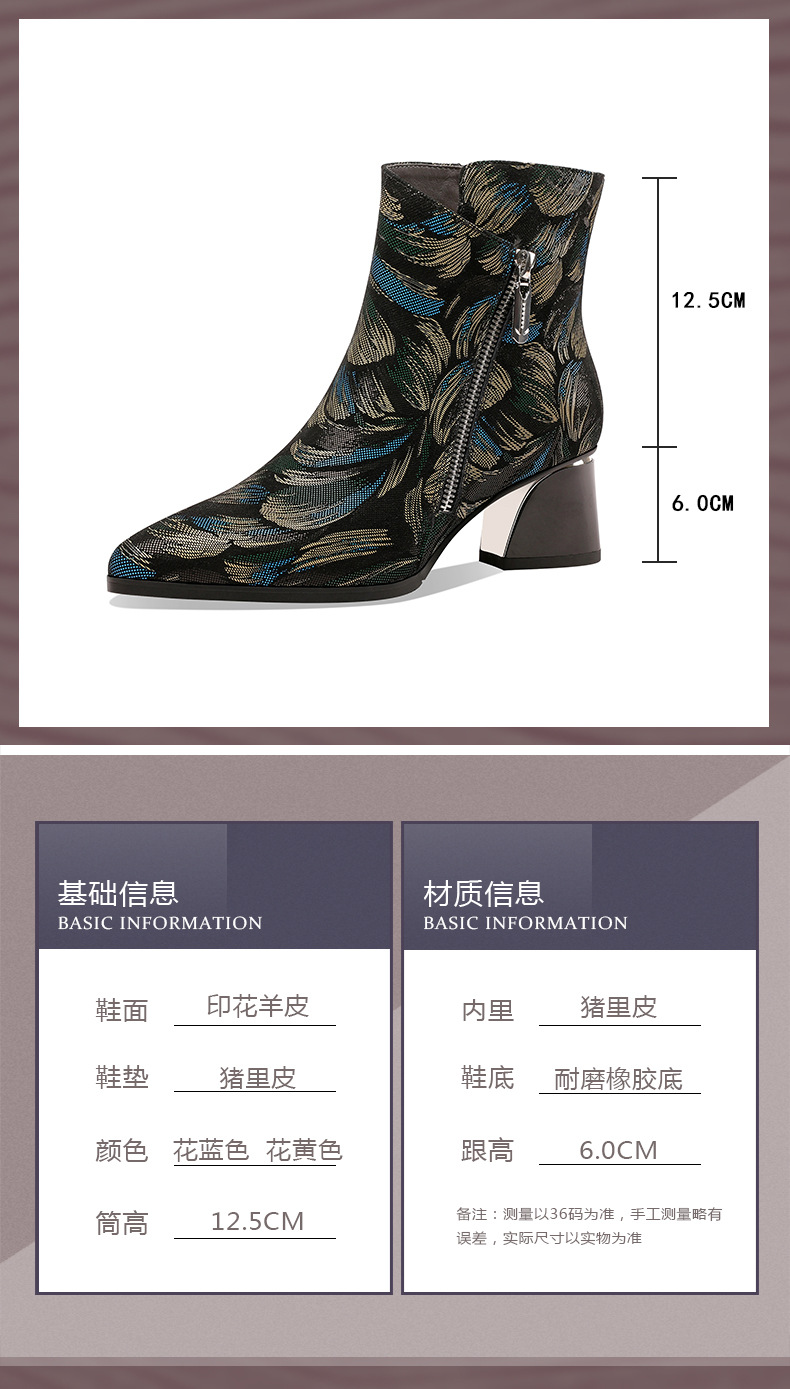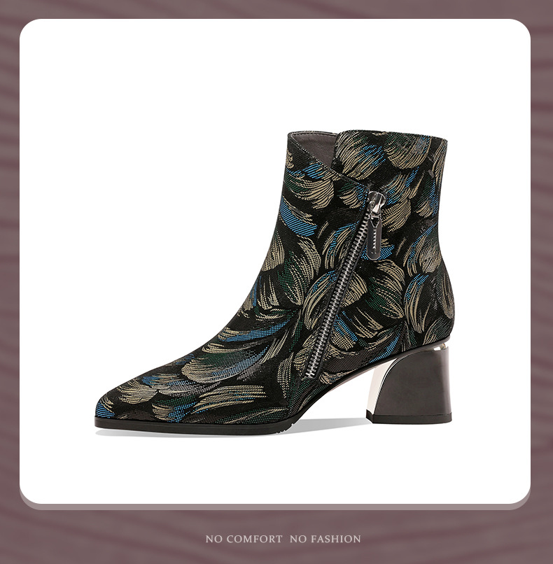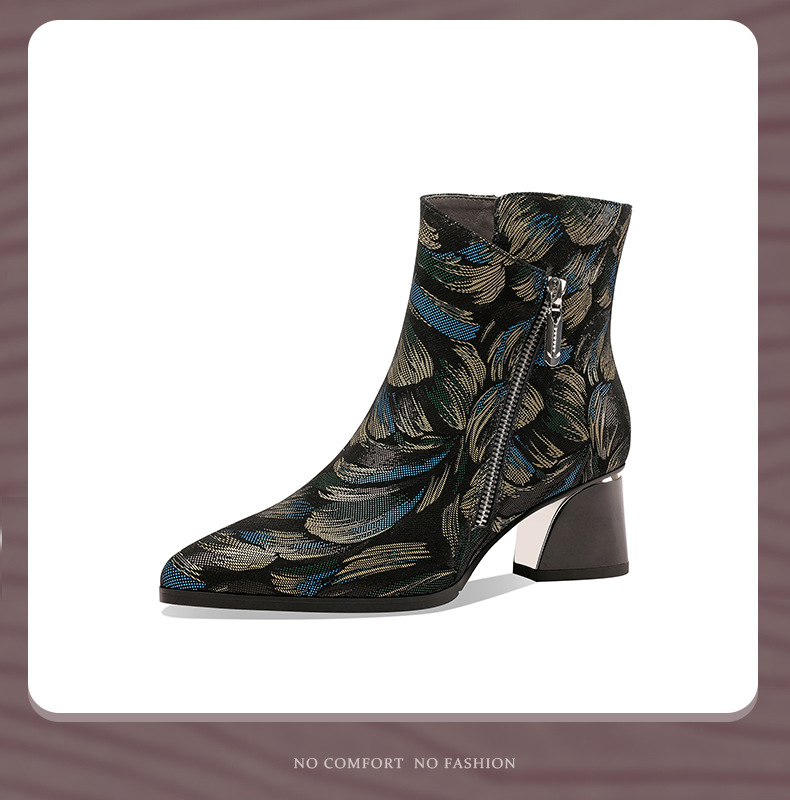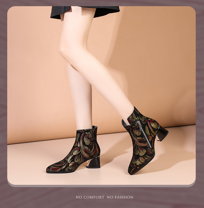 2021秋冬新款靴子女尖头压花羊皮花朵短靴细高跟女靴侧拉链踝靴 OLD-W161ddd