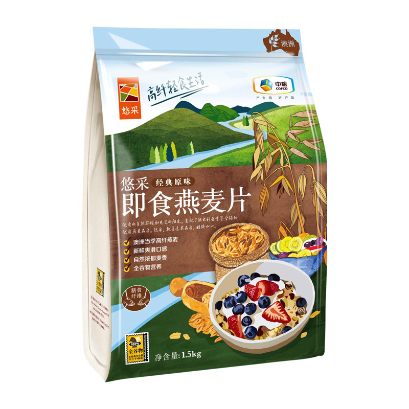 ①悠采经典原味即食燕麦片袋装1.5kg