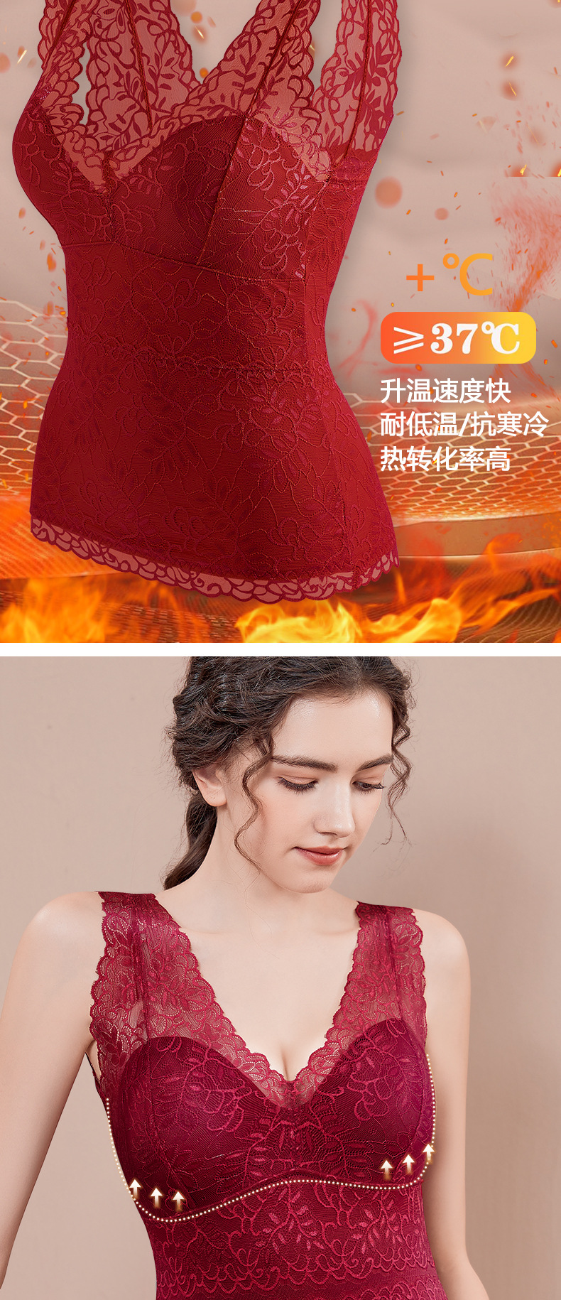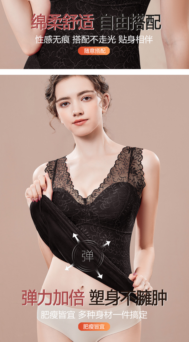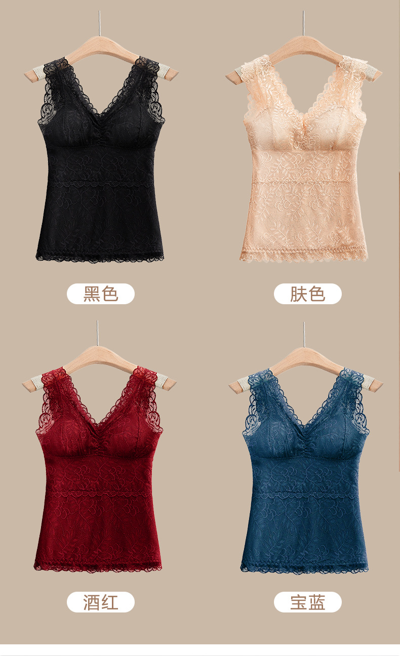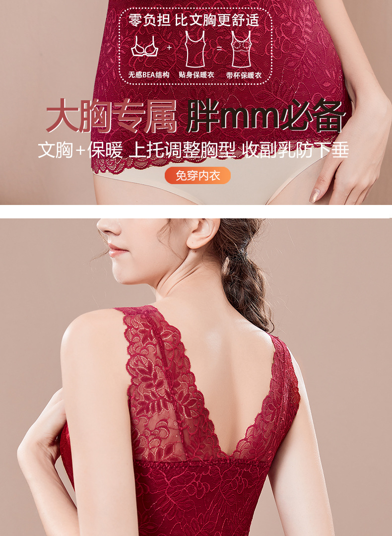 福利款~雀说 德绒V领保暖背心带胸垫自发热蕾丝加绒保暖内衣BN68