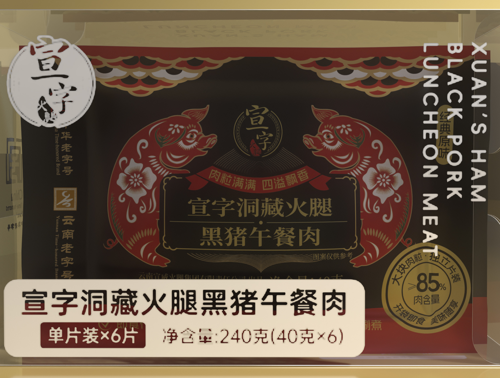 黑猪午餐肉 (开袋即食)240g(40g*6)