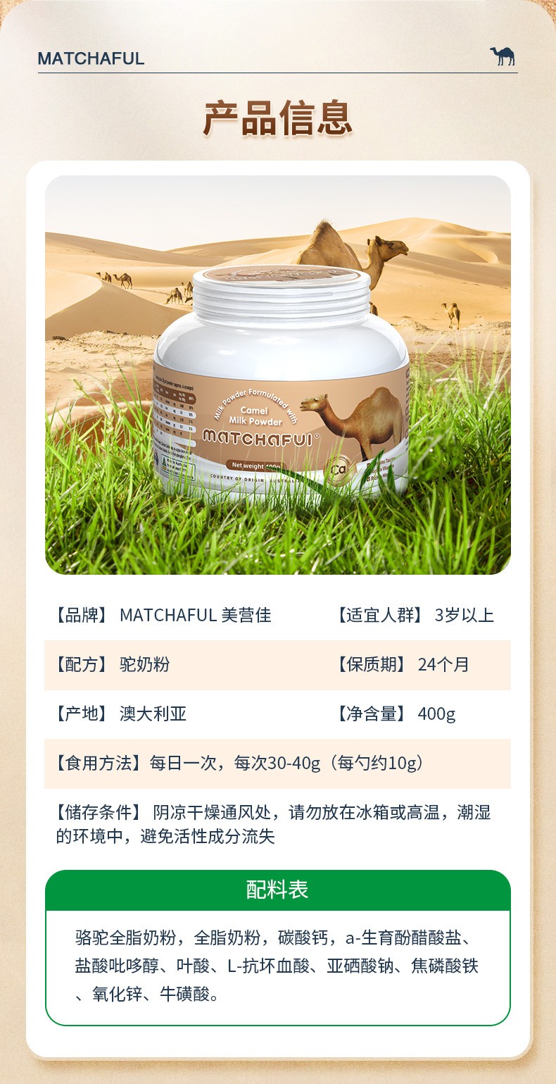 【跨境】澳洲MATCHAFUL 美营佳大金罐儿童成人中老年高钙骆驼奶粉 400g