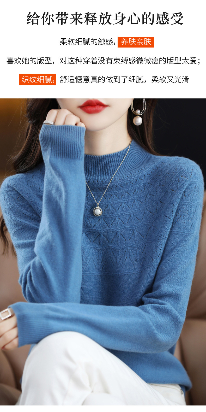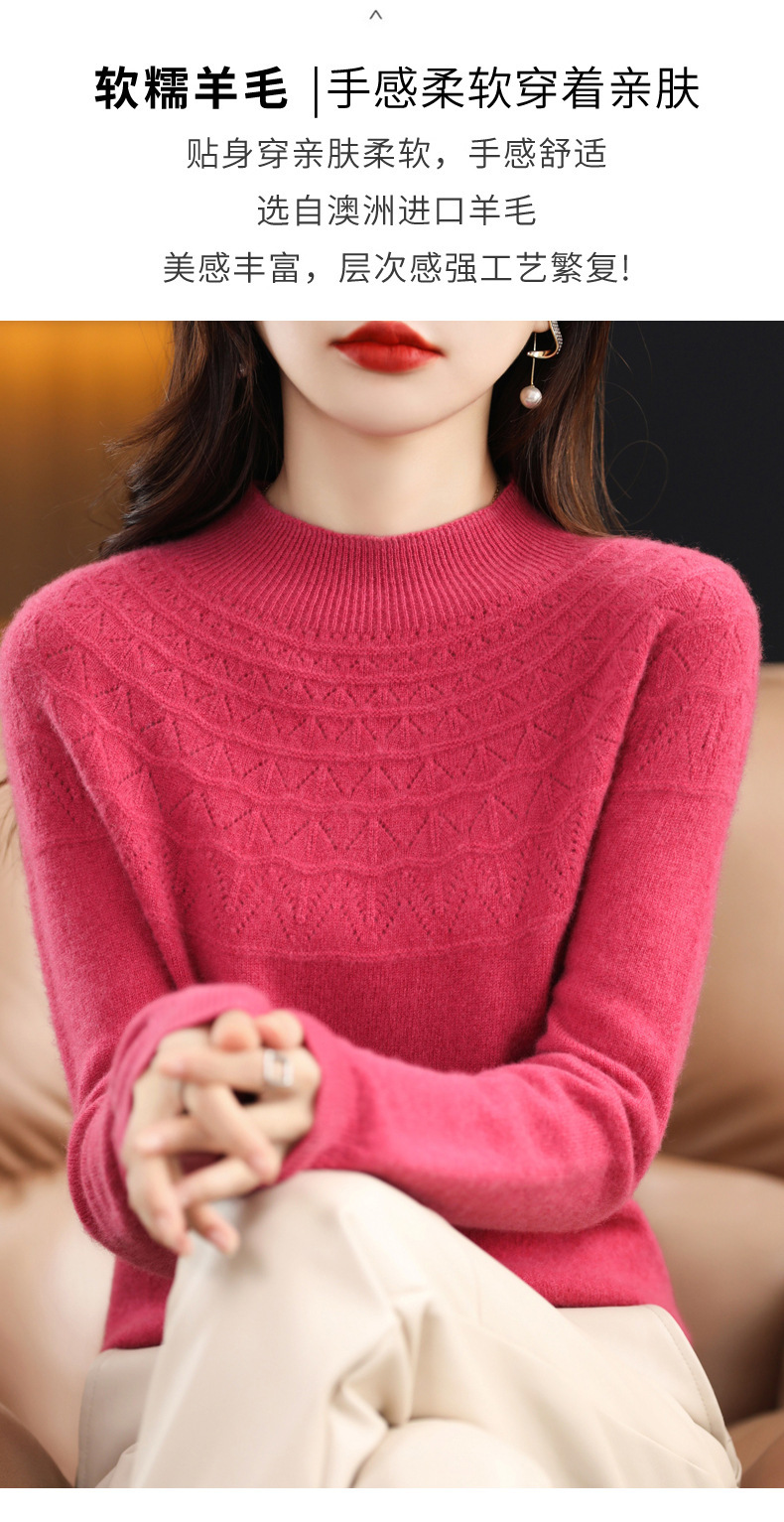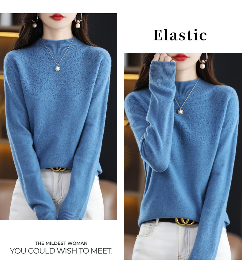 秋冬一线成衣半高领镂空宽松显瘦长袖打底羊毛毛衣QH-D003