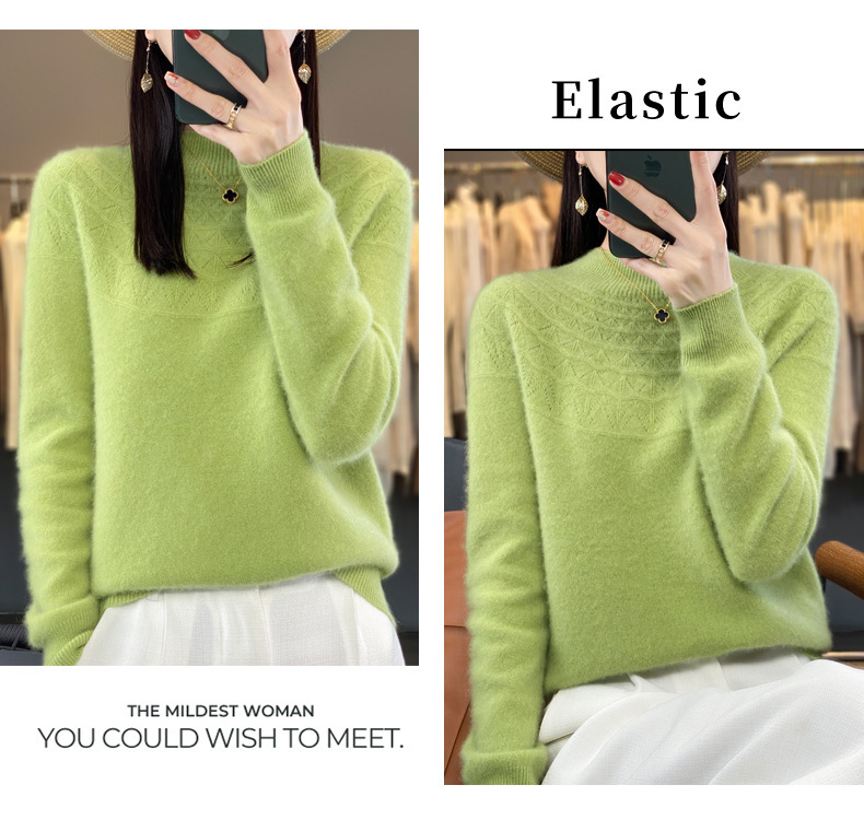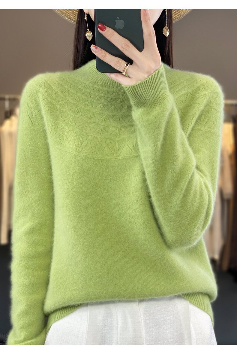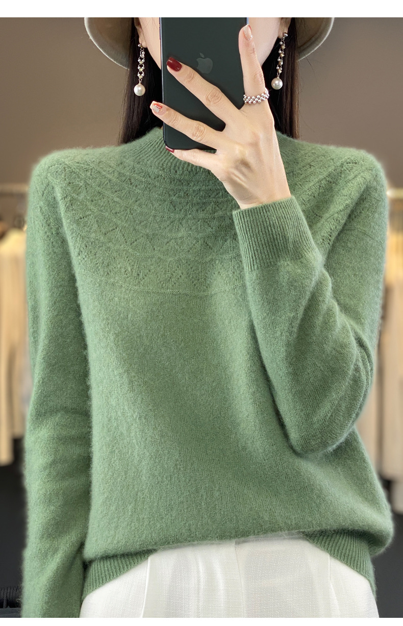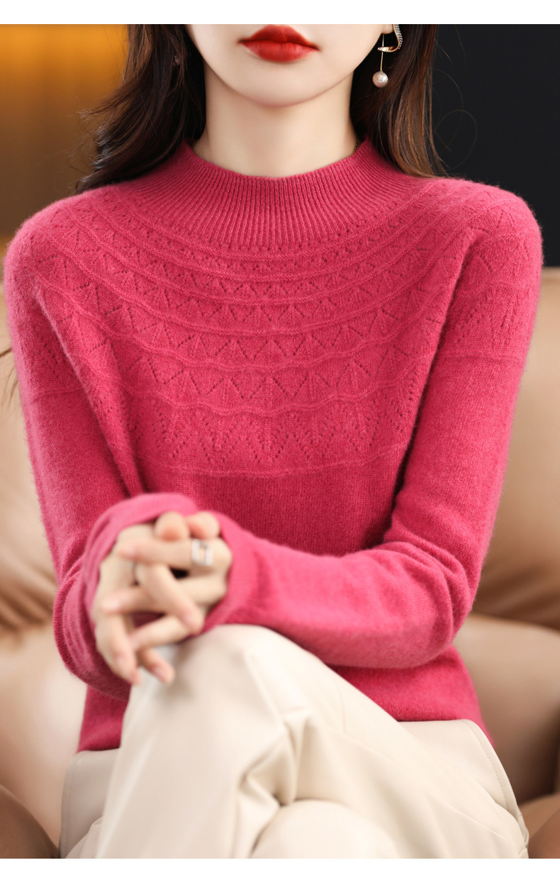 秋冬一线成衣半高领镂空宽松显瘦长袖打底羊毛毛衣QH-D003