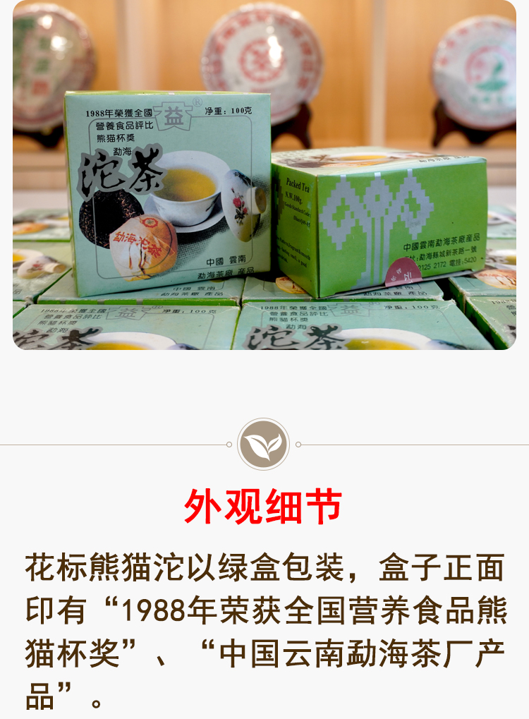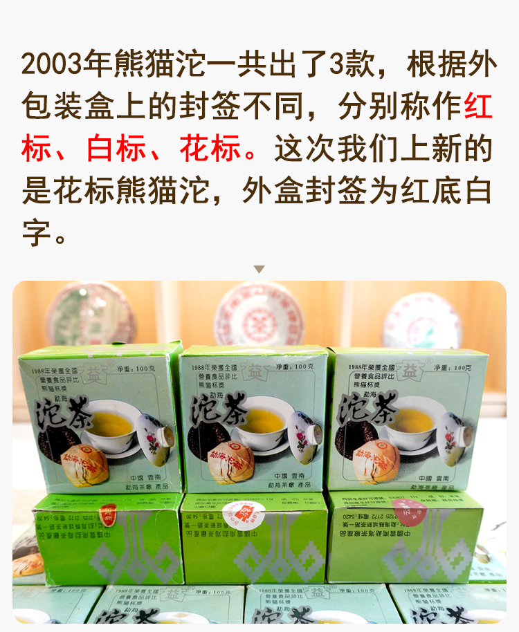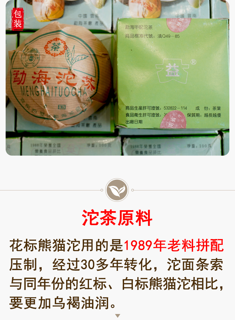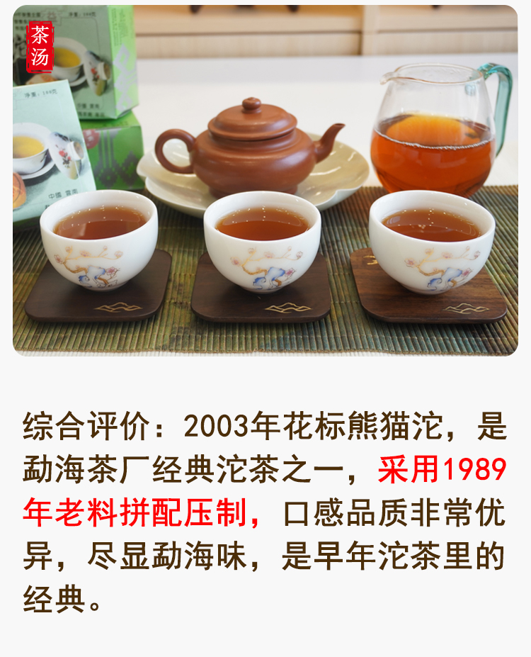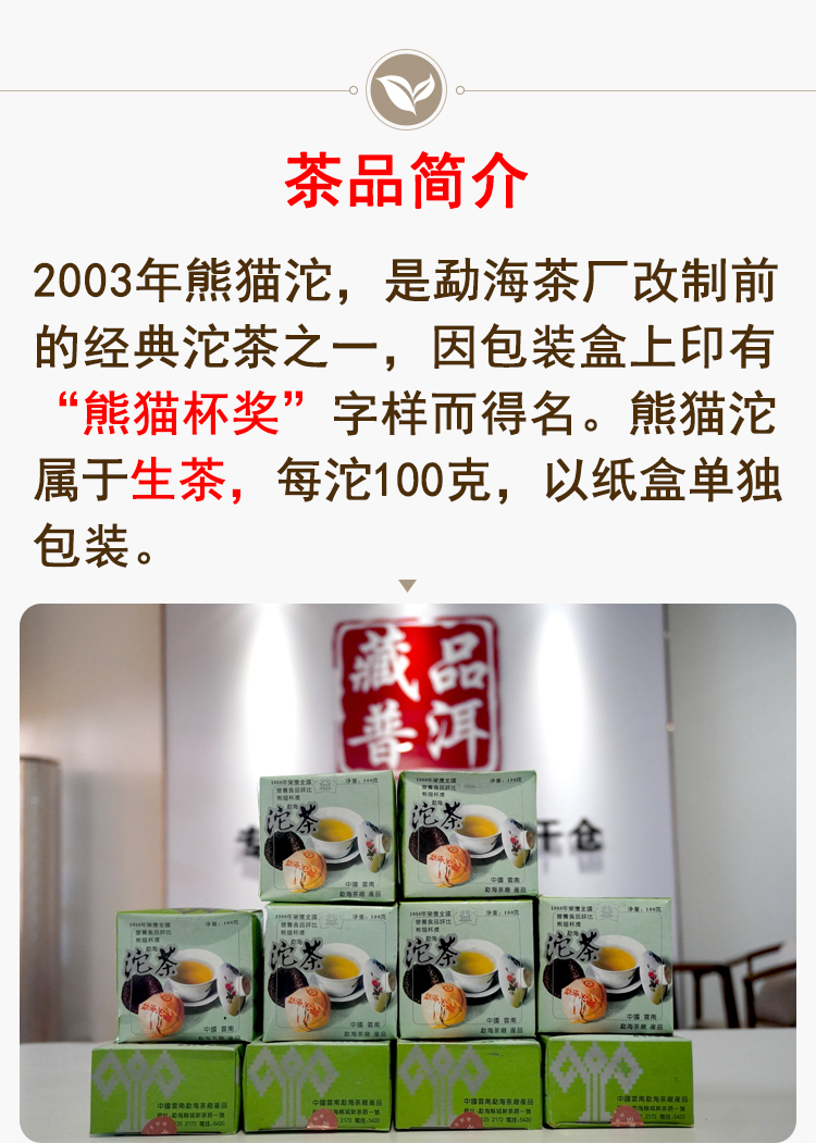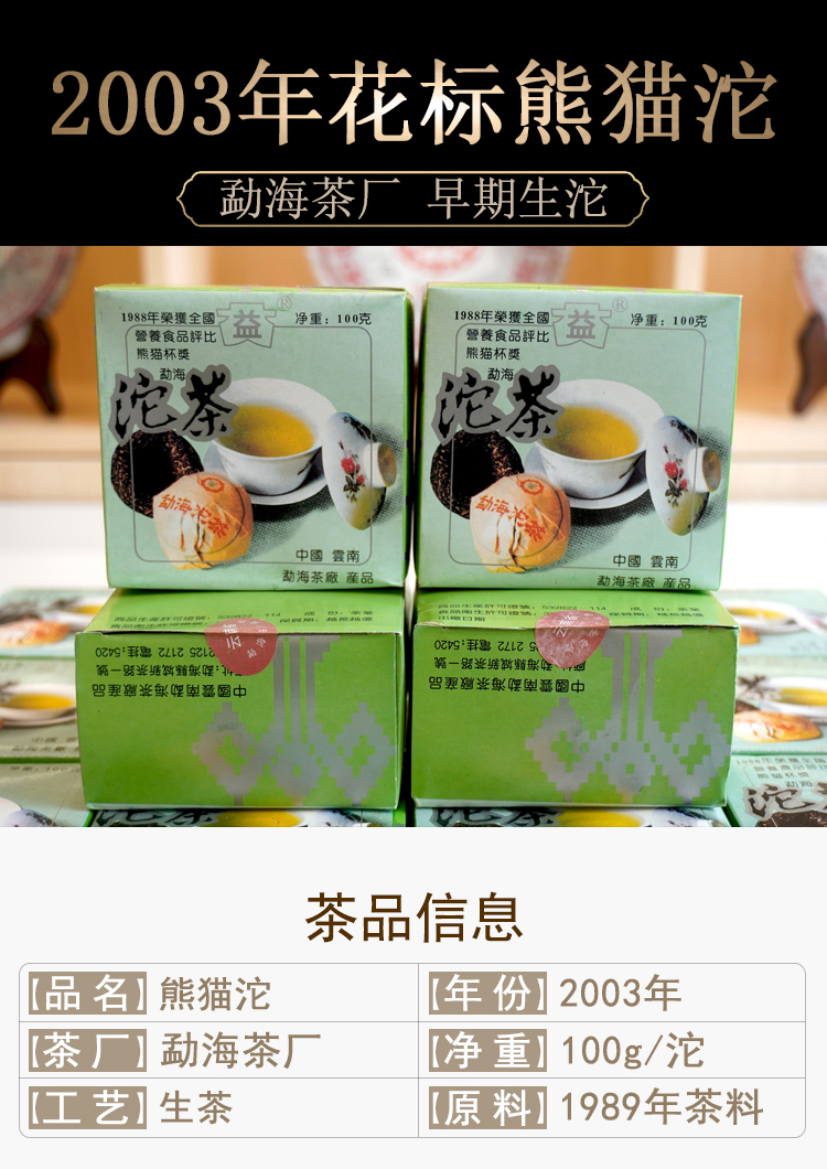 2003年老勐海茶厂熊猫沱普洱老生茶 花标批次也叫花沱 钢印1989年原料日期 1盒100克 干仓真品标价为一盒的价格