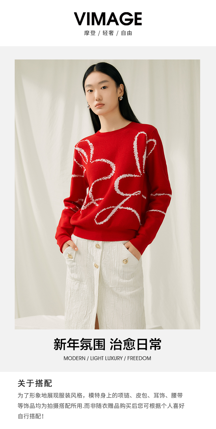 VIMAGE纬漫纪春季新款显瘦舒适套头针织衫V1901502
