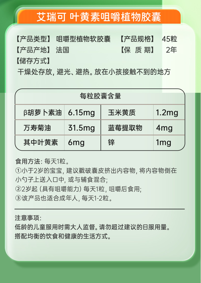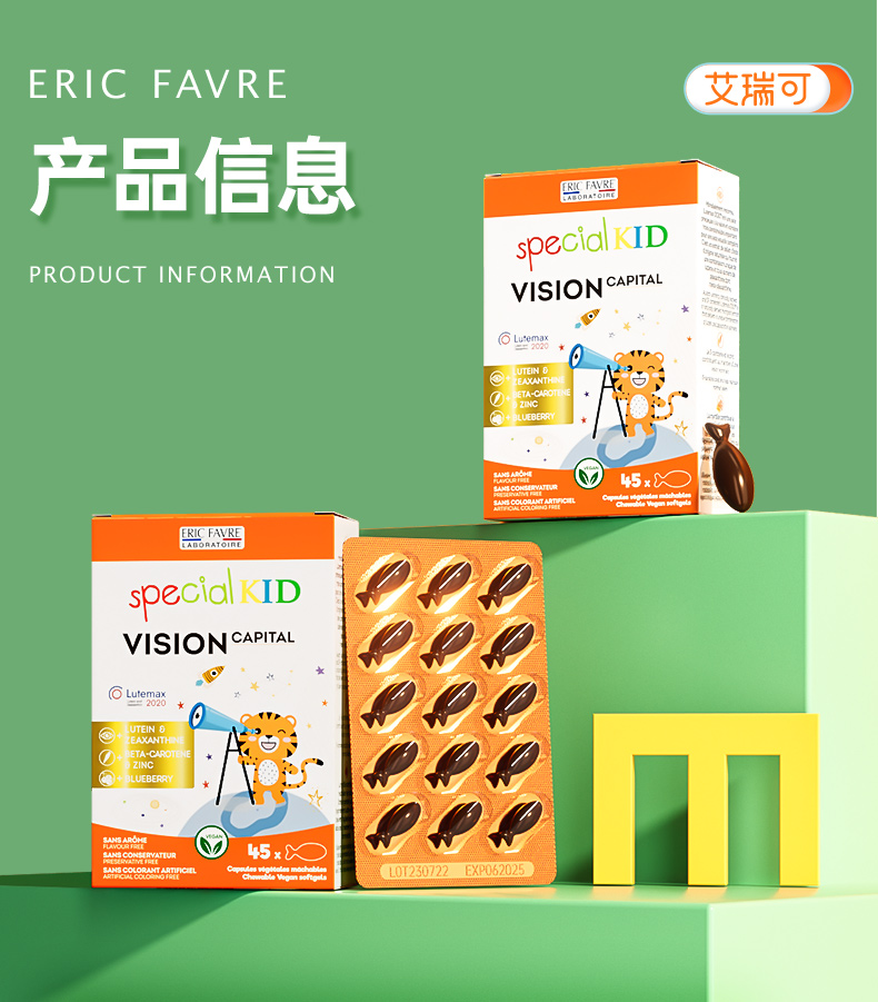 【跨境】法国艾瑞可ERIC FAVRE儿童叶黄素45粒/盒