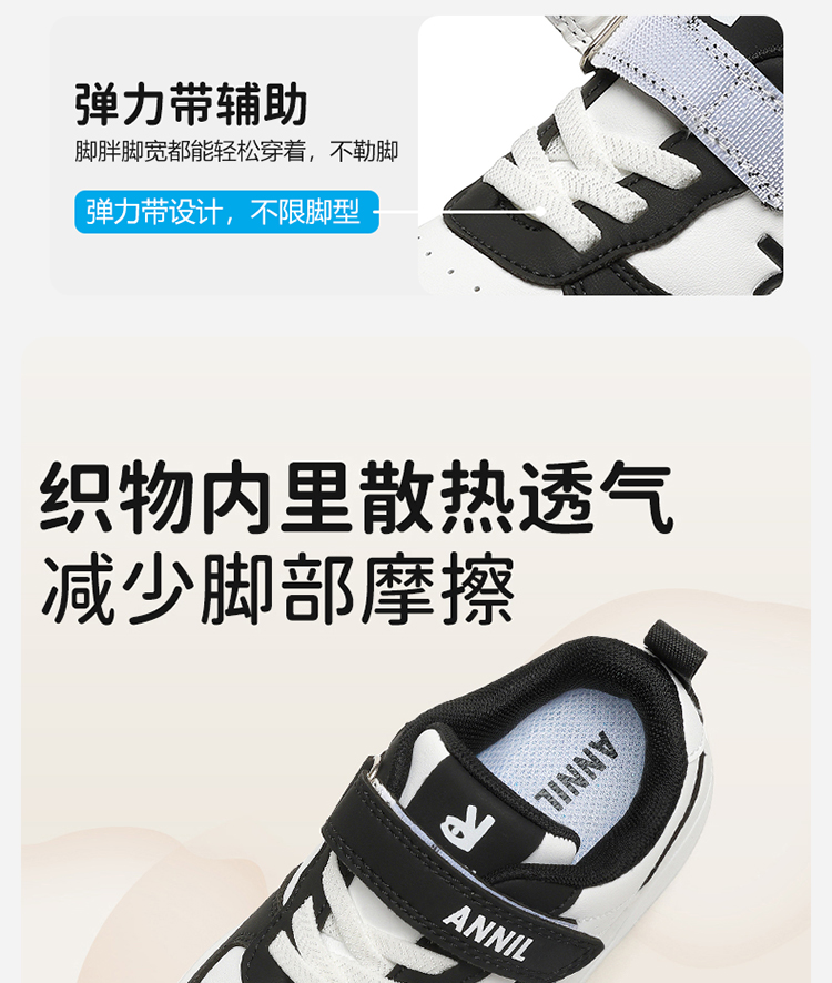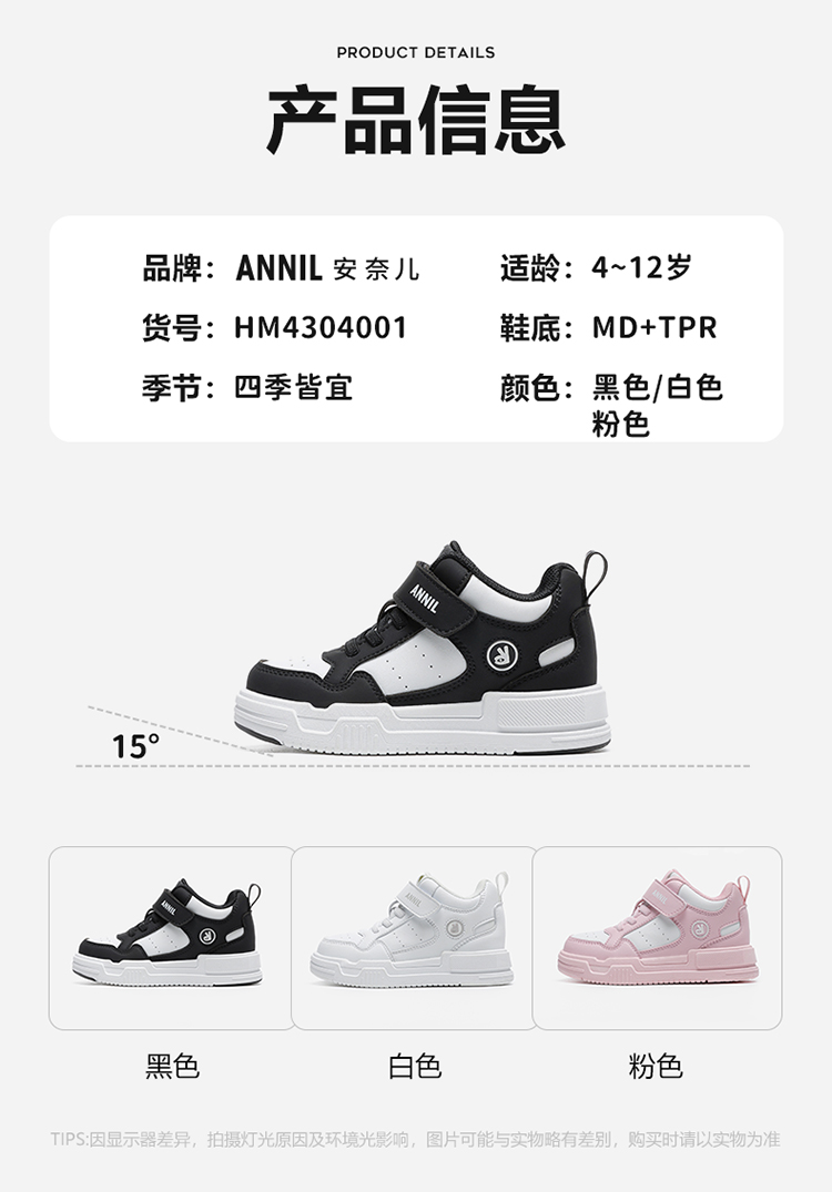 ANNIL/安奈儿童鞋2024秋季新款儿童轻便舒适小白鞋男女童运动板鞋HM4304002