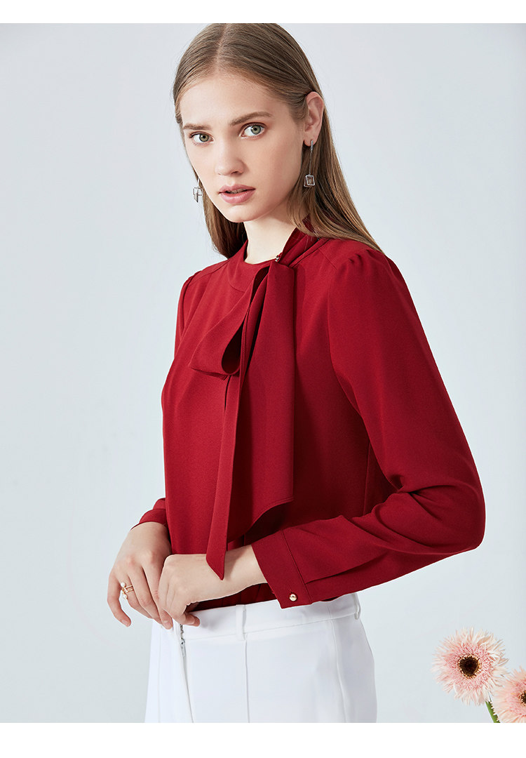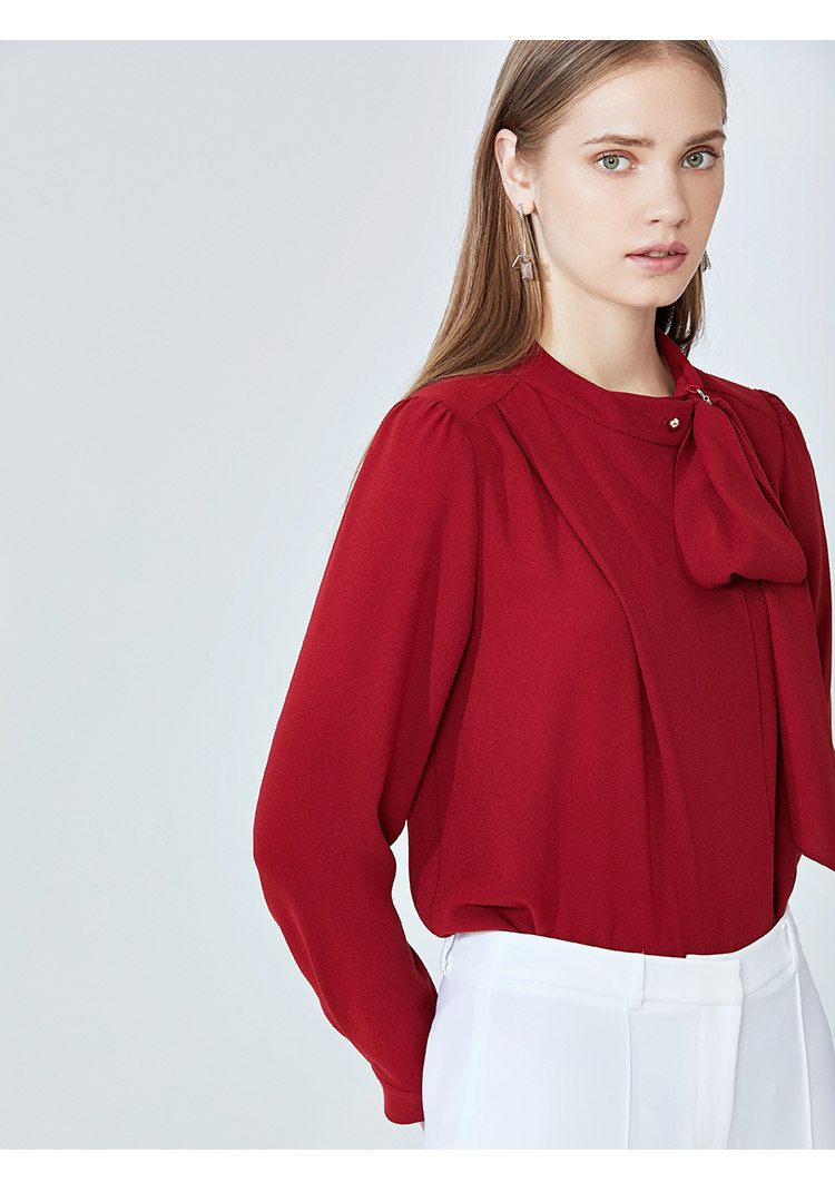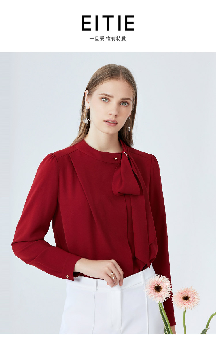 EITIE爱特爱时尚通勤简约舒适显瘦系带衬衫女上衣C2009506