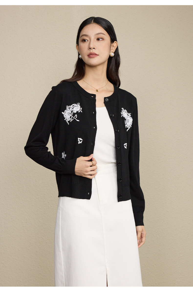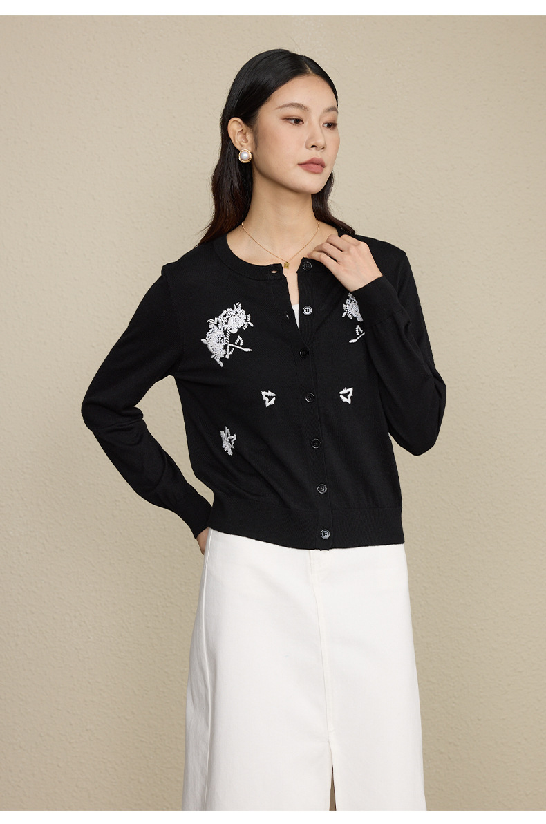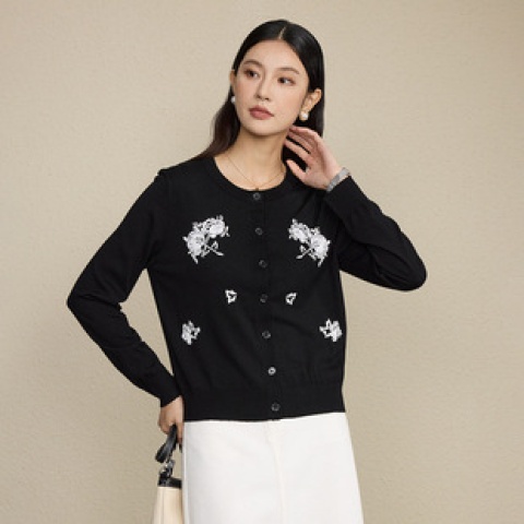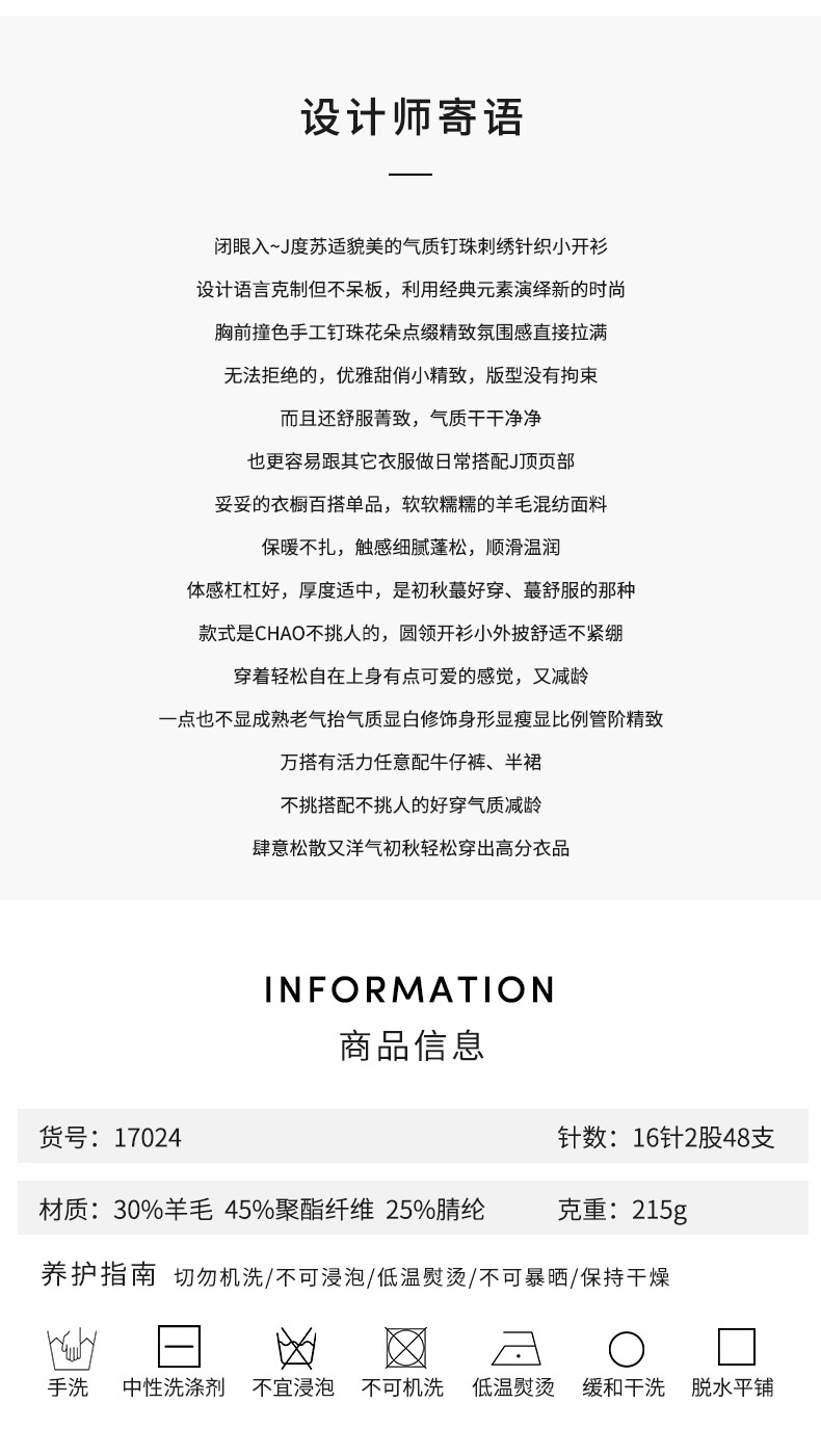「自」全新升级【铂金会员293/天猫399/差价106】(05539)洛诗琳重工优雅复古刺绣针织开衫2025早秋手工钉珠复古外套