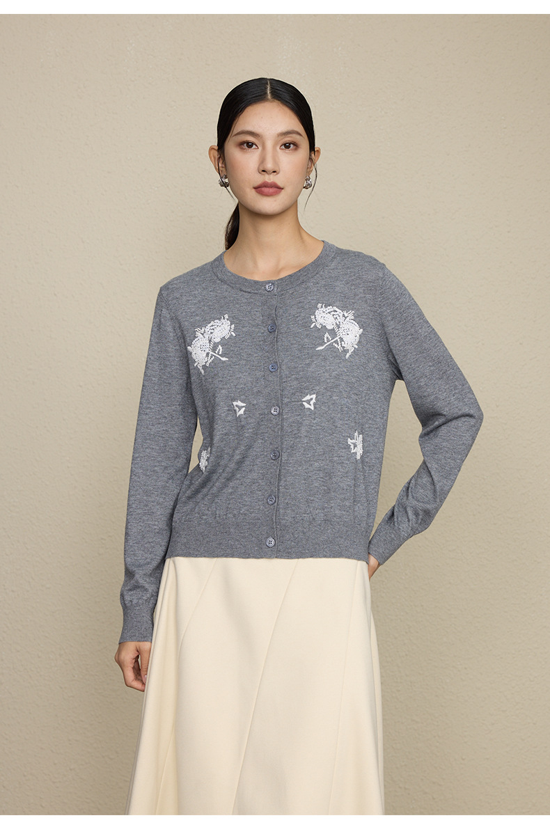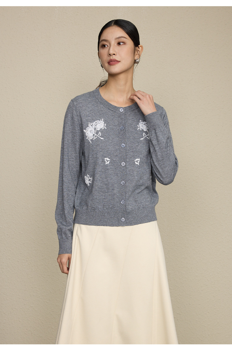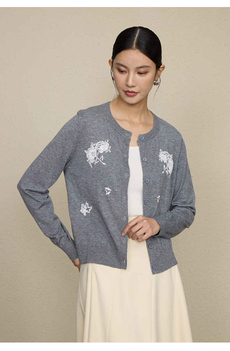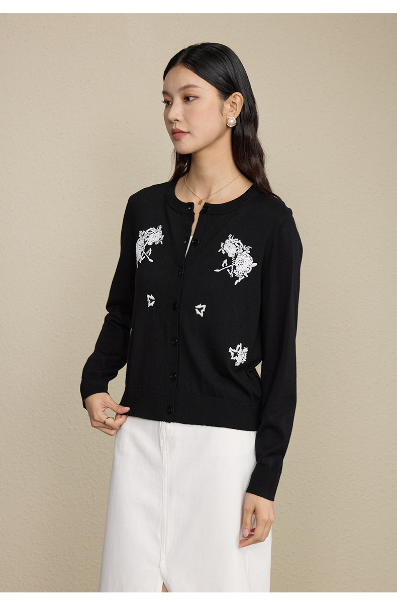 「自」全新升级【铂金会员293/天猫399/差价106】(05539)洛诗琳重工优雅复古刺绣针织开衫2025早秋手工钉珠复古外套