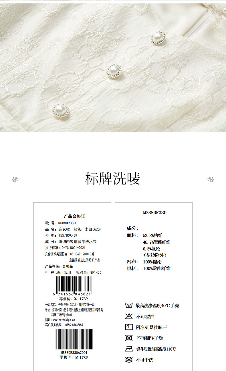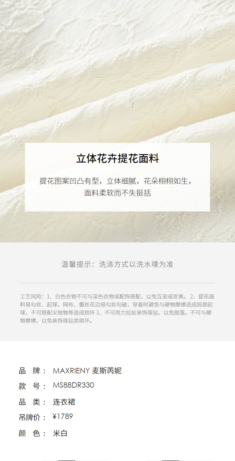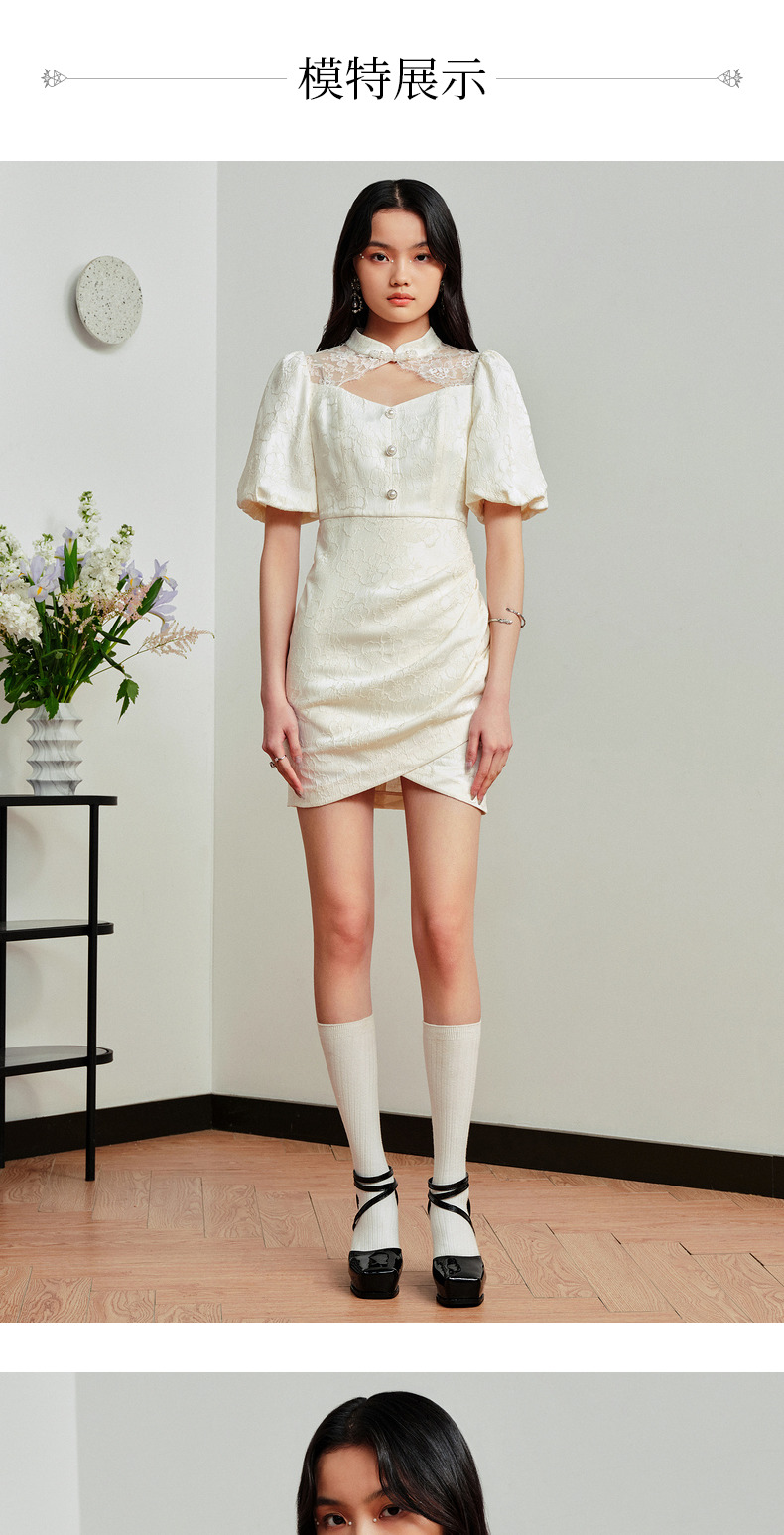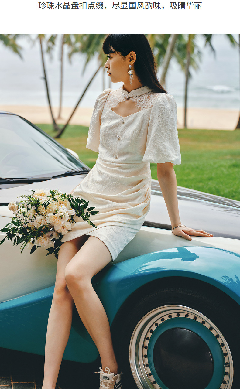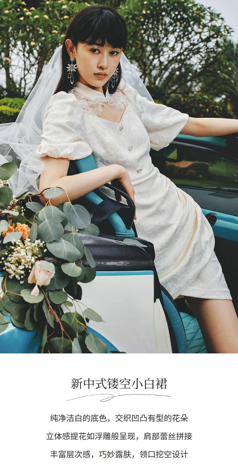 MAXRIENY摩登新中式镂空设计感小白裙国风连衣裙女(货号:MS88DR330)